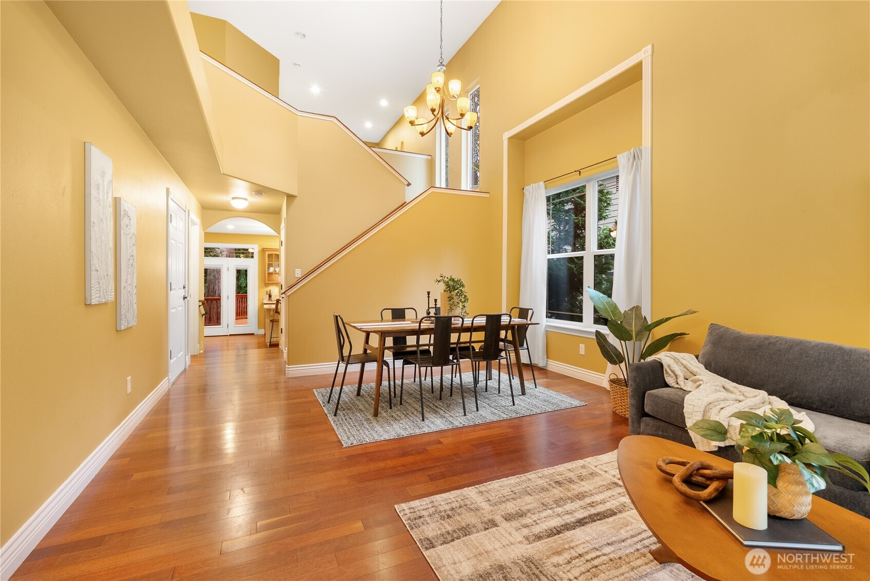Soaring ceilings make a strong first impression the moment you walk in. Hardwood floors run throughout the home, and hydronic radiant heat keeps every level comfortable year-round. As you move through the main living room, the space opens up to the kitchen at the back of the home, featuring maple cabinetry, stainless appliances, and a pantry. It connects easily to the family room and out to the back deck, creating a natural flow. Upstairs, a flexible loft space at the top of the landing works great for your home office. The upper-level laundry keeps things practical, and French doors add a nice touch to the spacious primary suite. The backyard is flat and fenced, anchored by a mature cedar and backing to green space for a bit of added privacy. An installed generator adds peace of mind. Located in the heart of Sudden Valley, this 3-bedroom, 2.5-bath home puts you close to golf, a fitness center, tennis courts, beaches, a marina, and Maple Leaf Park just down the street.
