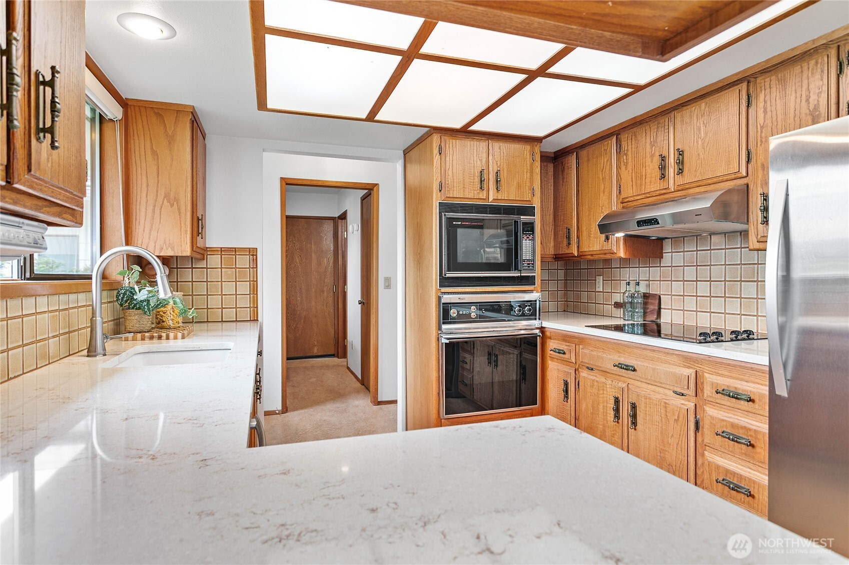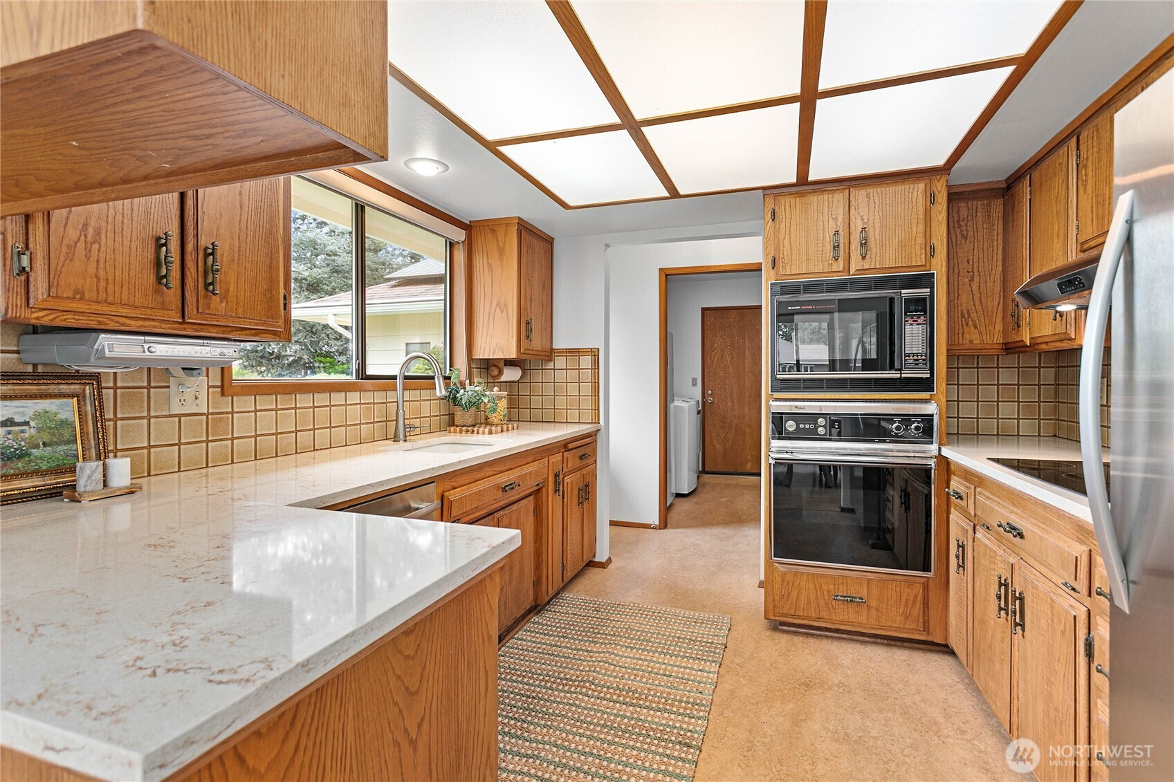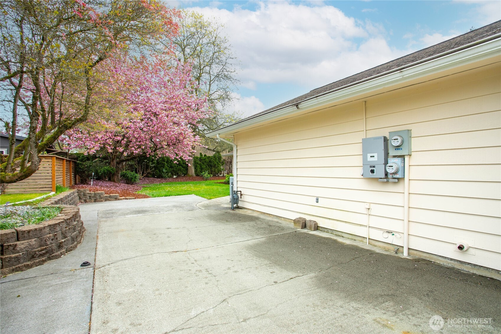Beautiful westside rambler in one of Lynden’s most desirable neighborhoods. Offering over 1,900 sq ft on a spacious 13,939 sq ft corner lot with mature landscaping, this south-facing home features a flexible, functional floorplan filled with natural light. The home includes up to 4 generously sized bedrooms or 3 plus flex room, 2-¾ baths, and one ½ bath, along with an oversized 550 sq ft garage with additional storage above. Thoughtful updates include quartz countertops in the kitchen and two bathrooms, fresh interior paint, new high-efficiency furnace, heat pump, solar panels, central vacuum, and a built-in GenTran generator system. Enjoy custom built-ins throughout, French doors, a walk-in closet in the primary suite, and a cozy freestanding gas fireplace. Outside, you’ll find beautiful lawns, blooming trees, flowerbeds, a sprinkler system and RV parking with hookups. Move-in ready with room to add value, this property offers comfort, efficiency, and opportunity in a prime location.