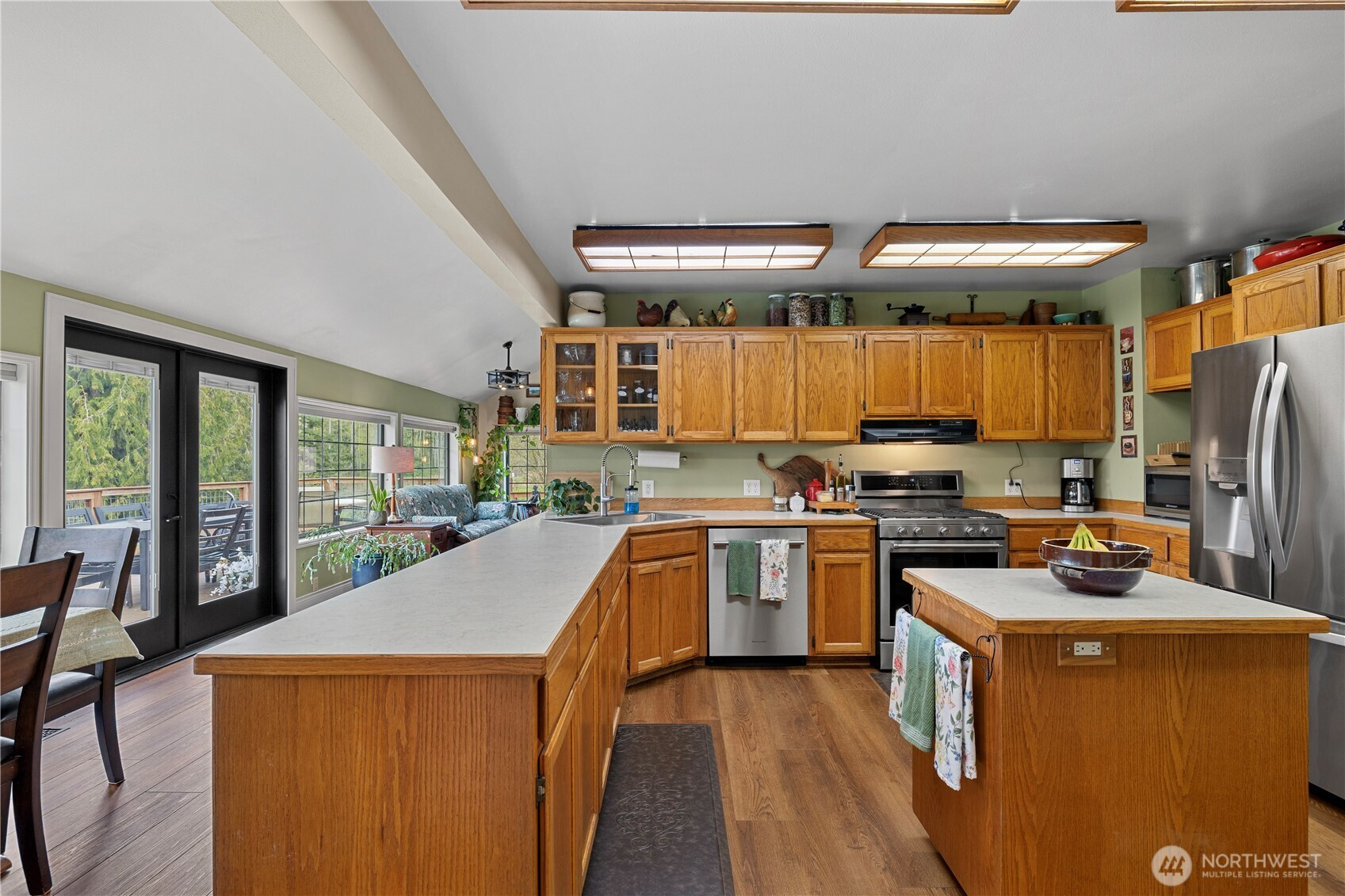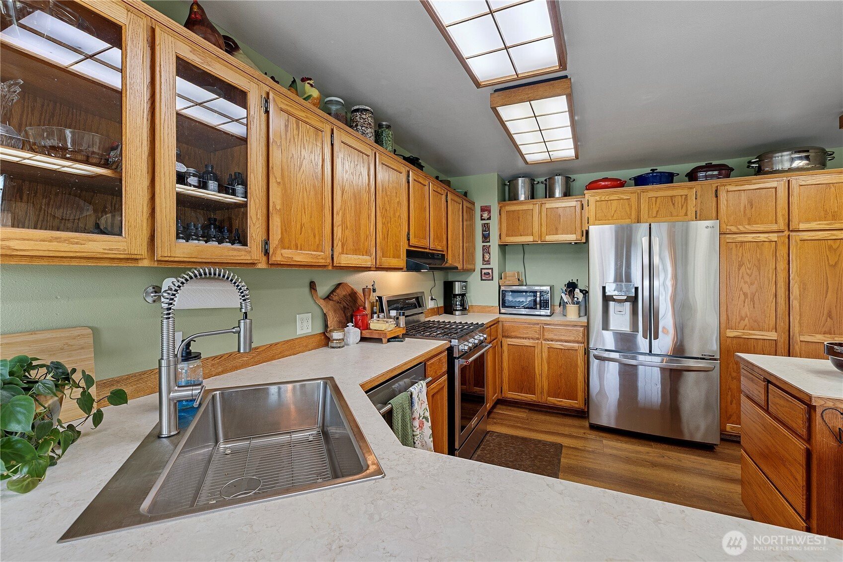 Discover the perfect blend of independence and comfort with this self-sufficient homesteading property, designed for those who value space, functionality, and peaceful country living. The expansive garden areas provide ample room to grow your own food, while the barn and impressive shop with covered RV parking offer endless possibilities for projects, storage, or livestock. The property is fully fenced with electric gates, making it ready for your farm animals and ensuring privacy and security. Inside, you’ll find a well-maintained home featuring a basement with a pantry—plus a freezer that stays—ideal for preserving your harvest. Step onto the huge deck, perfect for relaxing or entertaining while enjoying the serene surroundings. Pad w/ electricty in yard ready for you to set up your pool. Recent updates include a refreshed kitchen with new countertops, sink, and oven, along with new siding and fresh exterior paint. Most areas feature new carpet or laminate flooring, and the primary bedroom has been tastefully updated. New blinds throughout complete the move-in-ready appeal. Enjoy the best of both worlds: secluded country living with the convenience of being just minutes from town.