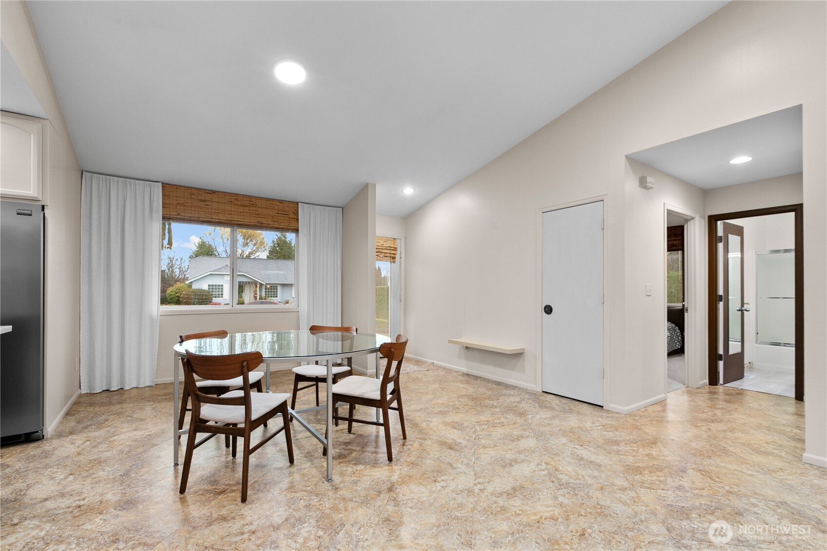 A Design Delight! This fantastic 3 bedroom home has been thoughtfully updated throughout. Neutral, sleek styling in the kitchen includes a rolling island for a "moveable feast". Statement fireplace with surrounding custom shelves. Plenty of storage space, including an over-sized 2 car garage. Newer roof, windows, appliances and washer/dryer. Exterior landscaping showcases 2 custom natural arbors, hedges, walkways, patio and a clay "fire chimney" area. It feels as if you are strolling through the grounds of a "manor house". Corner lot in great neighborhood. Outshines in every aspect. Must See! Book a showing today!