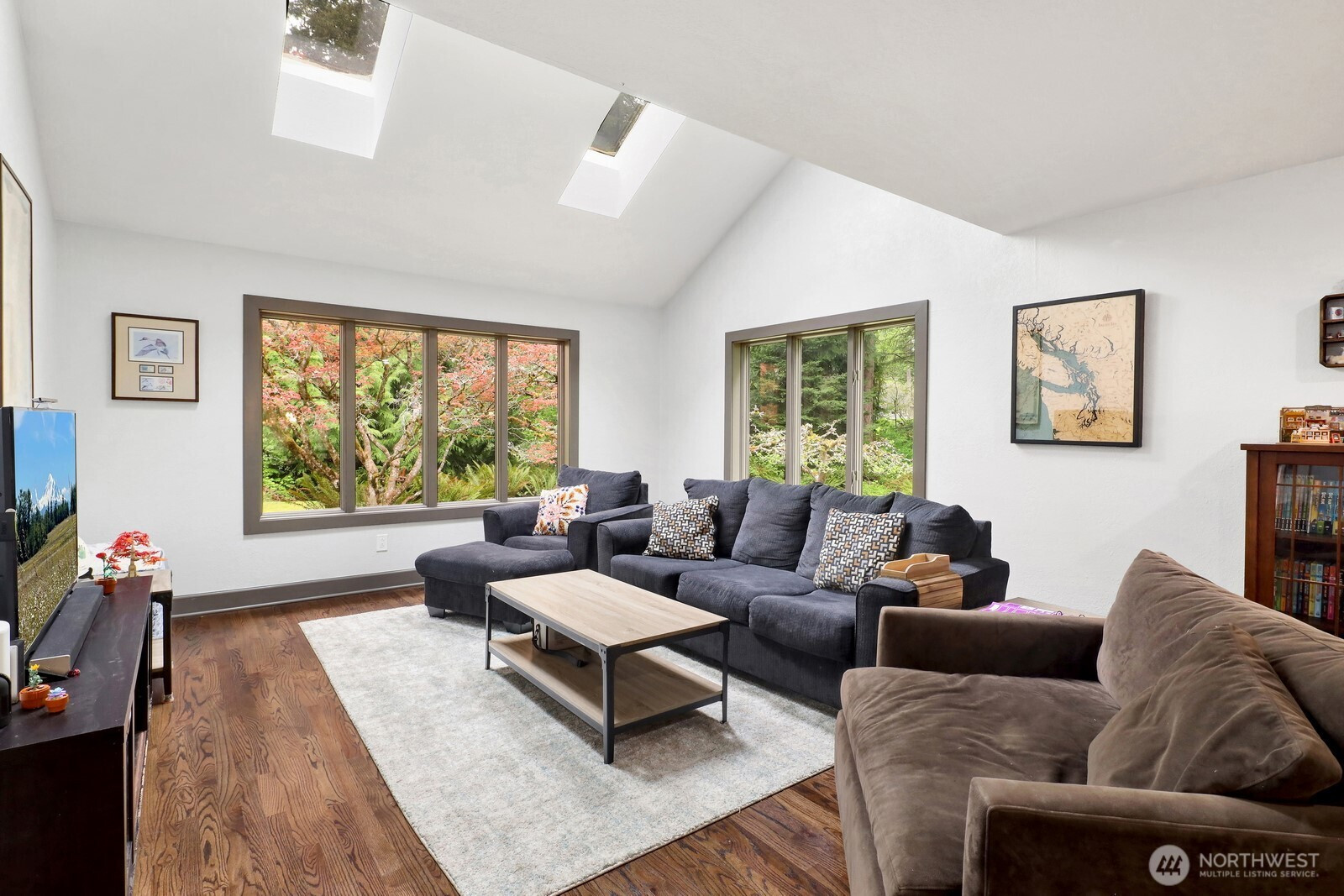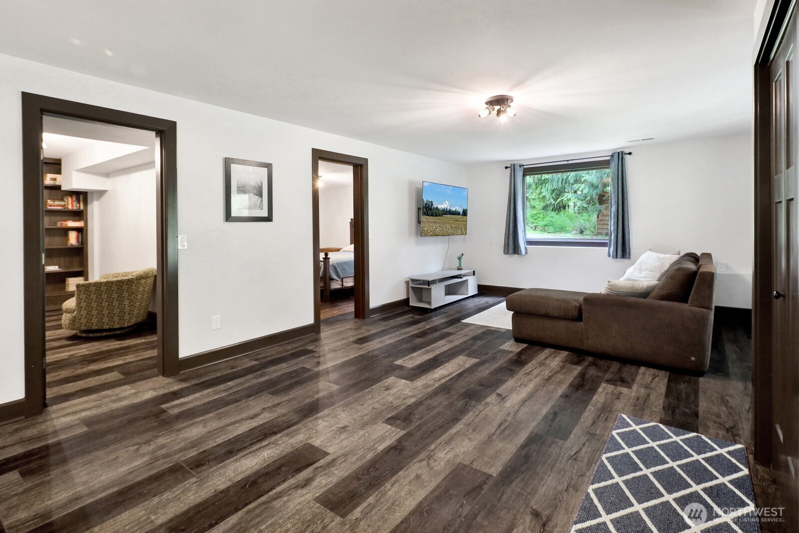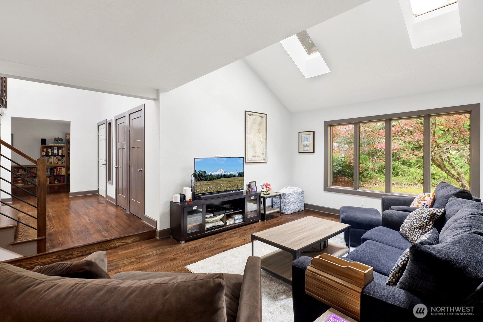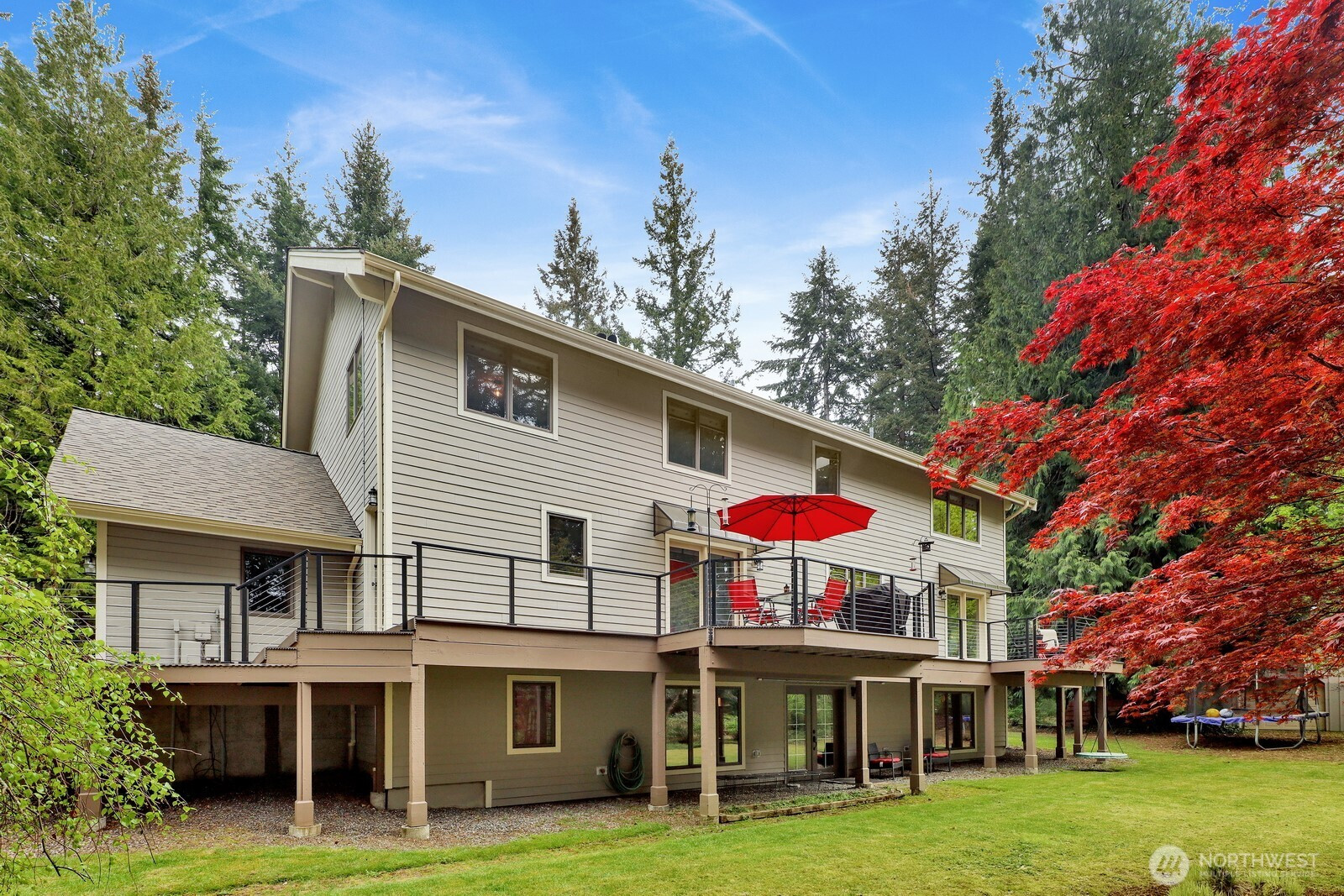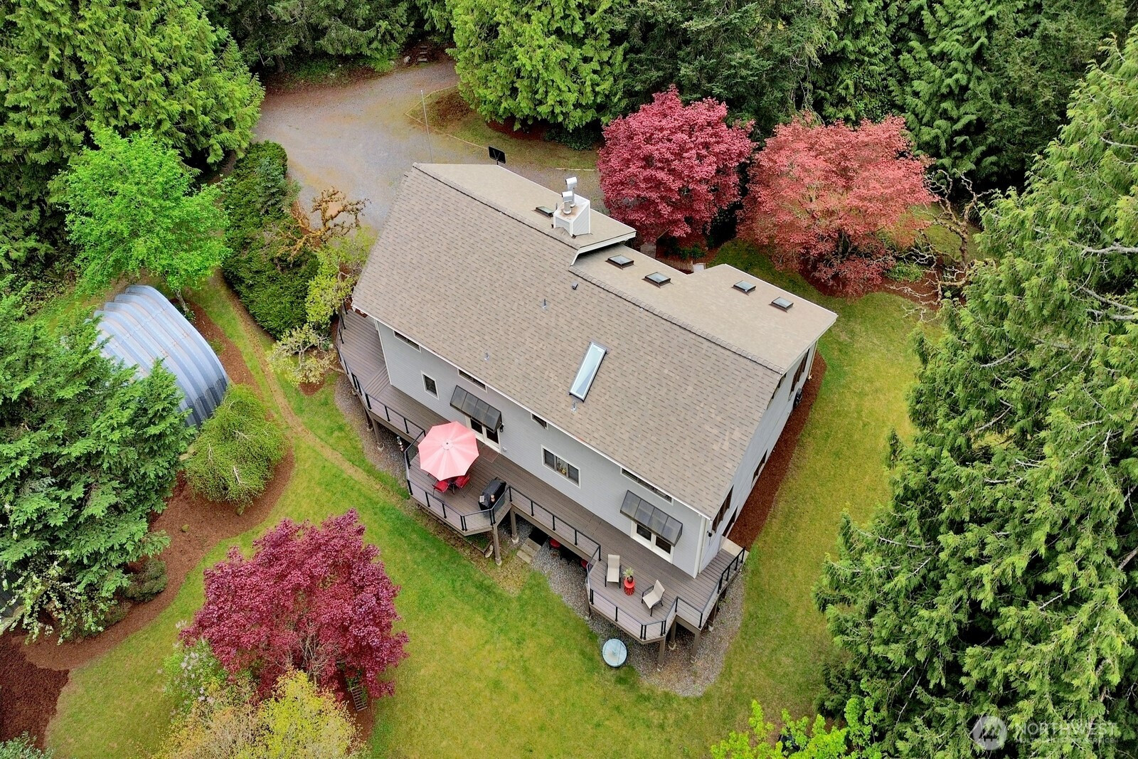 Gracefully set on just under four acres of lush, park-like grounds, this exceptional 3,752 sq ft residence offers a rare blend of privacy and proximity—minutes to town, Lake Padden, and Fairhaven. The 5-bedroom, 3.5-bath home showcases a thoughtfully designed interior with laminate flooring throughout, a striking custom open staircase, and expansive living spaces tailored for both relaxed living and elegant entertaining. At the heart of the home, the open kitchen features generous storage and a breakfast bar with seating for three, seamlessly connecting to a grand dining area. A spacious laundry and mudroom with built-ins adds everyday convenience, while large bedrooms provide comfort and flexibility. Step outside to a substantial custom deck overlooking tranquil surroundings. A fully appointed mother-in-law suite with private entry offers its own kitchen, bedroom, bath, and office—ideal for extended living or guest accommodations. The primary suite serves as a refined retreat with a skylit office, a large walk-in closet with built-ins, and a spa-like bath featuring heated floors, a soaking tub, and an oversized shower with bench. With on-demand hot water and potential for one or two shops, this remarkable property delivers space, versatility, and timeless appeal.
