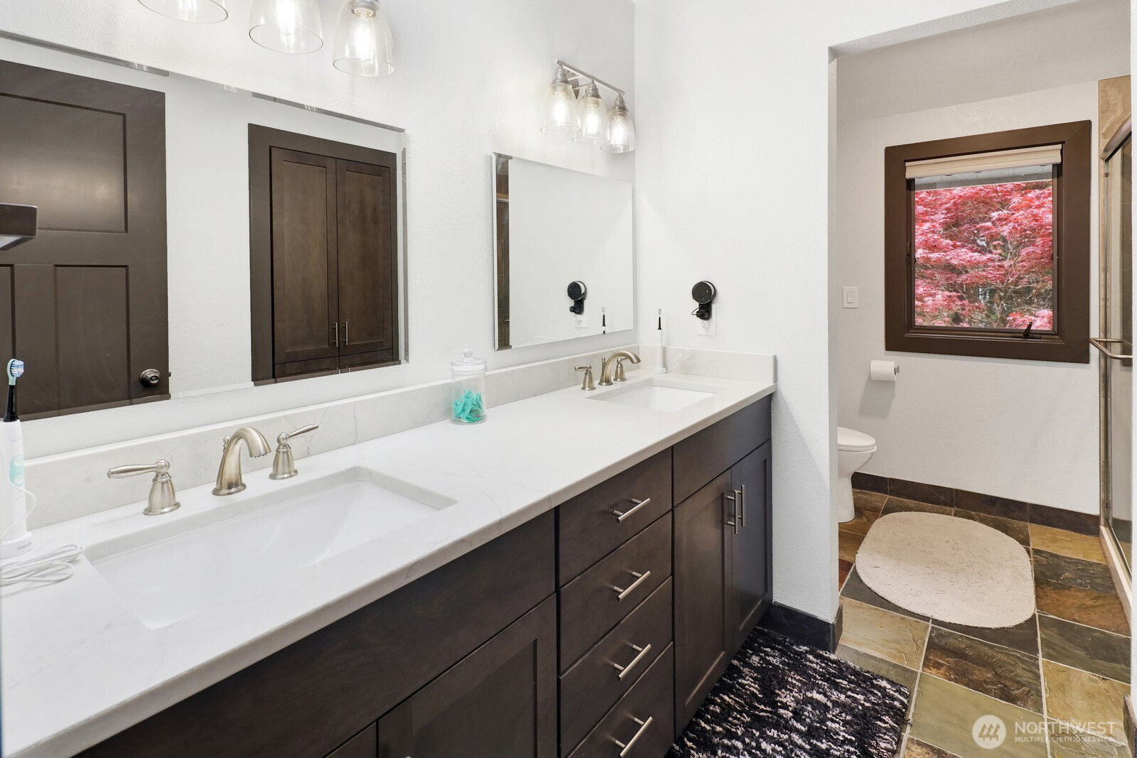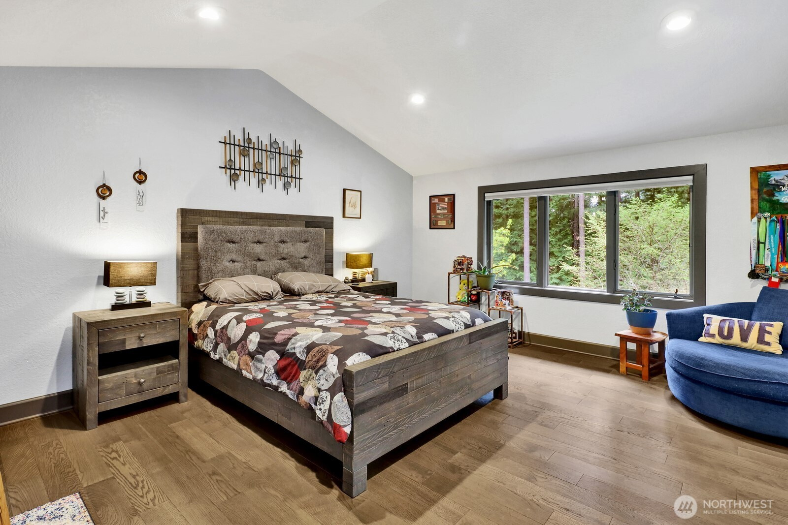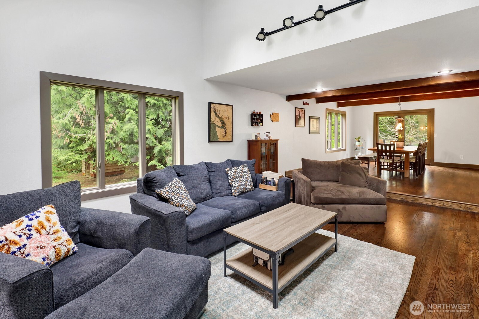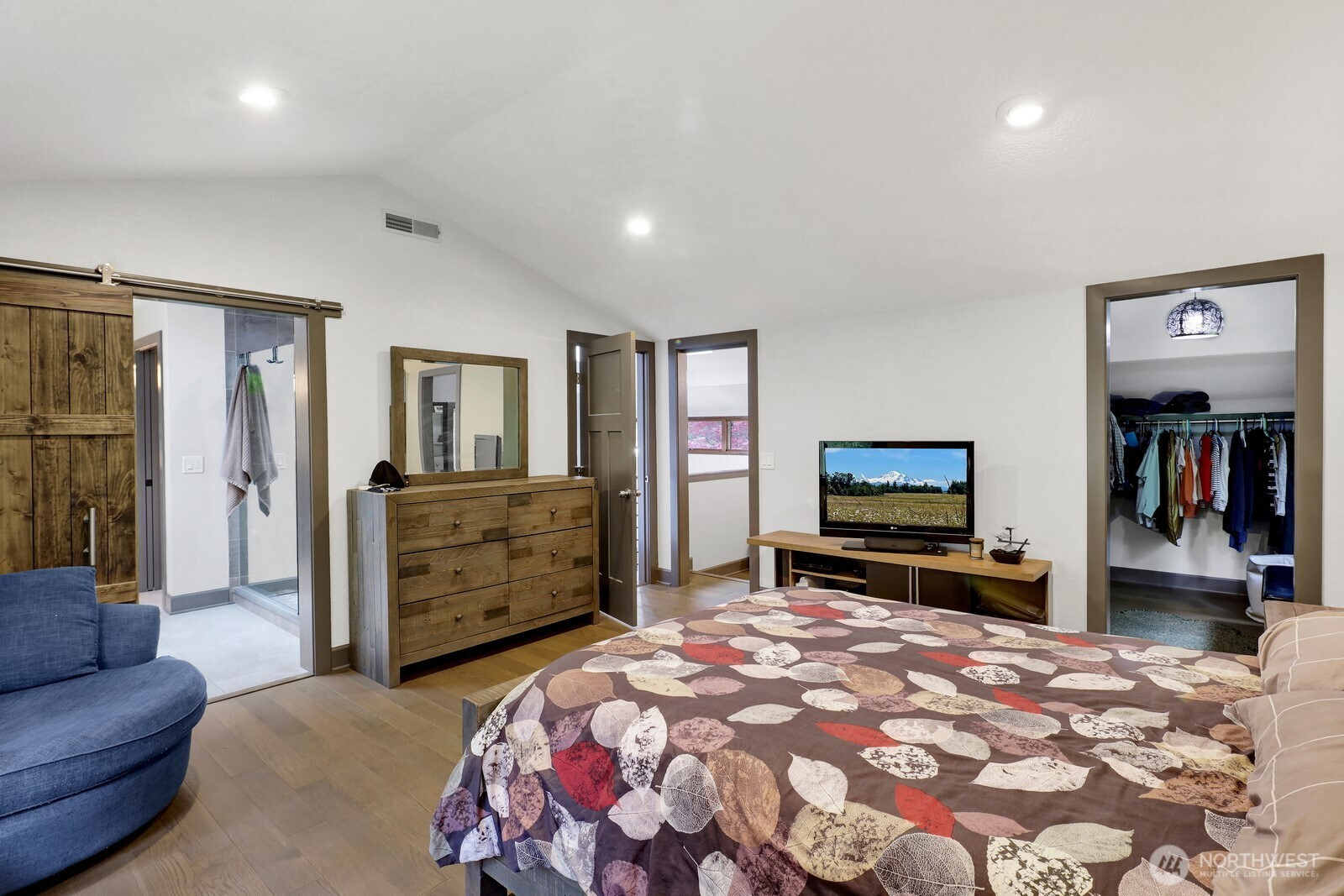 Gracefully set on just under four acres of lush, park-like grounds, this exceptional 3,752 sq ft residence offers a rare blend of privacy and proximity—minutes to town, Lake Padden, and Fairhaven. The 5-bedroom, 3.5-bath home showcases a thoughtfully designed interior with laminate flooring throughout, a striking custom open staircase, and expansive living spaces tailored for both relaxed living and elegant entertaining. At the heart of the home, the open kitchen features generous storage and a breakfast bar with seating for three, seamlessly connecting to a grand dining area. A spacious laundry and mudroom with built-ins adds everyday convenience, while large bedrooms provide comfort and flexibility. Step outside to a substantial custom deck overlooking tranquil surroundings. A fully appointed mother-in-law suite with private entry offers its own kitchen, bedroom, bath, and office—ideal for extended living or guest accommodations. The primary suite serves as a refined retreat with a skylit office, a large walk-in closet with built-ins, and a spa-like bath featuring heated floors, a soaking tub, and an oversized shower with bench. With on-demand hot water and potential for one or two shops, this remarkable property delivers space, versatility, and timeless appeal.