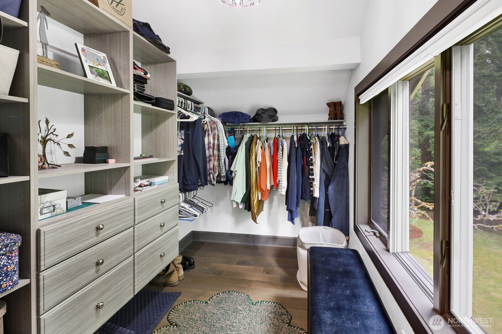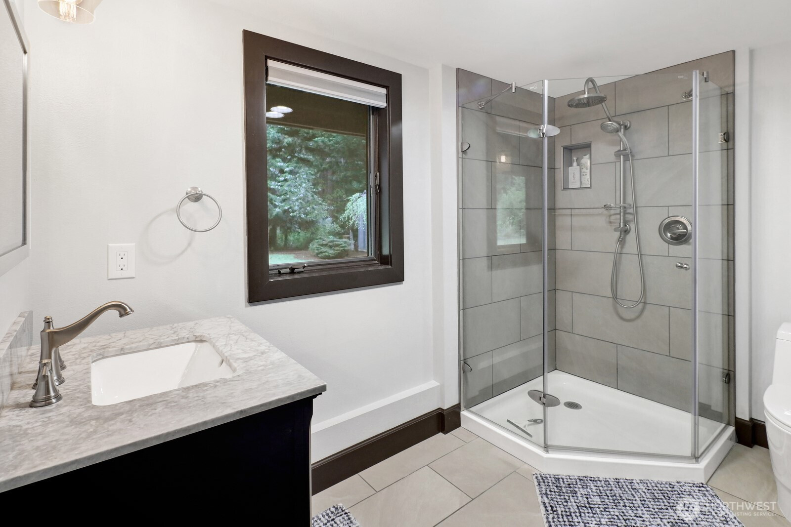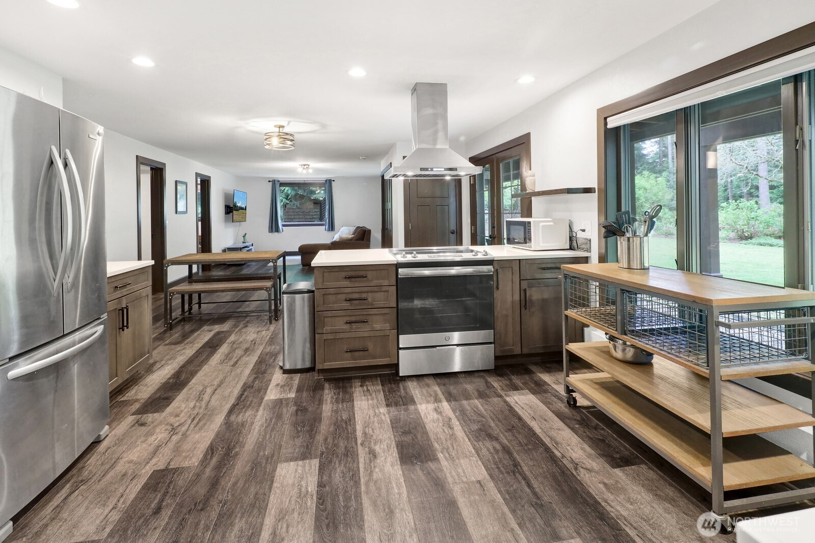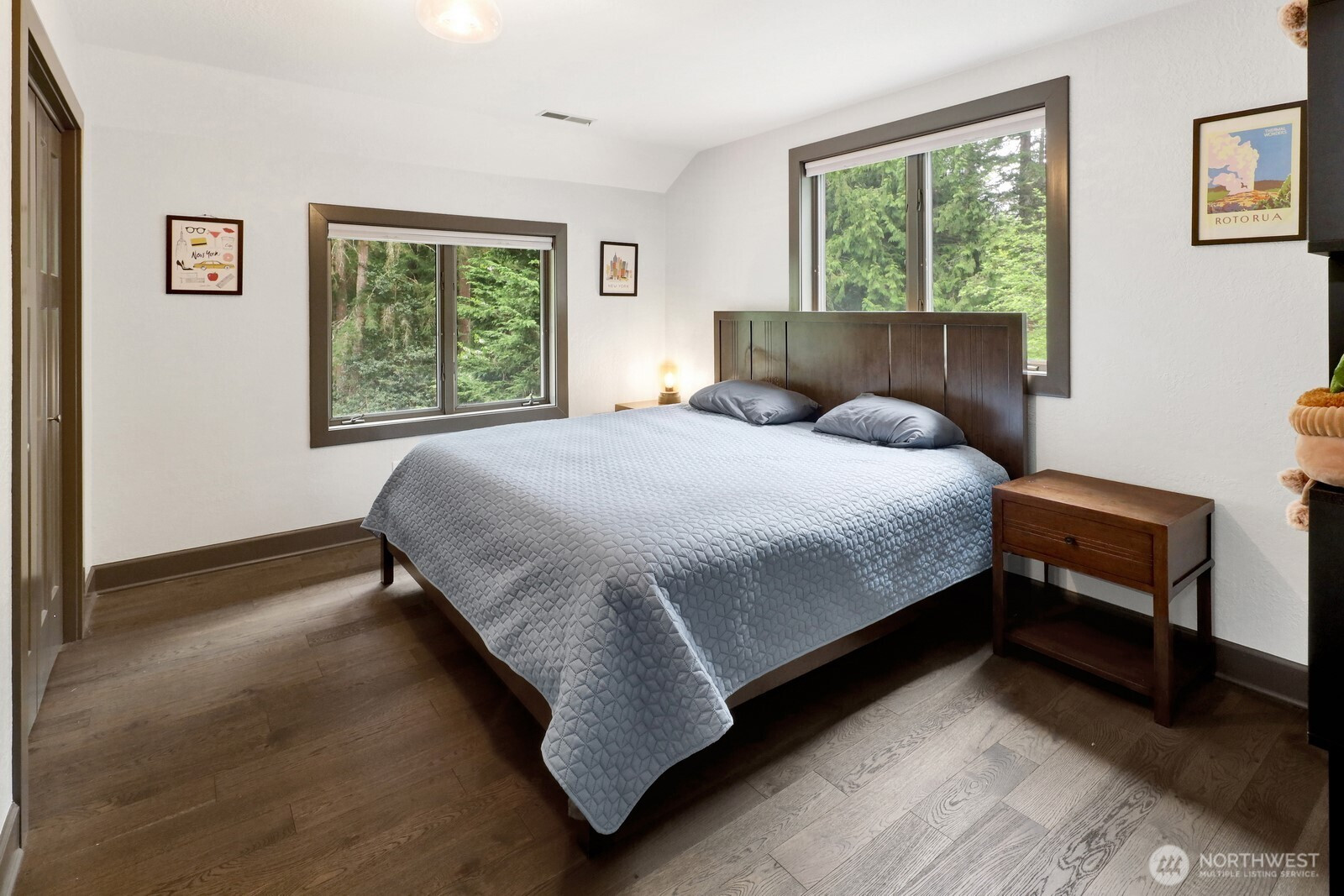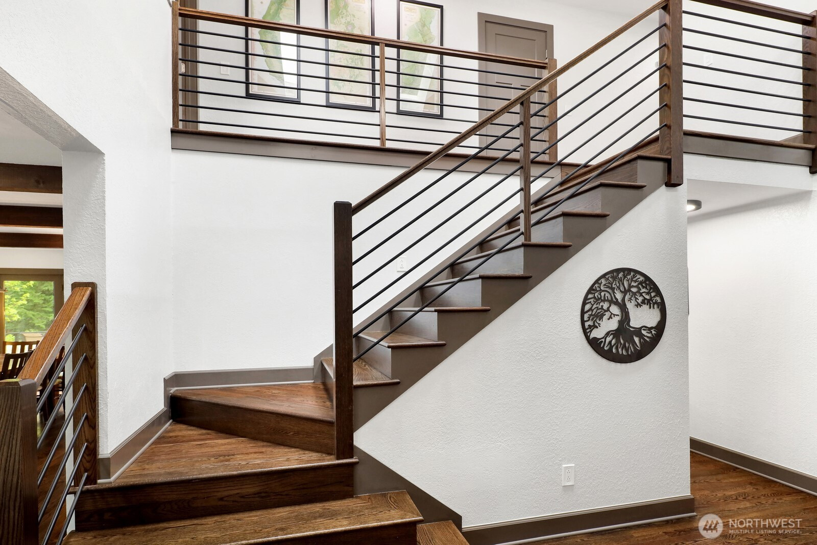 Gracefully set on just under four acres of lush, park-like grounds, this exceptional 3,752 sq ft residence offers a rare blend of privacy and proximity—minutes to town, Lake Padden, and Fairhaven. The 5-bedroom, 3.5-bath home showcases a thoughtfully designed interior with laminate flooring throughout, a striking custom open staircase, and expansive living spaces tailored for both relaxed living and elegant entertaining. At the heart of the home, the open kitchen features generous storage and a breakfast bar with seating for three, seamlessly connecting to a grand dining area. A spacious laundry and mudroom with built-ins adds everyday convenience, while large bedrooms provide comfort and flexibility. Step outside to a substantial custom deck overlooking tranquil surroundings. A fully appointed mother-in-law suite with private entry offers its own kitchen, bedroom, bath, and office—ideal for extended living or guest accommodations. The primary suite serves as a refined retreat with a skylit office, a large walk-in closet with built-ins, and a spa-like bath featuring heated floors, a soaking tub, and an oversized shower with bench. With on-demand hot water and potential for one or two shops, this remarkable property delivers space, versatility, and timeless appeal.