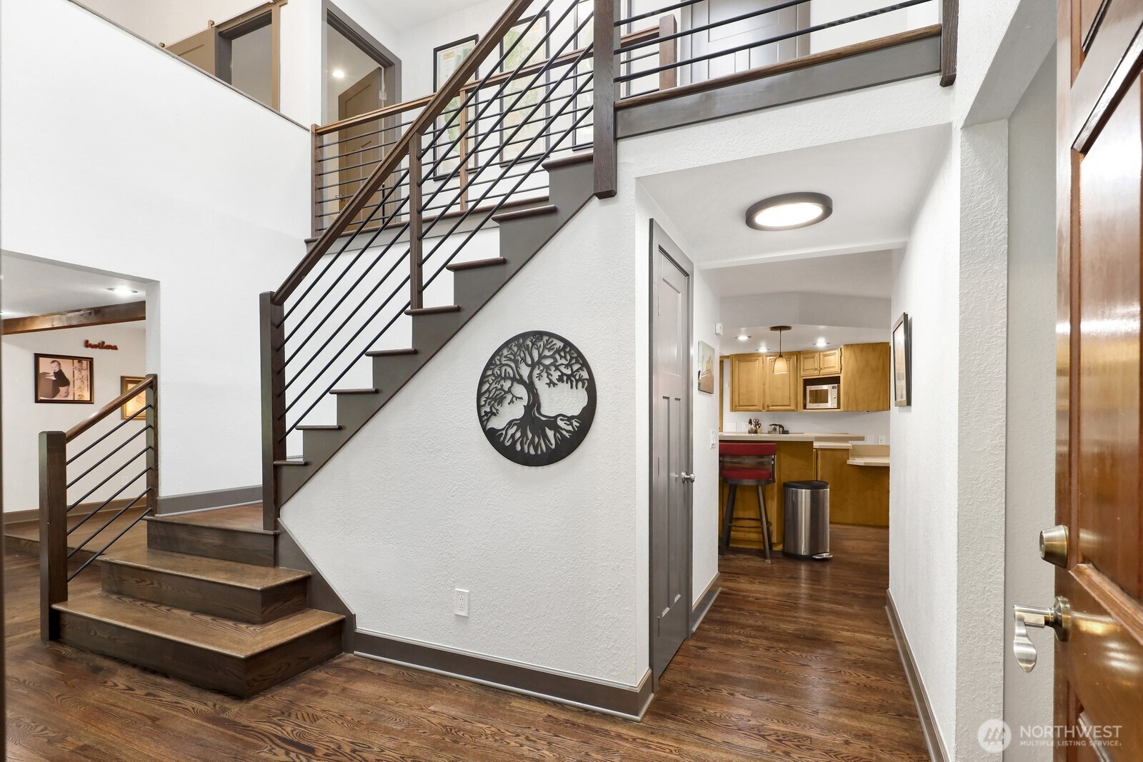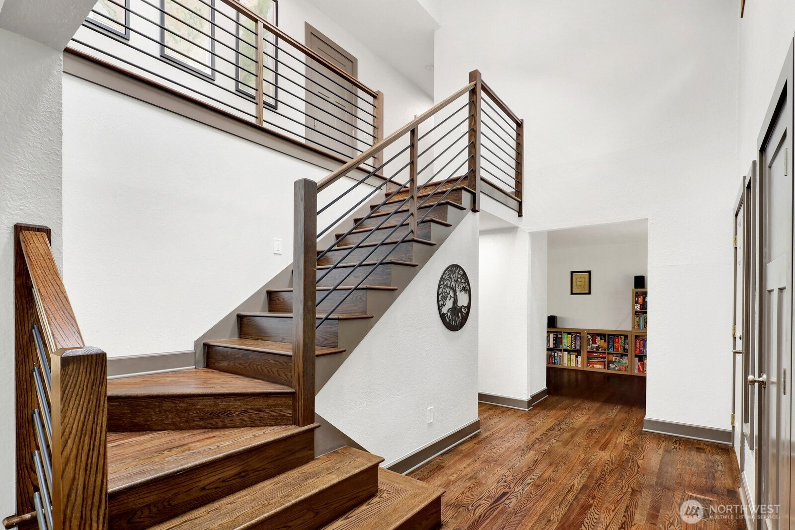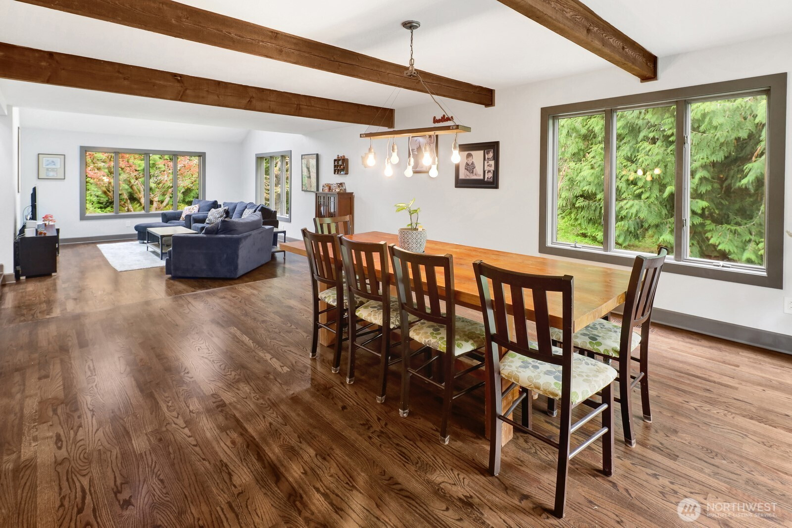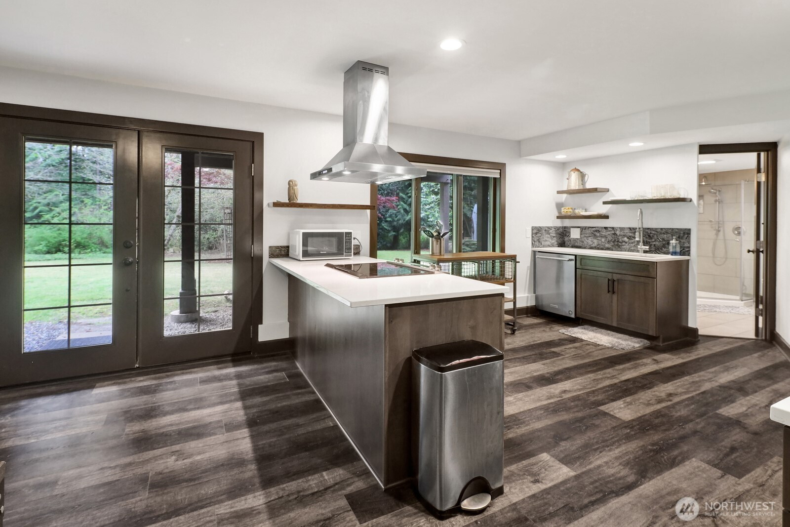 Gracefully set on just under four acres of lush, park-like grounds, this exceptional 3,752 sq ft residence offers a rare blend of privacy and proximity—minutes to town, Lake Padden, and Fairhaven. The 5-bedroom, 3.5-bath home showcases a thoughtfully designed interior with laminate flooring throughout, a striking custom open staircase, and expansive living spaces tailored for both relaxed living and elegant entertaining. At the heart of the home, the open kitchen features generous storage and a breakfast bar with seating for three, seamlessly connecting to a grand dining area. A spacious laundry and mudroom with built-ins adds everyday convenience, while large bedrooms provide comfort and flexibility. Step outside to a substantial custom deck overlooking tranquil surroundings. A fully appointed mother-in-law suite with private entry offers its own kitchen, bedroom, bath, and office—ideal for extended living or guest accommodations. The primary suite serves as a refined retreat with a skylit office, a large walk-in closet with built-ins, and a spa-like bath featuring heated floors, a soaking tub, and an oversized shower with bench. With on-demand hot water and potential for one or two shops, this remarkable property delivers space, versatility, and timeless appeal.