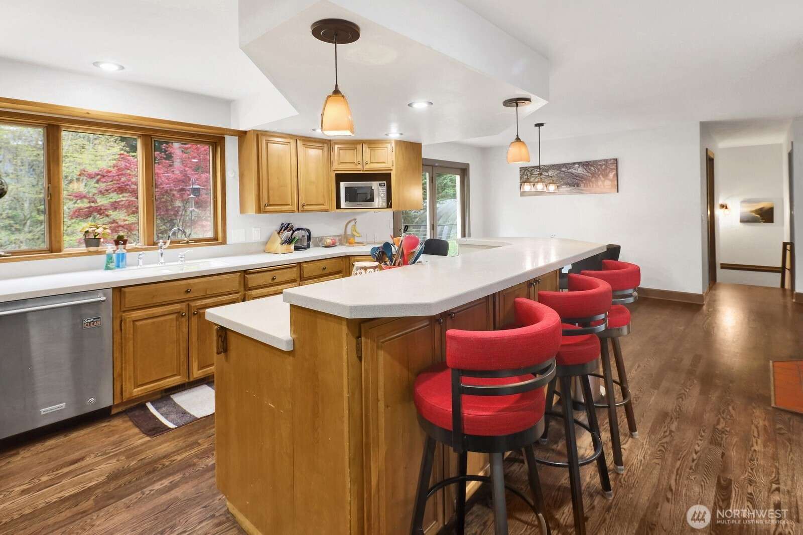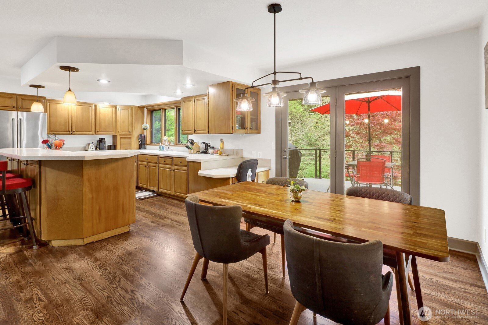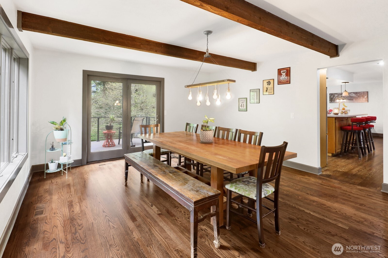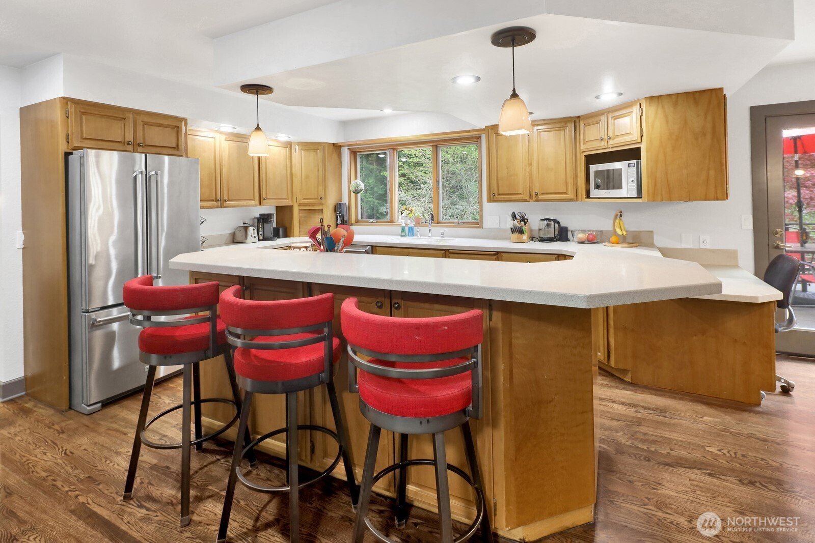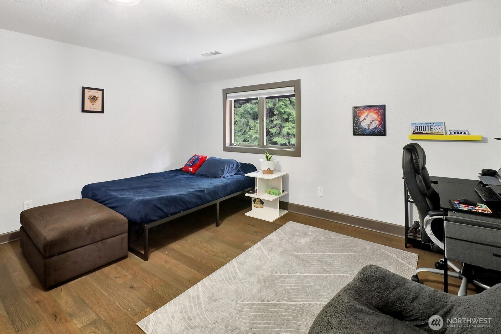 Gracefully set on just under four acres of lush, park-like grounds, this exceptional 3,752 sq ft residence offers a rare blend of privacy and proximity—minutes to town, Lake Padden, and Fairhaven. The 5-bedroom, 3.5-bath home showcases a thoughtfully designed interior with laminate flooring throughout, a striking custom open staircase, and expansive living spaces tailored for both relaxed living and elegant entertaining. At the heart of the home, the open kitchen features generous storage and a breakfast bar with seating for three, seamlessly connecting to a grand dining area. A spacious laundry and mudroom with built-ins adds everyday convenience, while large bedrooms provide comfort and flexibility. Step outside to a substantial custom deck overlooking tranquil surroundings. A fully appointed mother-in-law suite with private entry offers its own kitchen, bedroom, bath, and office—ideal for extended living or guest accommodations. The primary suite serves as a refined retreat with a skylit office, a large walk-in closet with built-ins, and a spa-like bath featuring heated floors, a soaking tub, and an oversized shower with bench. With on-demand hot water and potential for one or two shops, this remarkable property delivers space, versatility, and timeless appeal.