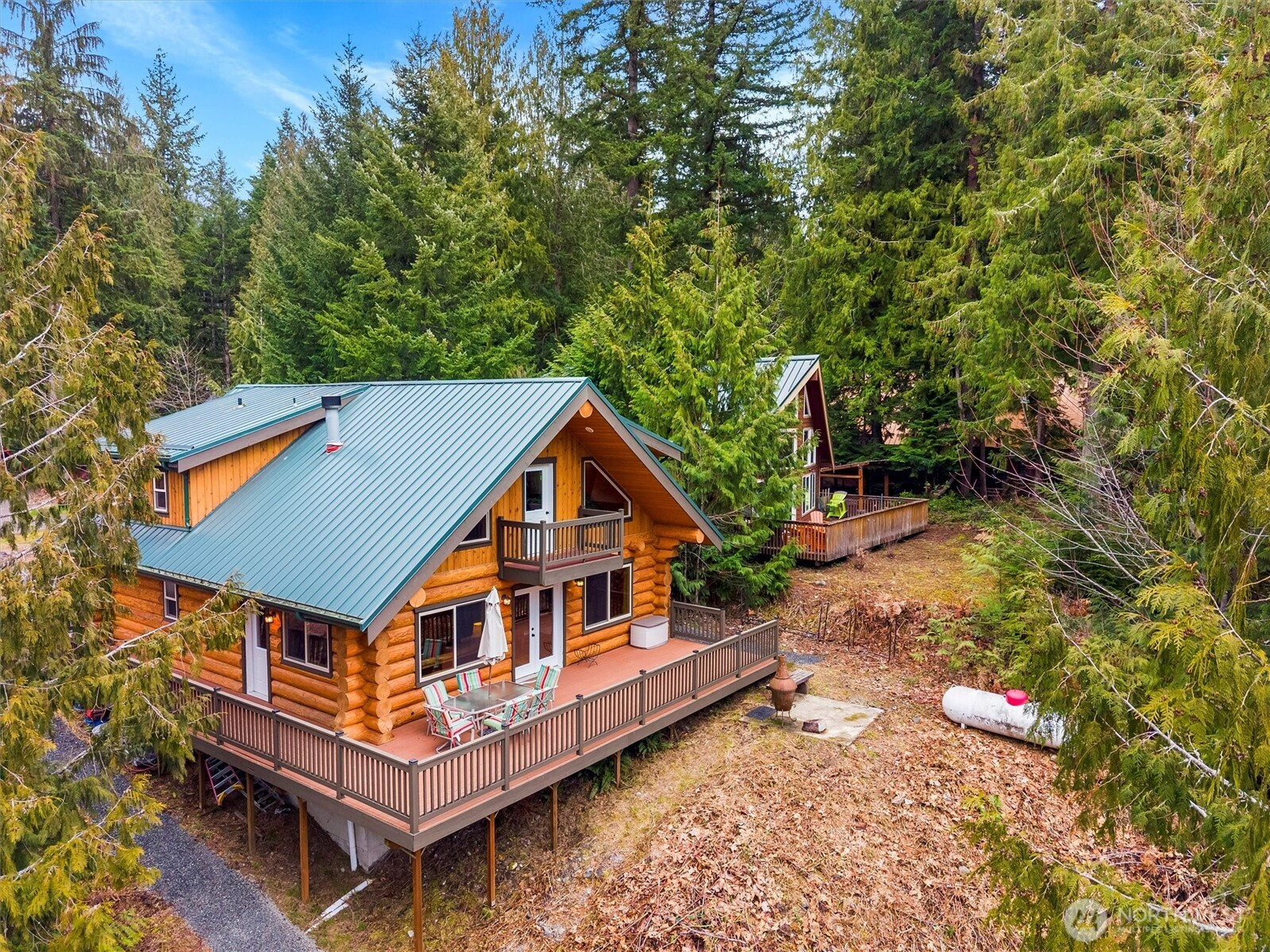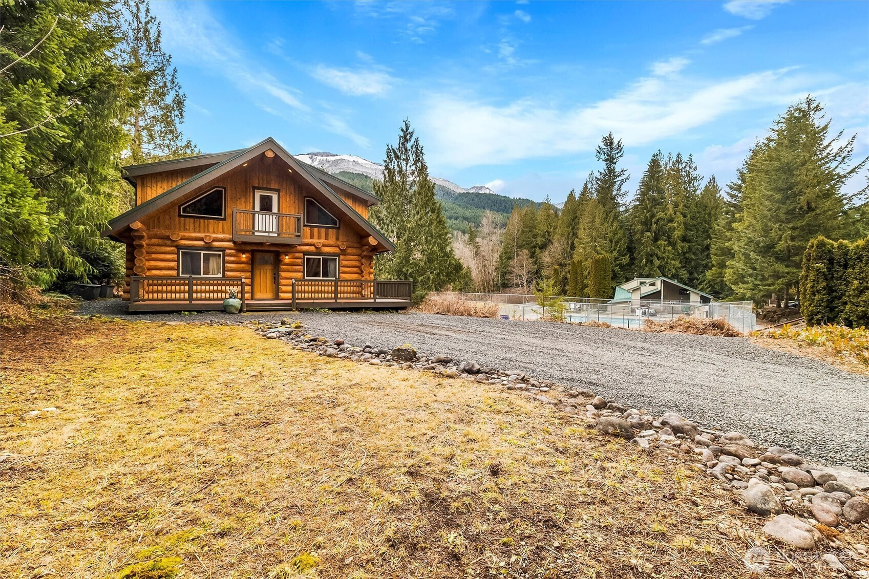 Surrounded by forest, fresh mountain air & calming sounds of nature, this cabin is a True Retreat! Rare chance to own a lovingly maintained 'True Log Homes' built, Log cabin in the Mount Baker Rim Community Club. First time on market, original owners, this 2 bed, 2 bath + loft cabin offers a uniquely bright, welcoming take on log cabin living. Spacious interior w/ a flowing floor plan. Centered around the large kitchen, great for entertaining is a dining & living room which opens to a wrap around deck w/ picturesque mountain views. Light-toned interior logs & windows throughout that fill the space w/ natural light, creating an airy feel not often found in traditional log homes. Upstairs roomy loft connects the primary bed w/ ensuite & dual upper decks. Enjoy quiet mornings, star-filled nights, and cozy evenings as rain taps softly on the metal roof or snow falls outside the windows. The home’s warm wood interiors & thoughtful craftsmanship create a space that feels both grounding & restorative. Ideally situated next to The Rim's pool & clubhouse, w/ nearby trail access leading to riverfront, the setting offers connection, recreation, and ease. Spend sunny days at the pool, winter days on the ski slopes & year-round time exploring trails minutes from your door. Whether a full-time residence or mountain escape, this cabin is a place to slow down, gather, and make lasting memories—just minutes from Mount Baker Ski Area & endless outdoor adventure.