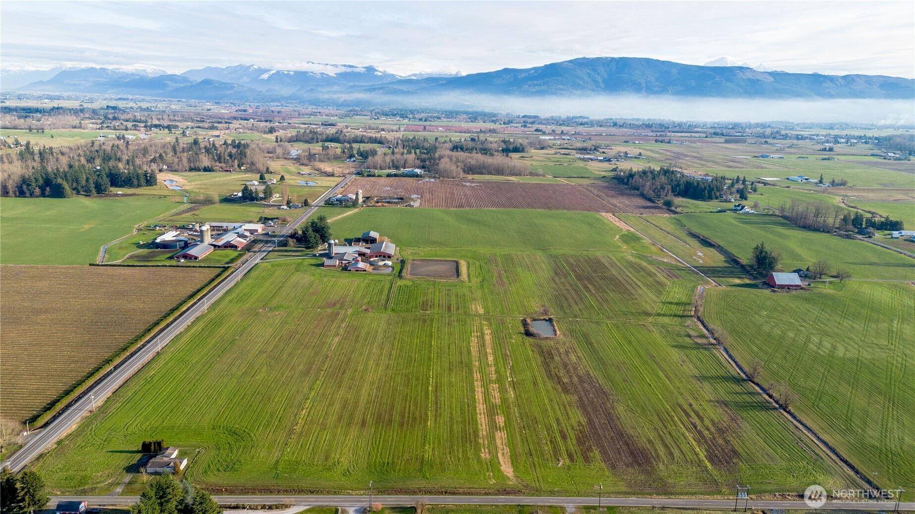 Premier 91.55-acre agricultural homestead ideally located in the productive farming valley between Lynden and Everson in Whatcom County, Washington. This established dairy operation is improved to accommodate up to approximately 450 head of cattle, offering a rare opportunity for continued dairy use, expansion, or conversion to high-value crop production.The property features a 6 million-gallon lagoon plus an additional 400,000-gallon lagoon and a concrete storage tank, supported by multiple functional agricultural improvements including a covered bunker, machine shed, drive-through feeding facility, loafing barn, and a classic hip-roof barn. Productive, predominantly level soils are well-suited for blueberries, raspberries, and other high-value crops, providing flexibility for diversified agricultural use. The farm is supported by well water with established irrigation rights, an increasingly scarce asset in this desirable farming district.The residential component includes a 2,700± sq. ft., 4-bedroom, 2.5-bath home, expanded and updated in 1985, situated on its own 1-acre homesite, offering separation from core farm operations.A rare opportunity to acquire a large, versatile agricultural holding with substantial infrastructure in one of Whatcom County’s most sought-after farming areas.