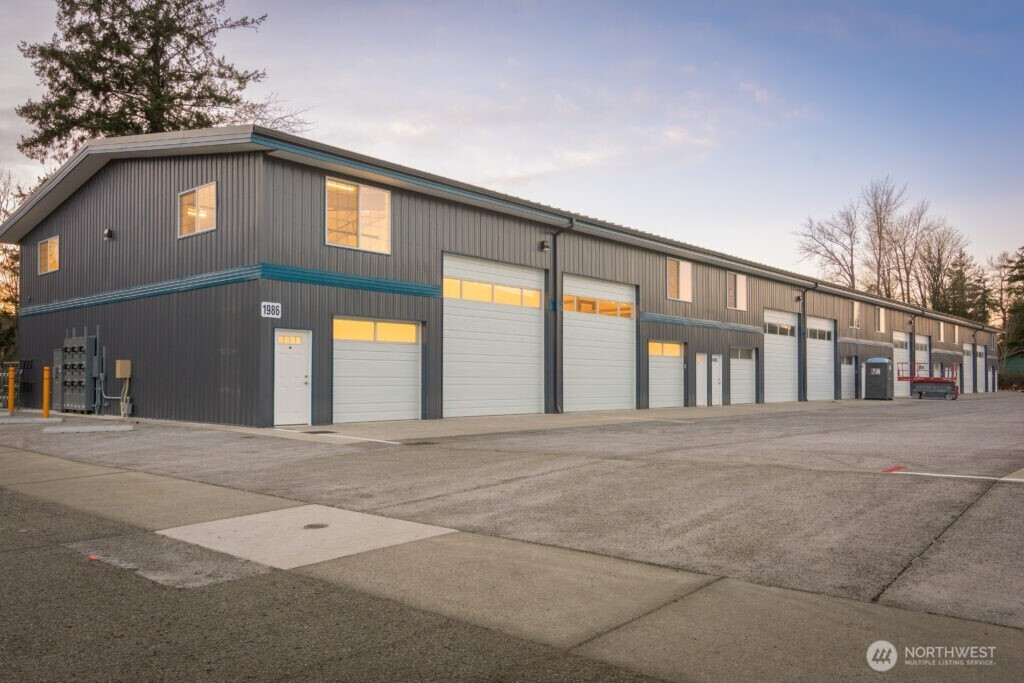 Flexspace North Condominium offers a well-located 2,200 SF unit with quick access to I-5. Each unit features two spacious bays, a bathroom with shower, a generous loft, and two overhead doors (14' x 14' and 9' x 8') for flexible access. Built with efficiency in mind, construction includes durable metal siding and roofing, high-quality insulation (R38 ceiling, R25 walls), 75,000 BTU heater, a fire sprinkler system, concrete floors, windows for natural light, utility sink, 50-amp RV outlet, and Comcast Business wiring. The complex provides over 50' wide aisleways for easy maneuvering, secure gated access via keypad or remote, and dedicated addresses with individual mailboxes.