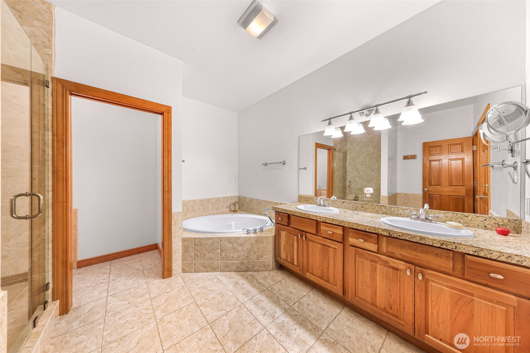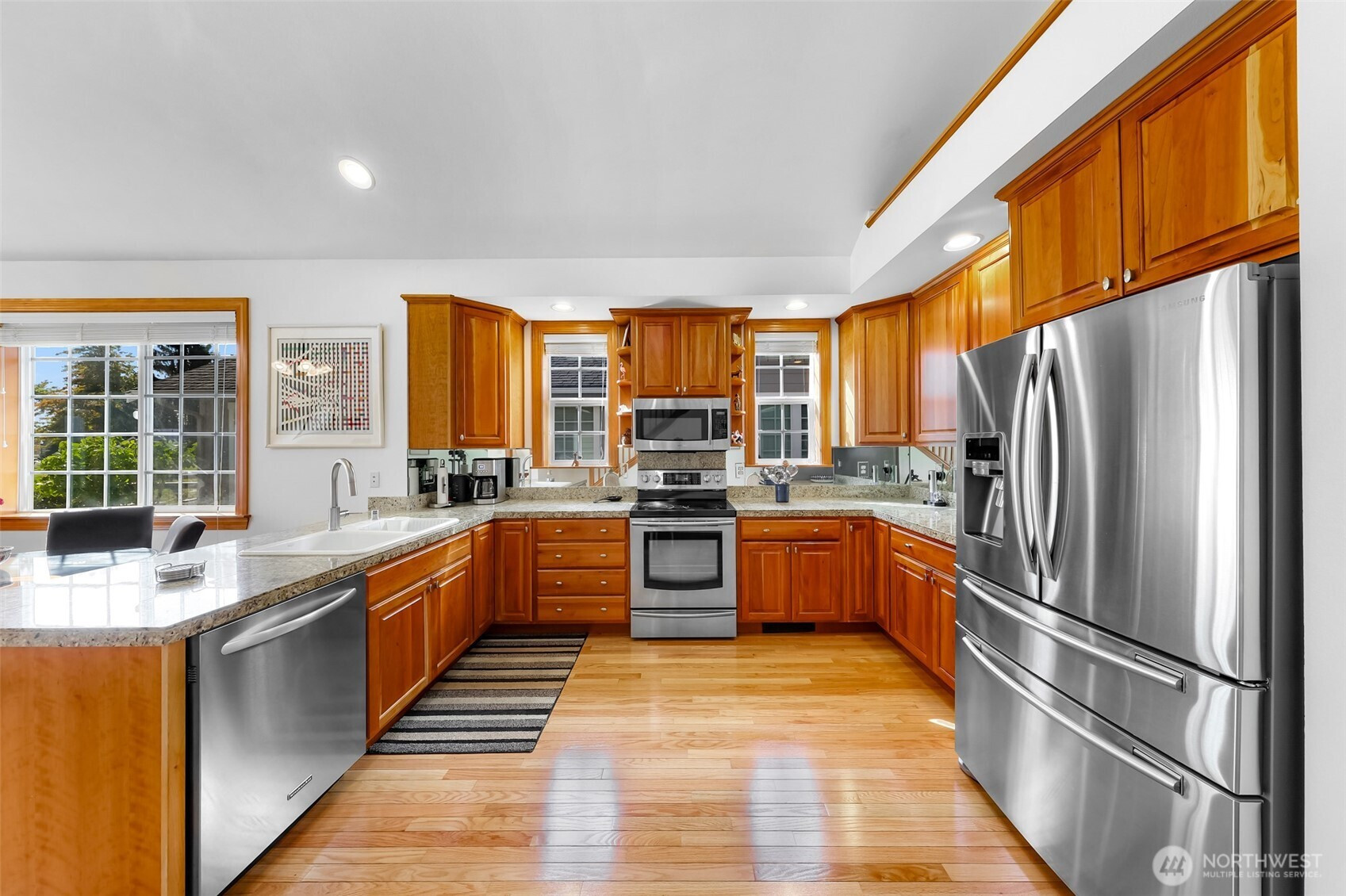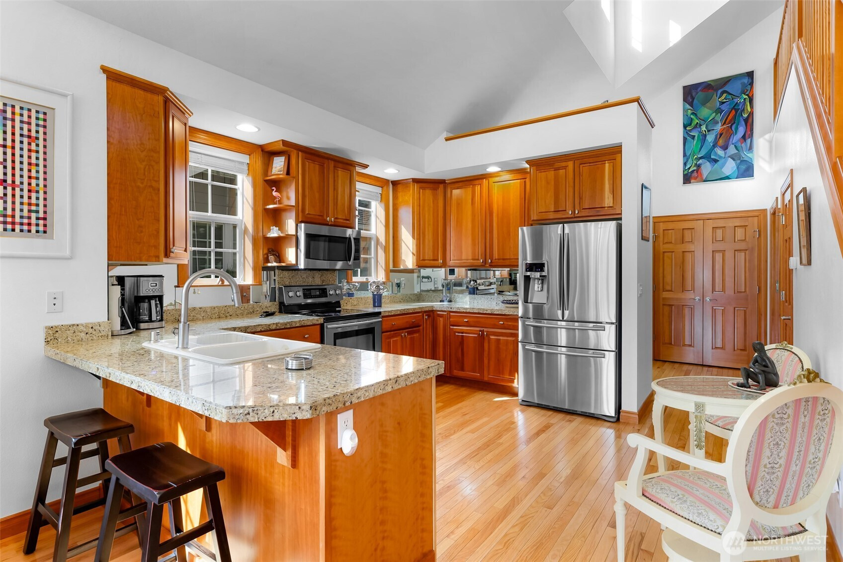 (503) 893-8874First time on the market for this stunning Homestead home on the 17th tee! With views of Mt. Baker & the Twin Sisters, this beautiful 3 bed + office space, 2.5 bath home boasts custom features including hardwood floors throughout, spacious kitchen with granite countertops & stylish tile finishes. Light floods the main living space with soaring vaulted ceilings & granite fireplace. Retreat to the main level primary suite with en suite bathroom, jetted tub, bidet toilet, walk-in closet & private deck. Bedroom closets have custom closet organizers & all windows are coated with UV protection. The spacious garage features an epoxied floor & wash basin with plenty of room for parking & storage. Schedule your private showing today!