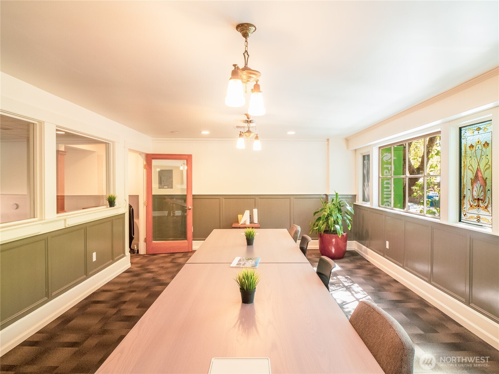 Situated in Bellingham’s Commercial Core, this turn-key space is perfect for office or retail use. The building was remodeled recently and has a large kitchenette and ADA bathrooms. The main floor is mostly open with some private office space. The mezzanine level in the front has a large conference room that looks out onto Holly St. The mezzanine level at the back has several small offices and some open space. Great window exposure, lots of light, bring your ideas. Located across from Black Sheep and Camber. Excellent owner user opportunity or the investor looking for a long-term hold property. $7,622 pm net lease in place until 11-2-26 which can be bought out. The building does have a connection option at the back of the building to 1313 Commercial Street, a 19,156 sq ft office building, which is also for sale.