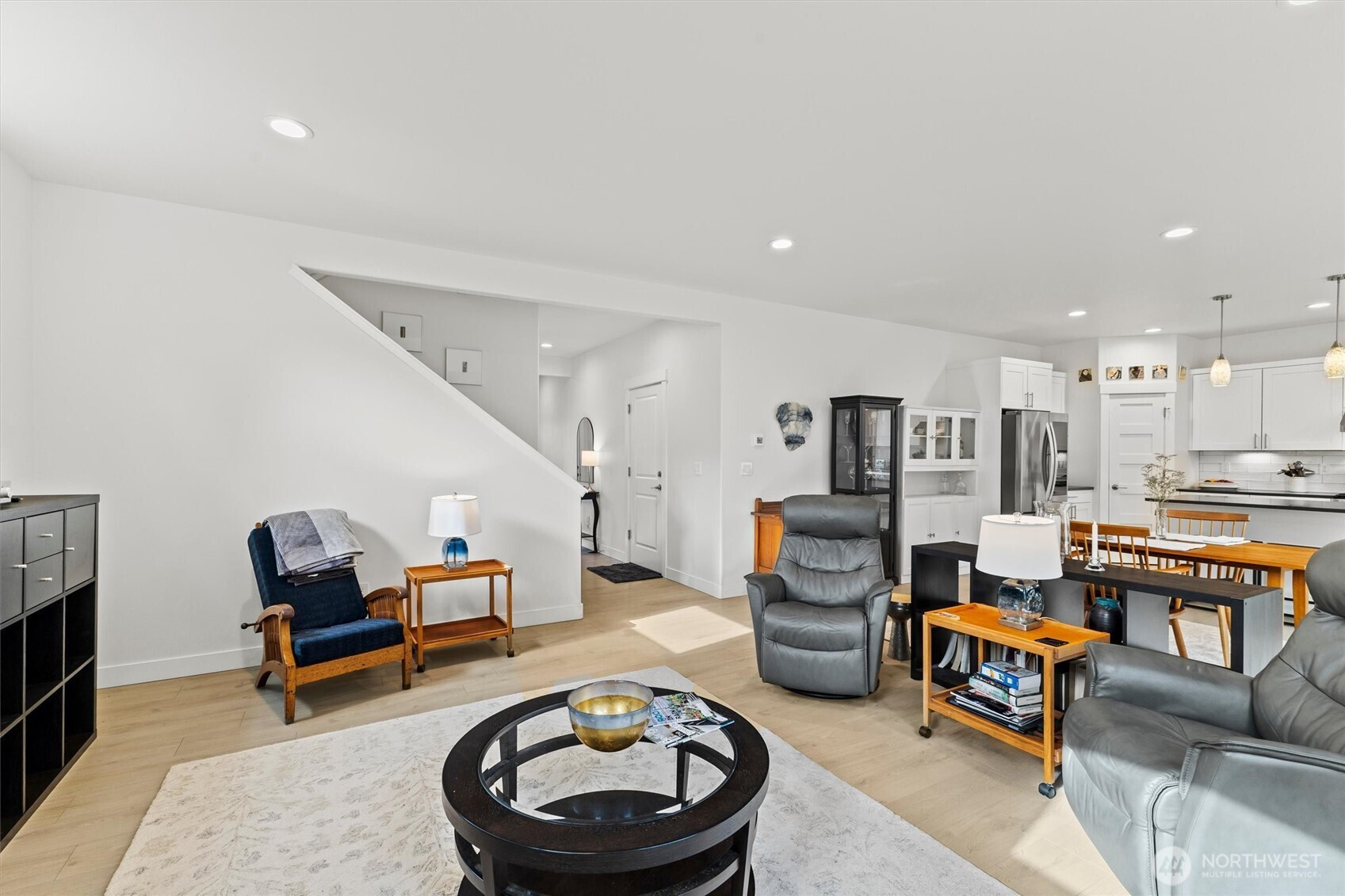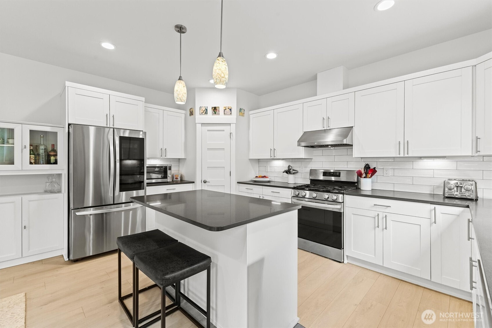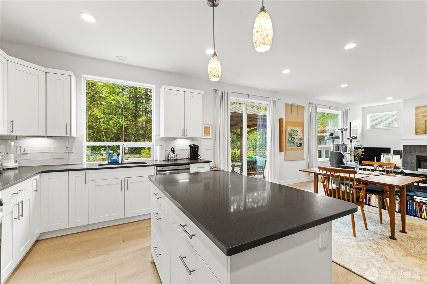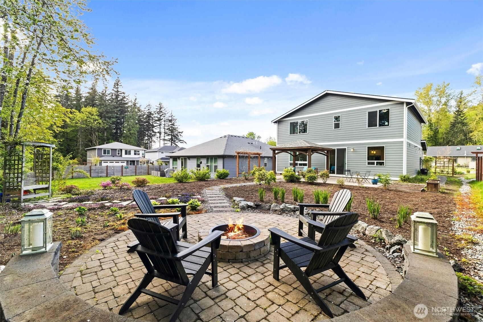 Upgraded and move-in ready, this 3 bed, 2.5 bath home with an office plus flex space offers the space and function you've been looking for. Designed for both work and home life, the layout easily supports remote work, hosting, and everyday living. The backyard is built for use; featuring low maintenance landscaping, extensive hardscaping with Belgard pavers, a dedicated firepit area, and room to gather year-round. Inside, you’ll find thoughtful upgrades throughout: solid wood doors, premium light fixtures, undercabinet kitchen lighting, and a gas fireplace. The spa-inspired primary ensuite includes a freestanding Japanese soaking tub, a tiled shower with a rain head, and quartz finishes. Even the garage has upgrades, including epoxy paint and a workbench, and the furnace is plumbed for A/C. Close to border access and Lincoln Park, with nearby nature trails, disc golf, quick beach access, and the convenience of town—all within a charming small neighborhood setting.