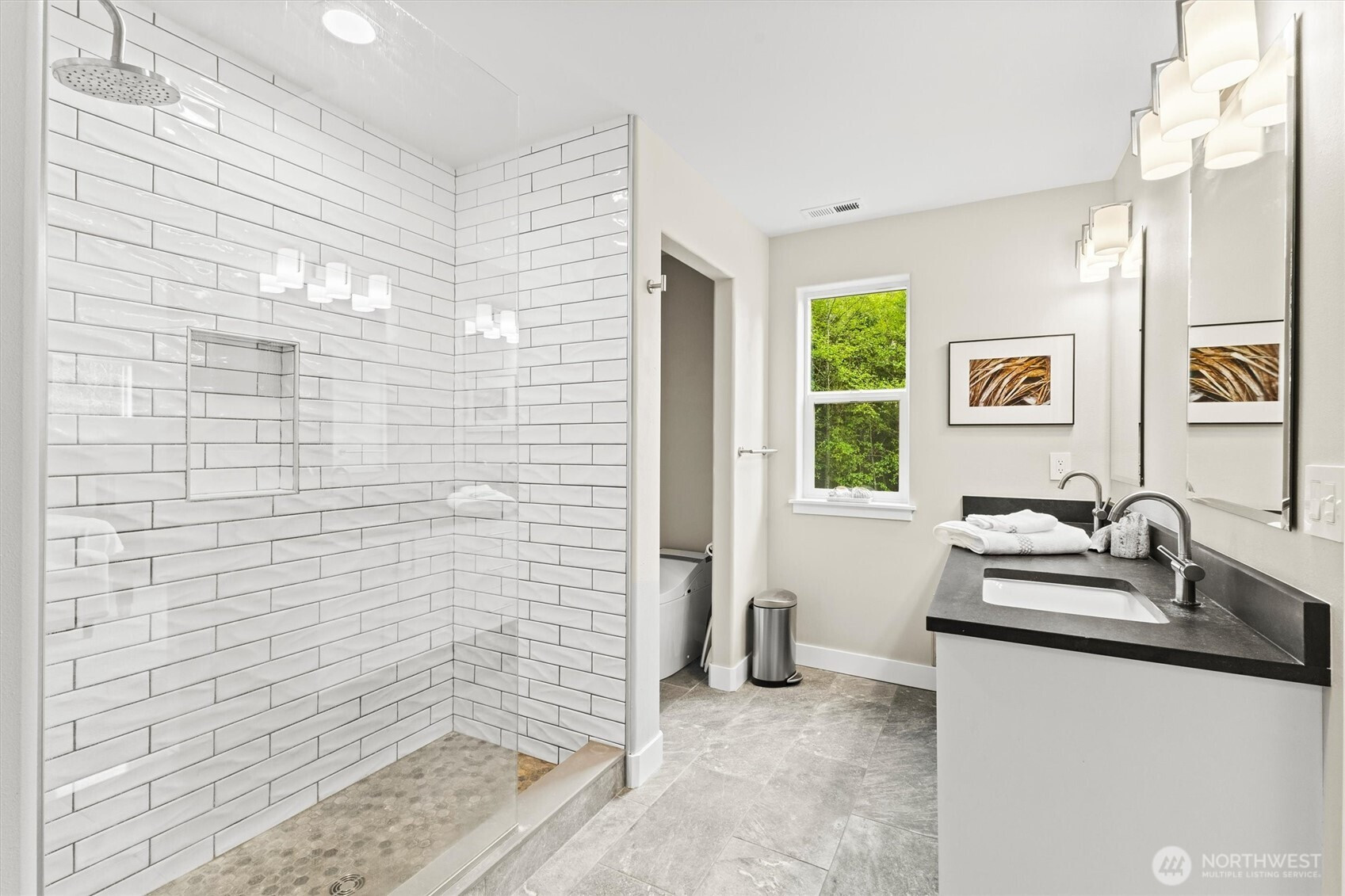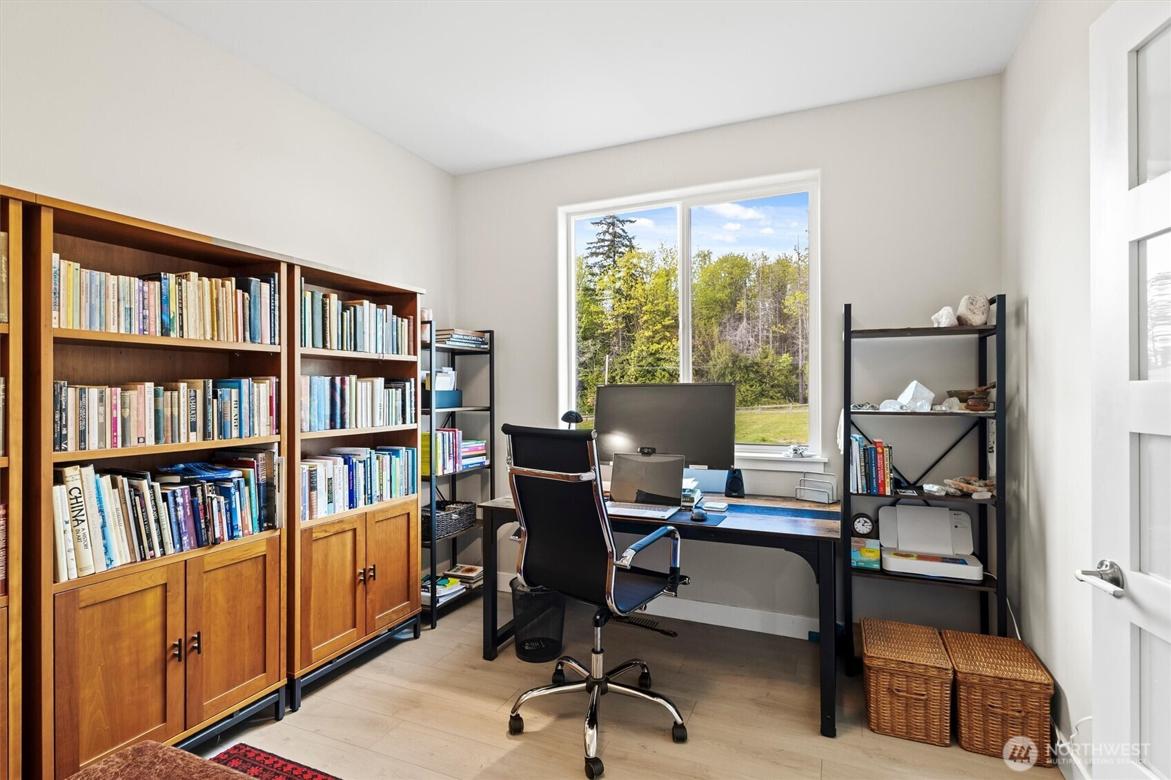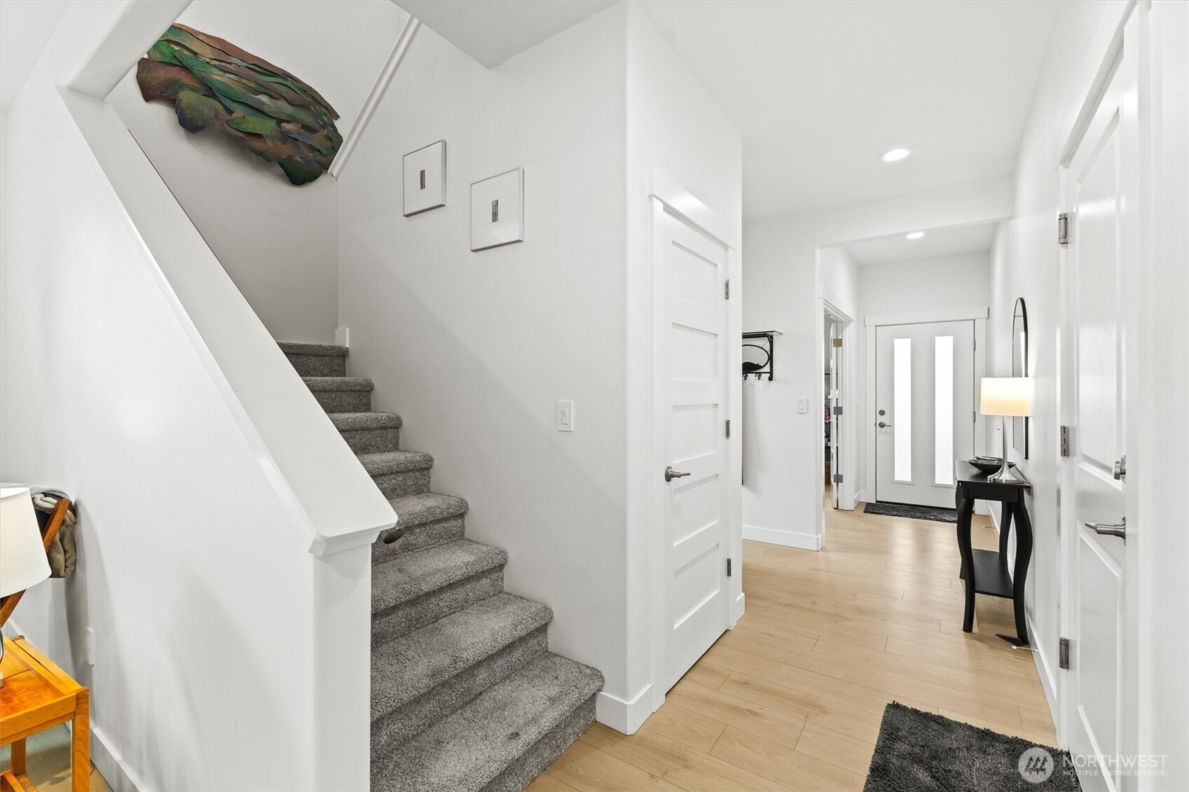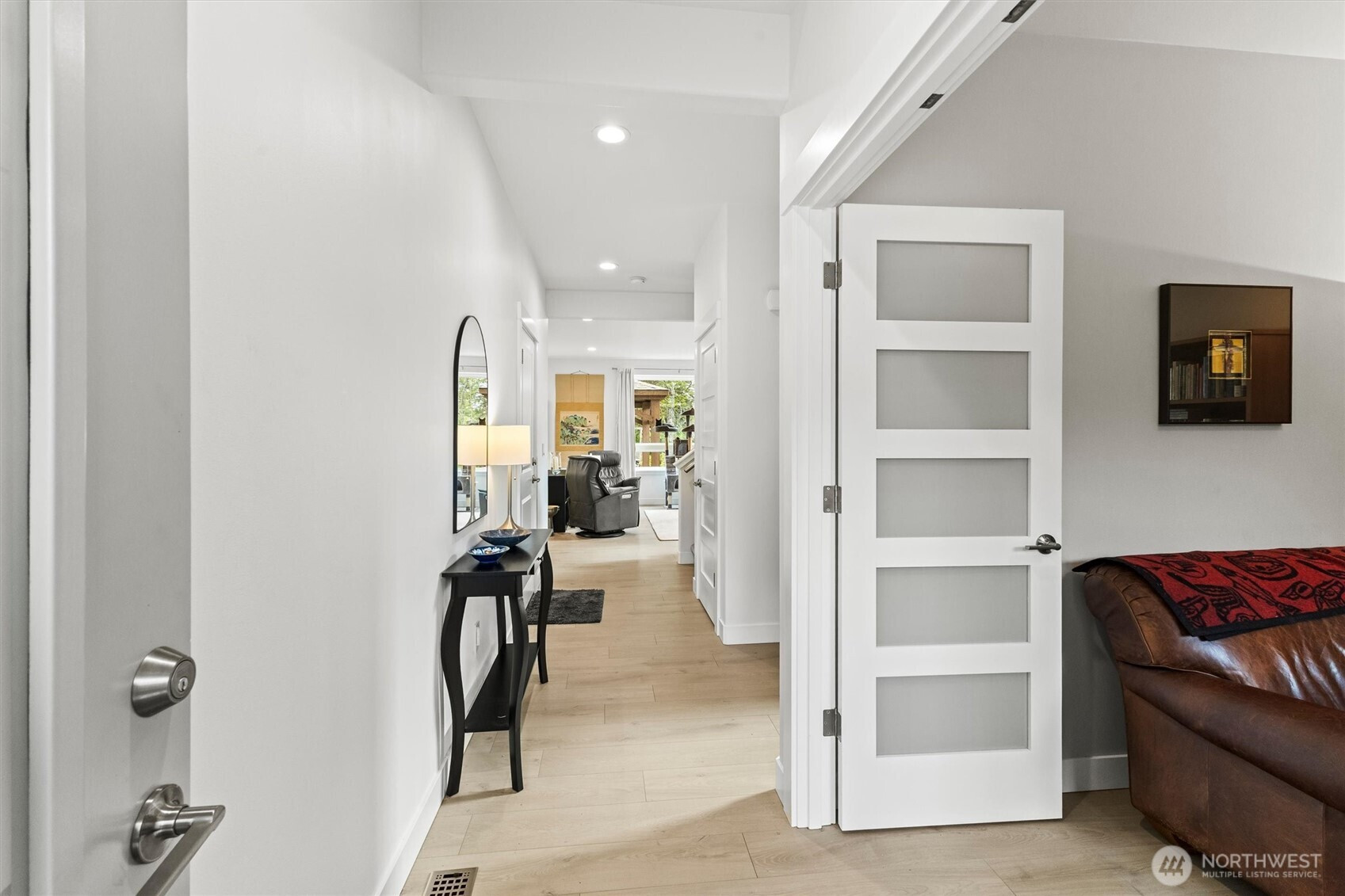 Upgraded and move-in ready, this 3 bed, 2.5 bath home with an office plus flex space offers the space and function you've been looking for. Designed for both work and home life, the layout easily supports remote work, hosting, and everyday living. The backyard is built for use; featuring low maintenance landscaping, extensive hardscaping with Belgard pavers, a dedicated firepit area, and room to gather year-round. Inside, you’ll find thoughtful upgrades throughout: solid wood doors, premium light fixtures, undercabinet kitchen lighting, and a gas fireplace. The spa-inspired primary ensuite includes a freestanding Japanese soaking tub, a tiled shower with a rain head, and quartz finishes. Even the garage has upgrades, including epoxy paint and a workbench, and the furnace is plumbed for A/C. Close to border access and Lincoln Park, with nearby nature trails, disc golf, quick beach access, and the convenience of town—all within a charming small neighborhood setting.