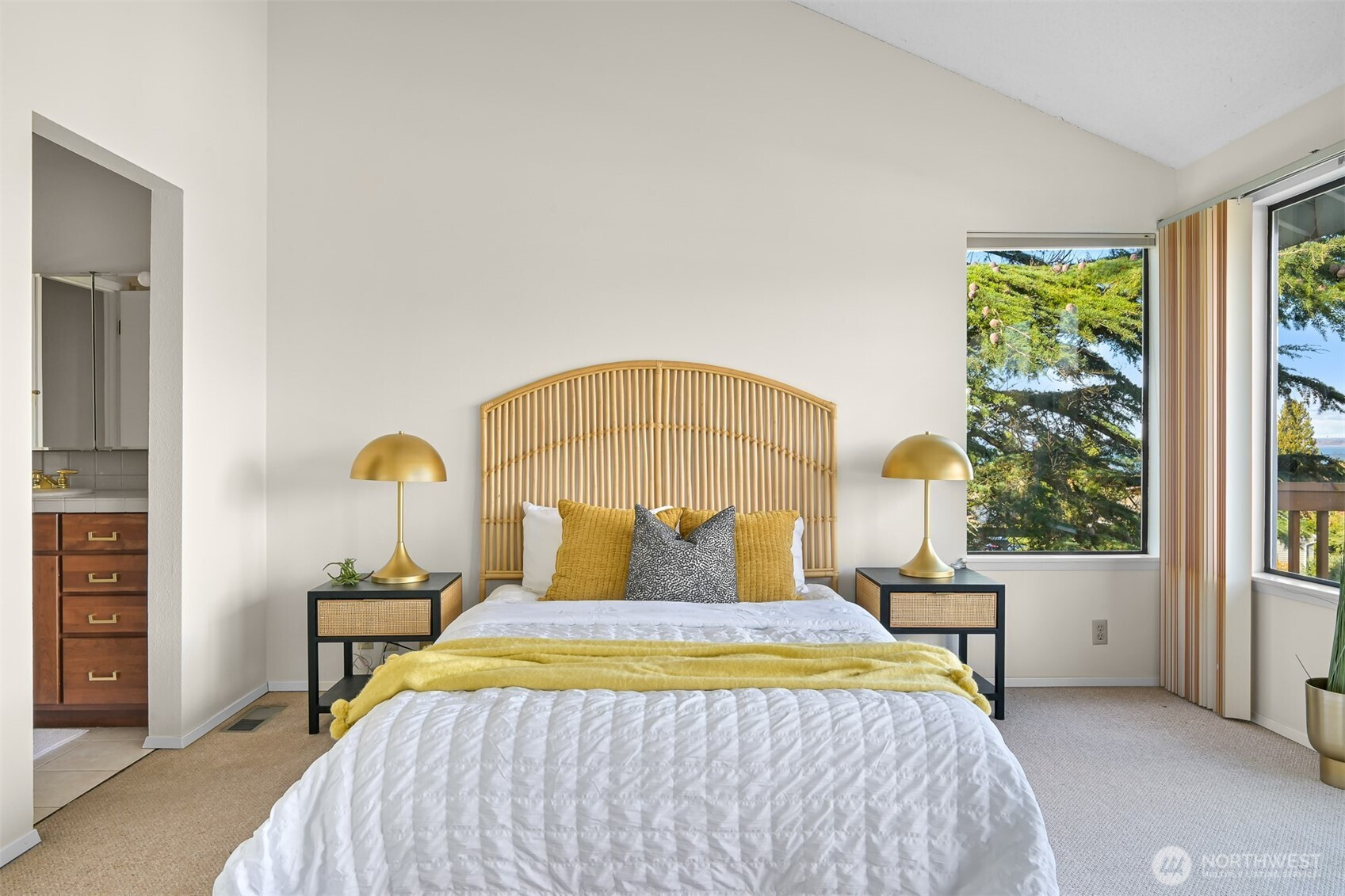 (503) 893-8874Sweeping views of Bellingham Bay, the city, & the Canadian mountains! This mid-century Edgemoor gem has timeless charm and endless potential for sweat equity. Vaulted ceilings, warm wood accents, & stone details create a beautiful backdrop for your personal touch. Brand new roof and plush carpet! Top floor is a dedicated primary suite with NEW view deck, perfect for sunset-watching. Private lower level w/ a separate entrance offers flexible space for guests, work, or ADU potential. Attached 2-car garage + an unfinished workshop for storage. Quiet, tree-lined neighborhood just a short walk to Fairhaven, Marine Park, Clark's Point, & endless trails. Opportunities like this don’t come around often! Bring your vision & make it yours!