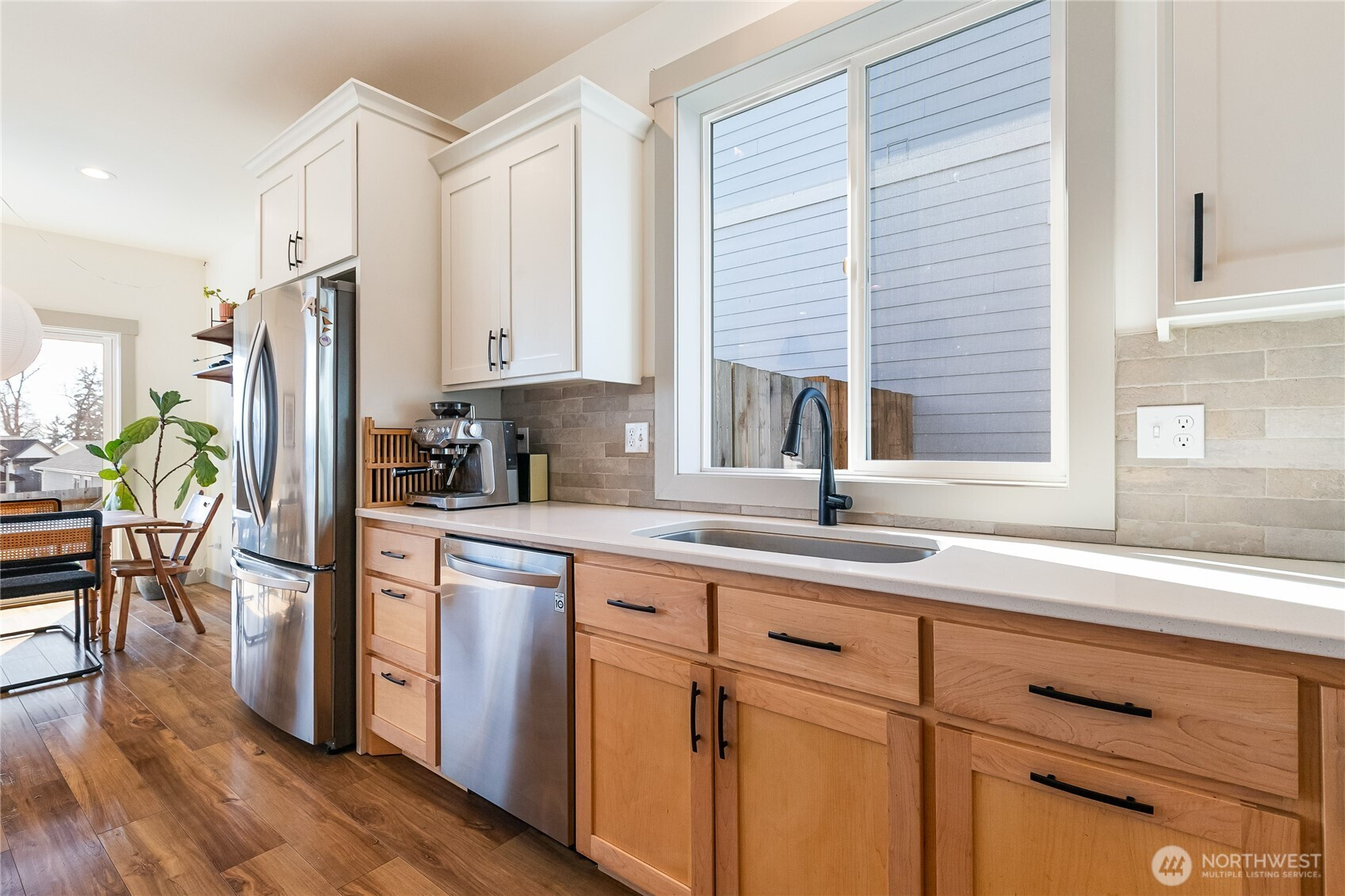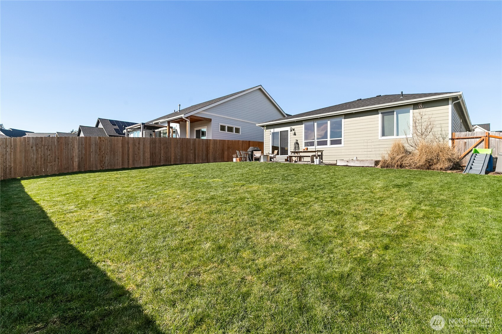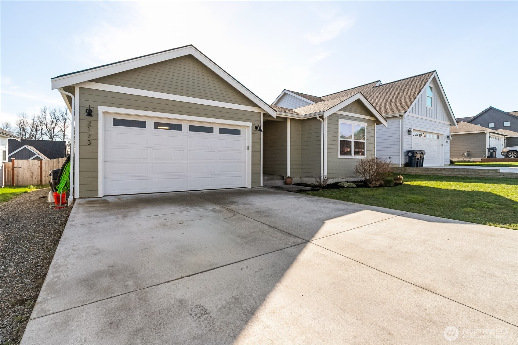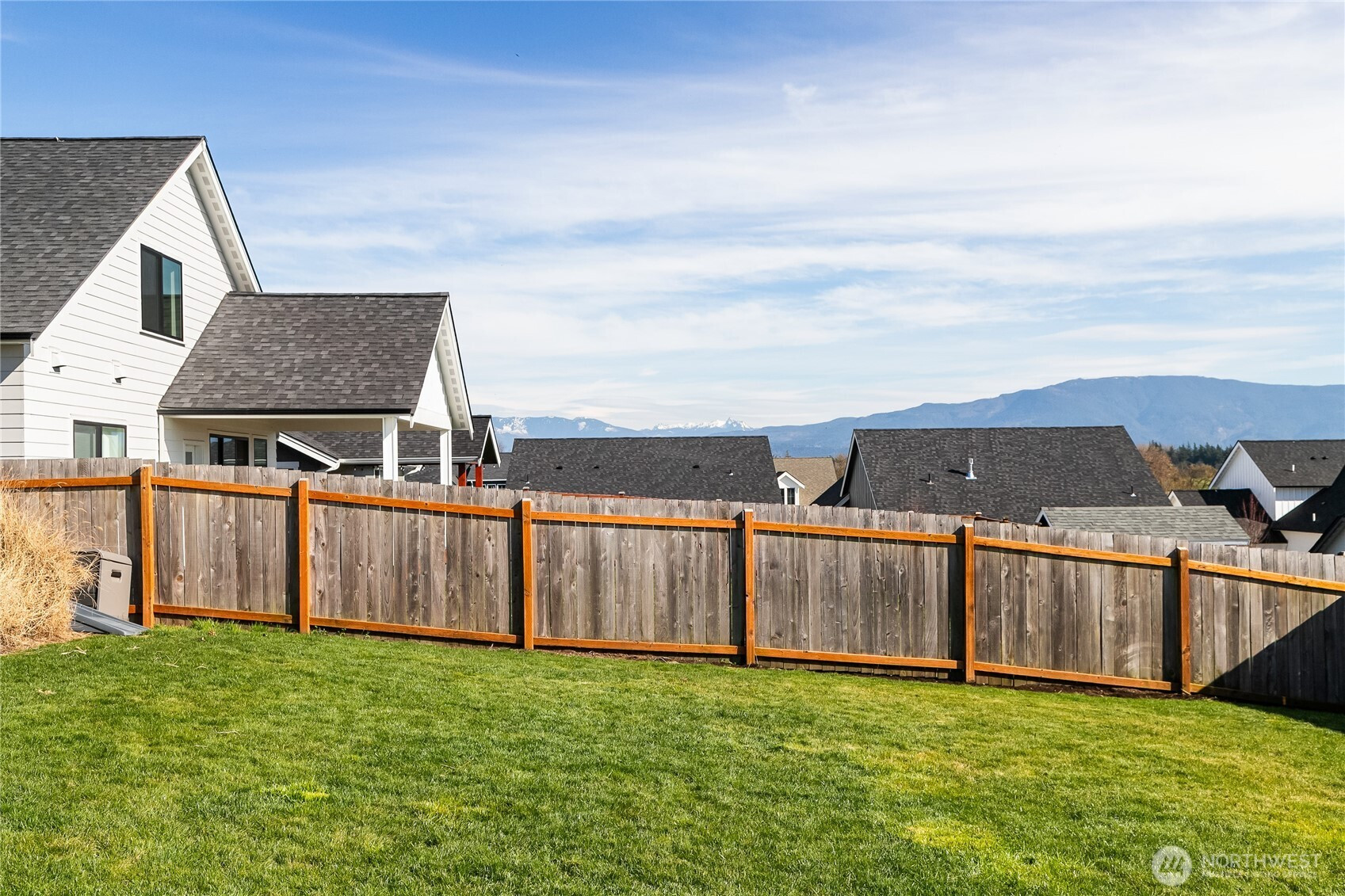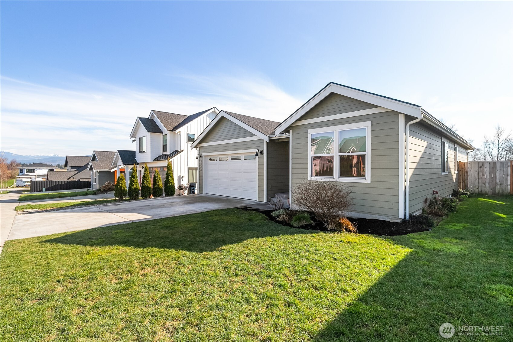 Are you searching for single-level living filled with exceptional natural light and thoughtfully designed upgrades? This east Lynden home is anything but ordinary. Meticulously enhanced by the seller, the property features a heated garage, custom sauna, outdoor sprinkler system, and a fully fenced backyard designed for comfort and convenience. Inside, the kitchen shines with an oversized island offering abundant storage and generous prep space, perfect for any gathering. The 9-foot ceilings elevate the great room, creating a more open feel throughout. Step outside to enjoy a beautifully maintained backyard complete with a concrete patio, a gravel area for additional recreation, and serene mountain views as your backdrop. Just over three years old, this home combines modern efficiency with quality upgrades, including air conditioning with 2 mini-split systems, a tankless water heater, and upgraded Milgard windows. Ideally located just minutes from downtown Lynden and close to scenic walking trails, this exceptional home is ready to go!