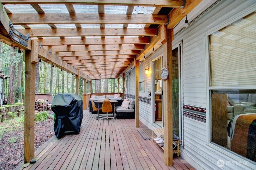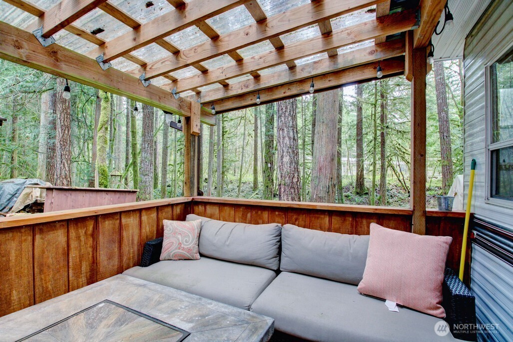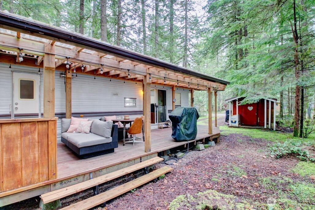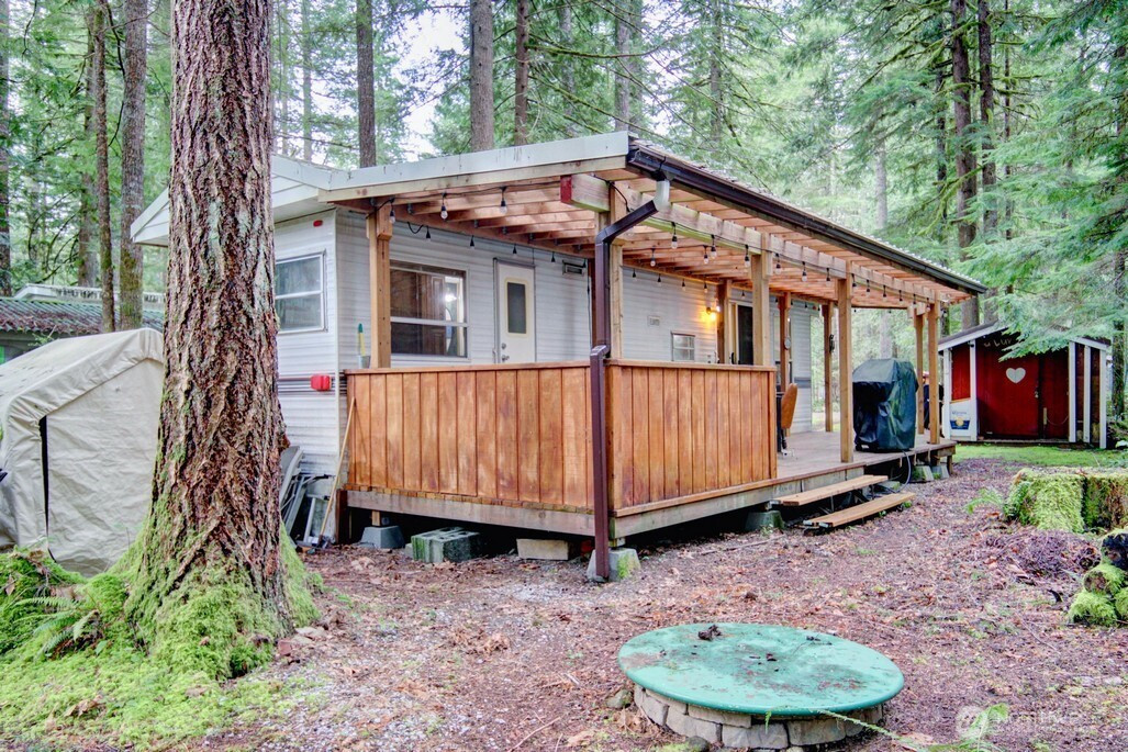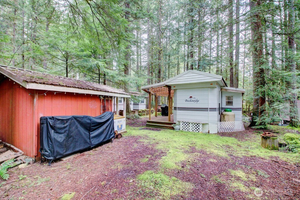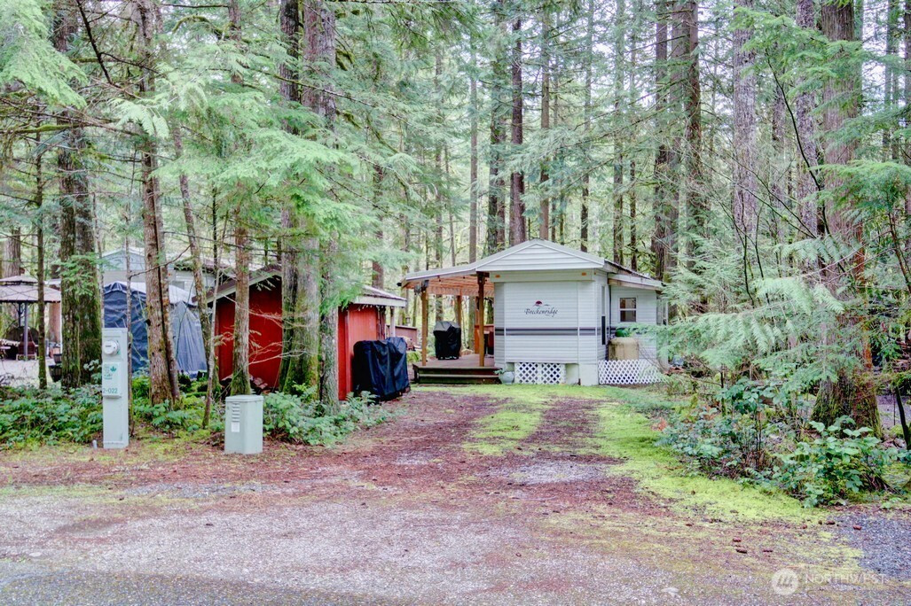 Two bedroom Breckenridge park model on great lot adjacent to greenspace with trail to the mighty Nooksack River. the bunkroom in the park model has three bunks. Insulated shed is a great flex space and/or additional storage. Great starter park model on a very desirable lot. Financing available to buyers with verifiable U.S. income via 21st Mortgage. The Glen is zoned recreational for 120 days of use out of the year and has all the amenities you could want, including 2 pools, hot tub, pickleball court, wooded disc golf course near the Nooksack River, library, laundry mat, 2 clubhouse, teen gaming center, 24 hr security, gated entry, & play areas.