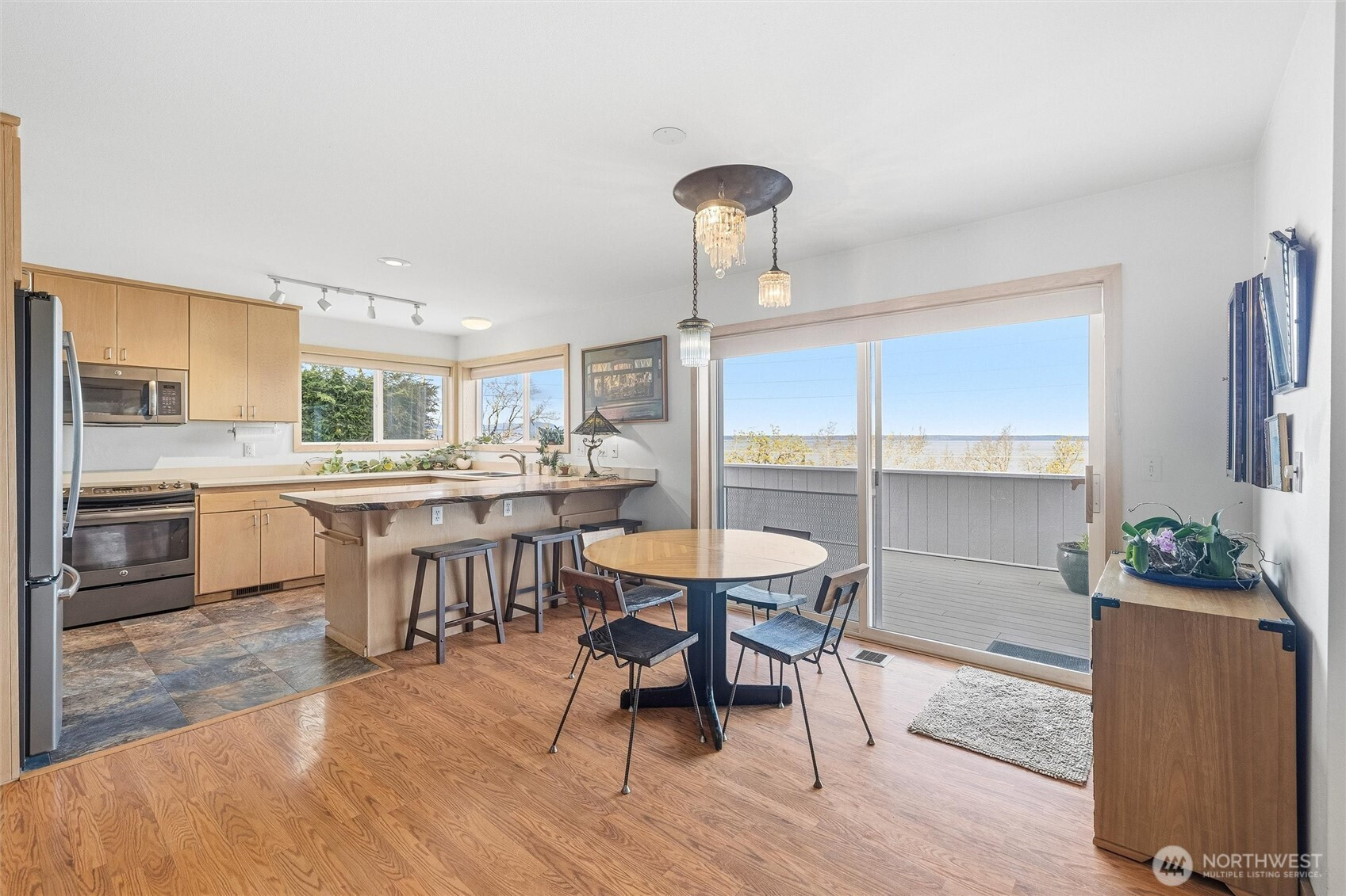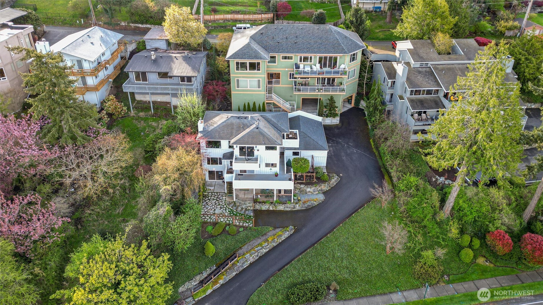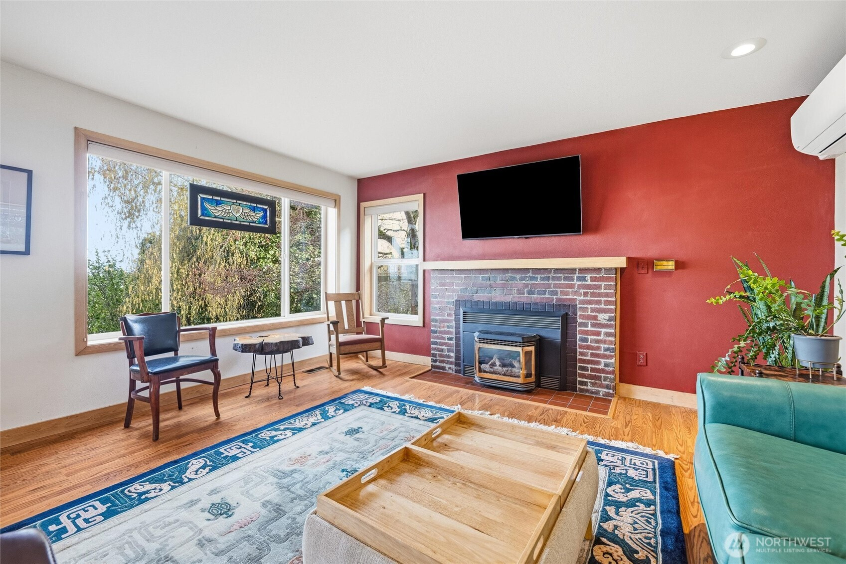 This truly special South Hill property offers breathtaking views of Bellingham Bay and the downtown waterfront-an opportunity rarely found. The upper unit features a beautifully designed 2-bed, 2-bath layout with an open-concept living space that captures the views from nearly every angle. The kitchen showcases quartz counters, stainless appliances, and a custom live-edge eat-up bar, seamlessly flowing into the dining area and out to a large, partially covered private deck-perfect for year-round enjoyment. Cozy living room with gas fireplace and an ensuite primary complete the upper level. What sets this property apart is the fully separate 1-bed, 1-bath lower-level ADU with its own private entrance. Complete with a full kitchen, spacious bedroom with gas fireplace, and dedicated parking, it offers flexibility for guests, rental income, or multi-generational living. Additional features include a fully fenced yard, on-demand hot water, and efficient mini-split heating & cooling. Unbeatable location nestled between Historic Fairhaven and Downtown Bellingham-enjoy easy access to the trail system, Boulevard Park, the Bellingham Boardwalk, Waypoint Park, and the waterfront’s vibrant container village.