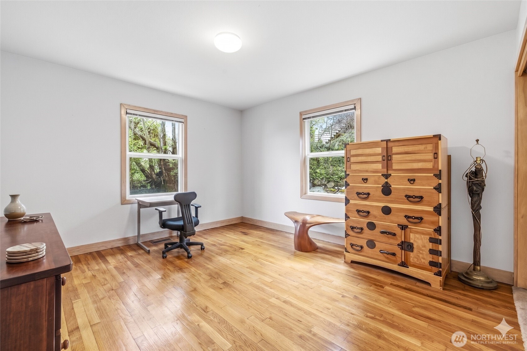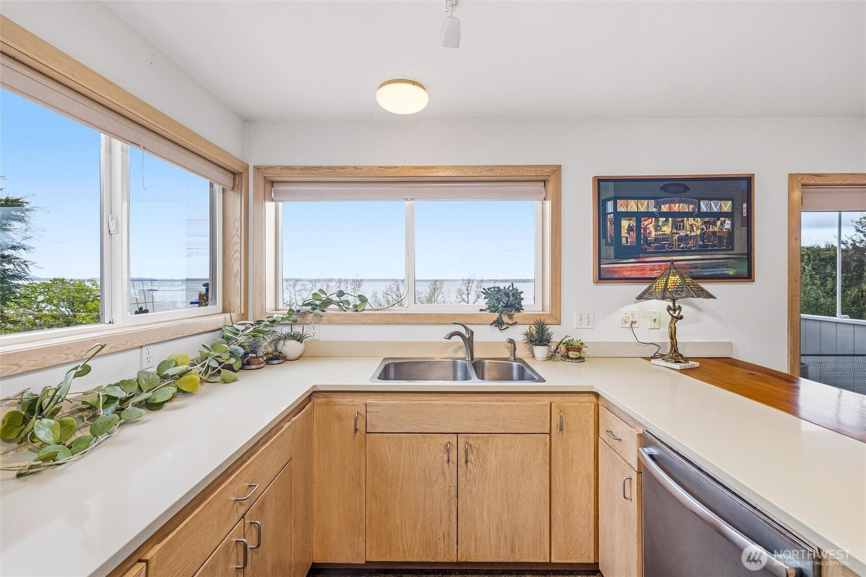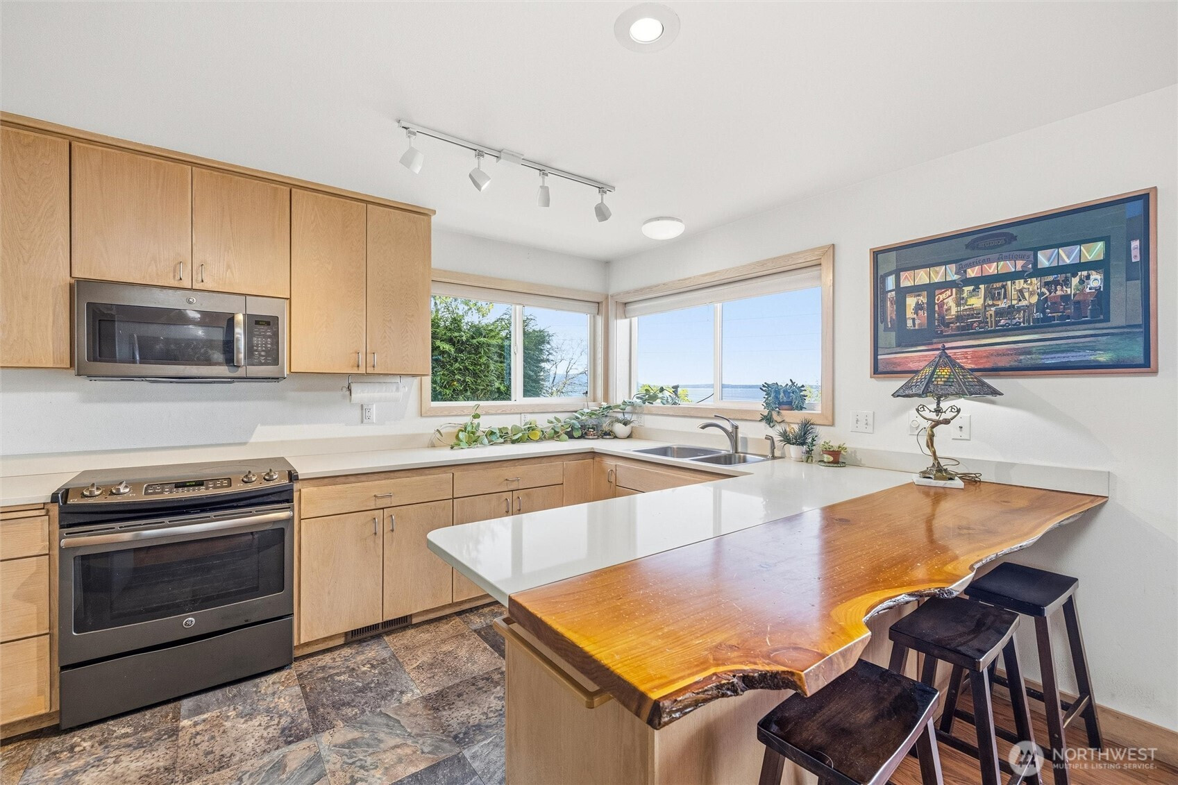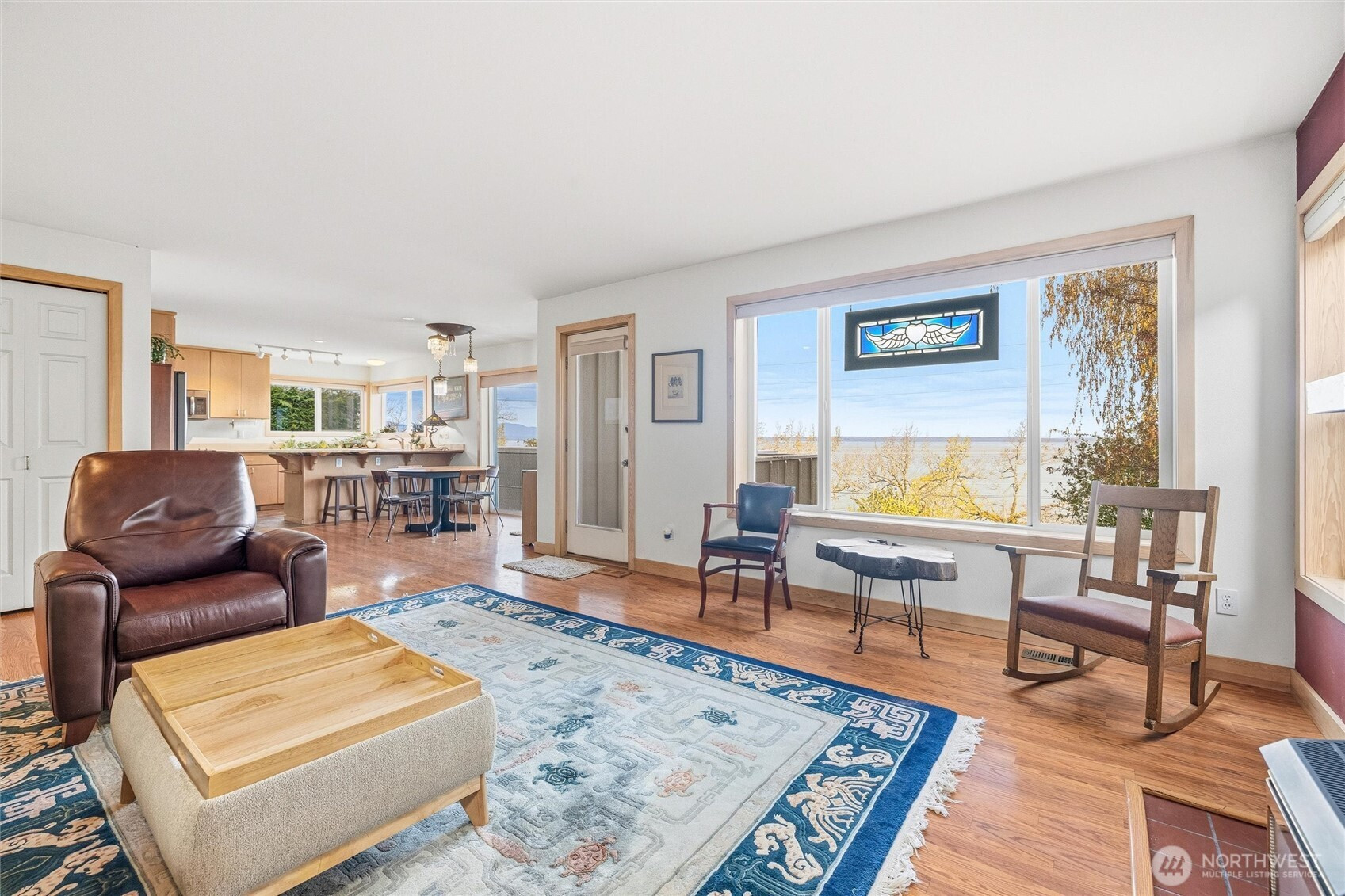 This truly special South Hill property offers breathtaking views of Bellingham Bay and the downtown waterfront-an opportunity rarely found. The upper unit features a beautifully designed 2-bed, 2-bath layout with an open-concept living space that captures the views from nearly every angle. The kitchen showcases quartz counters, stainless appliances, and a custom live-edge eat-up bar, seamlessly flowing into the dining area and out to a large, partially covered private deck-perfect for year-round enjoyment. Cozy living room with gas fireplace and an ensuite primary complete the upper level. What sets this property apart is the fully separate 1-bed, 1-bath lower-level ADU with its own private entrance. Complete with a full kitchen, spacious bedroom with gas fireplace, and dedicated parking, it offers flexibility for guests, rental income, or multi-generational living. Additional features include a fully fenced yard, on-demand hot water, and efficient mini-split heating & cooling. Unbeatable location nestled between Historic Fairhaven and Downtown Bellingham-enjoy easy access to the trail system, Boulevard Park, the Bellingham Boardwalk, Waypoint Park, and the waterfront’s vibrant container village.