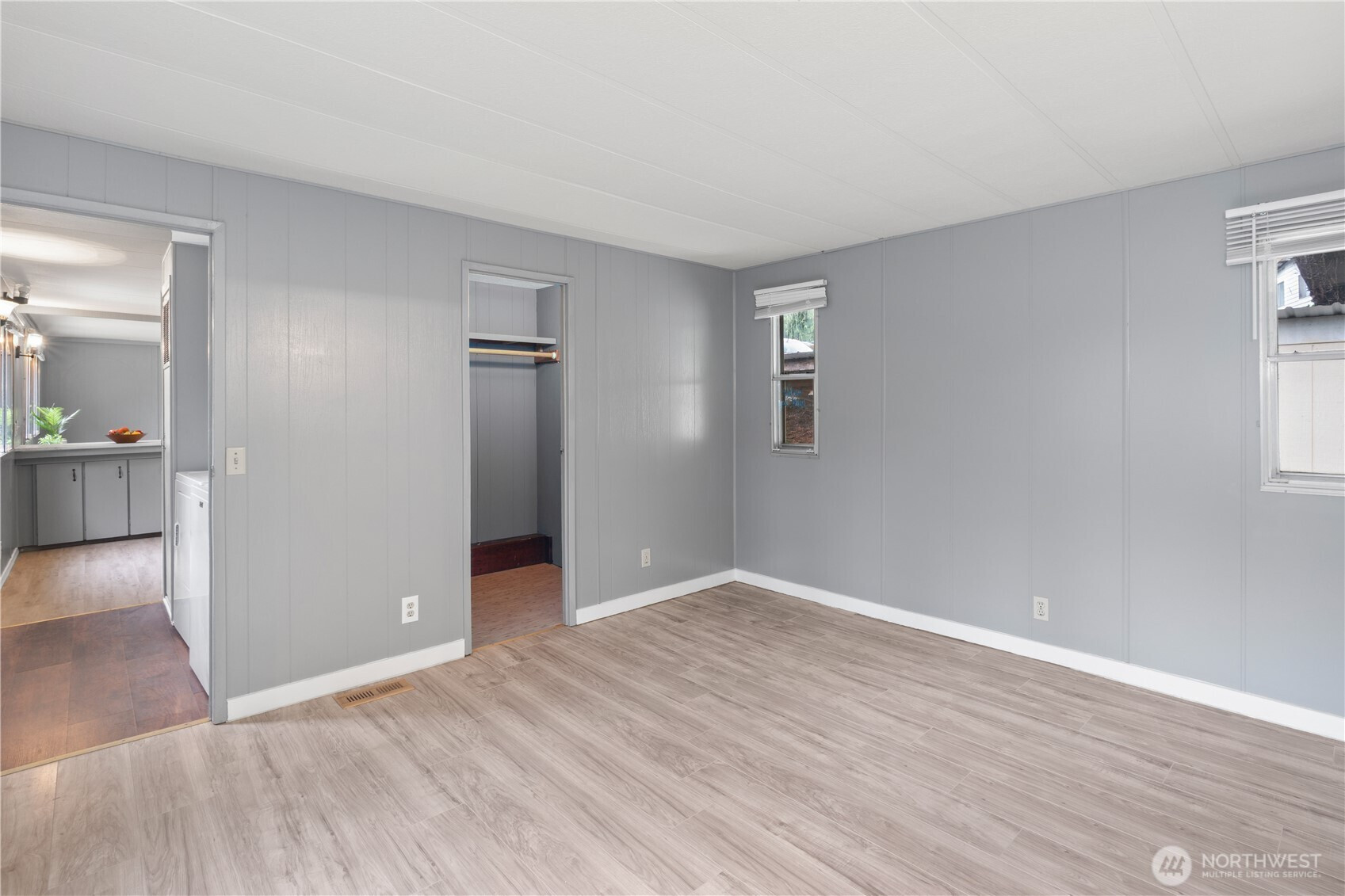 Move-in ready 1976 Broadmore 2-bedroom, 2-bath home in the desirable Forest Park Mobile Home Community, offering comfortable and affordable living in Bellingham. Thoughtfully designed with bedrooms on opposite ends of the home for added privacy, with a bright open concept living area between them that flows into the kitchen and dining space. The primary bedroom features a walk-in closet and private ensuite bath. Enjoy the enclosed porch for bonus living space and a large deck overlooking a peaceful apple orchard, perfect for relaxing or entertaining. Storage shed included for tools and extra storage. Located on a corner lot with no direct neighbors on either side, providing added privacy. Conveniently located near shopping, medical services, parks, and downtown Bellingham.