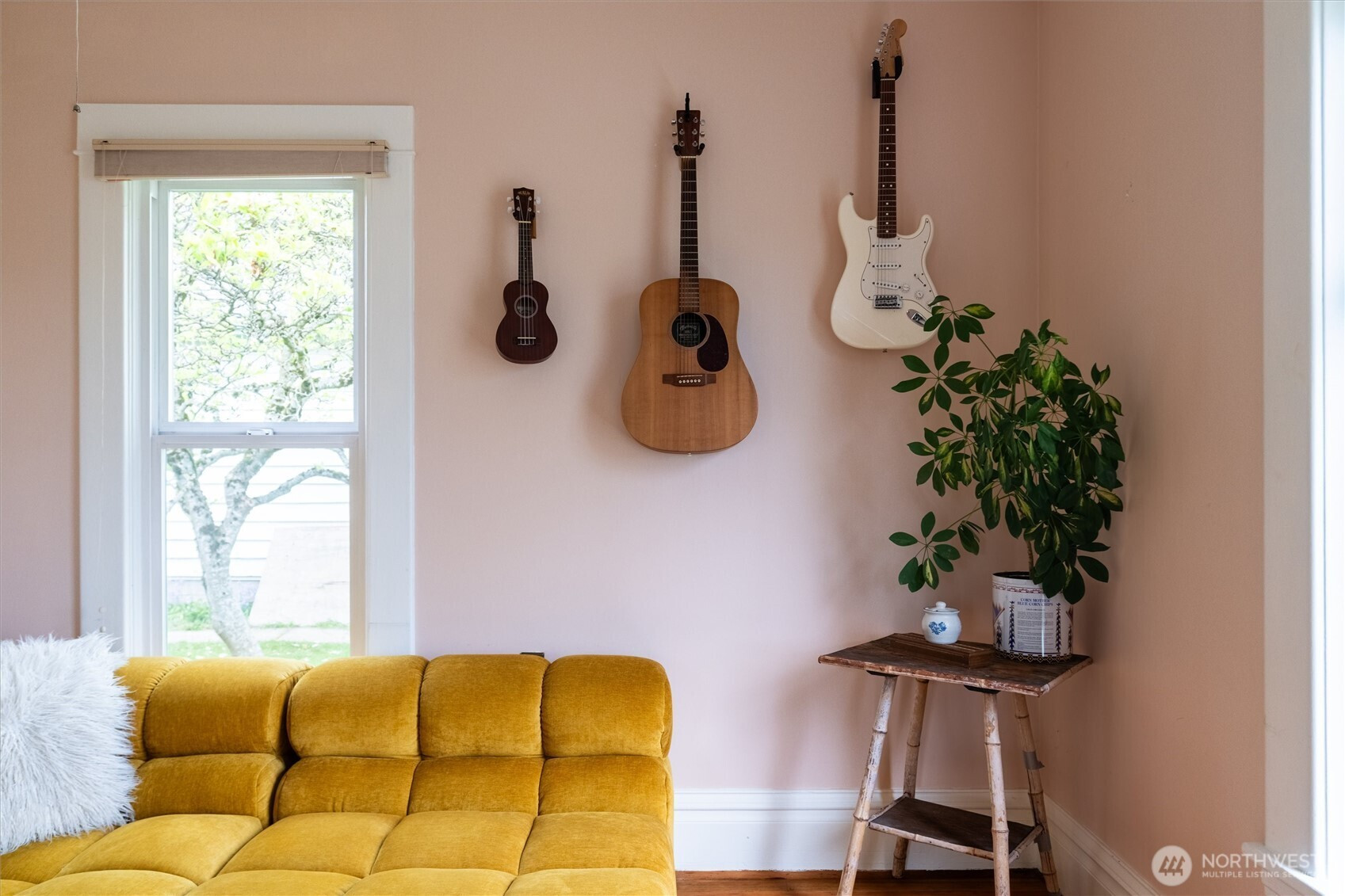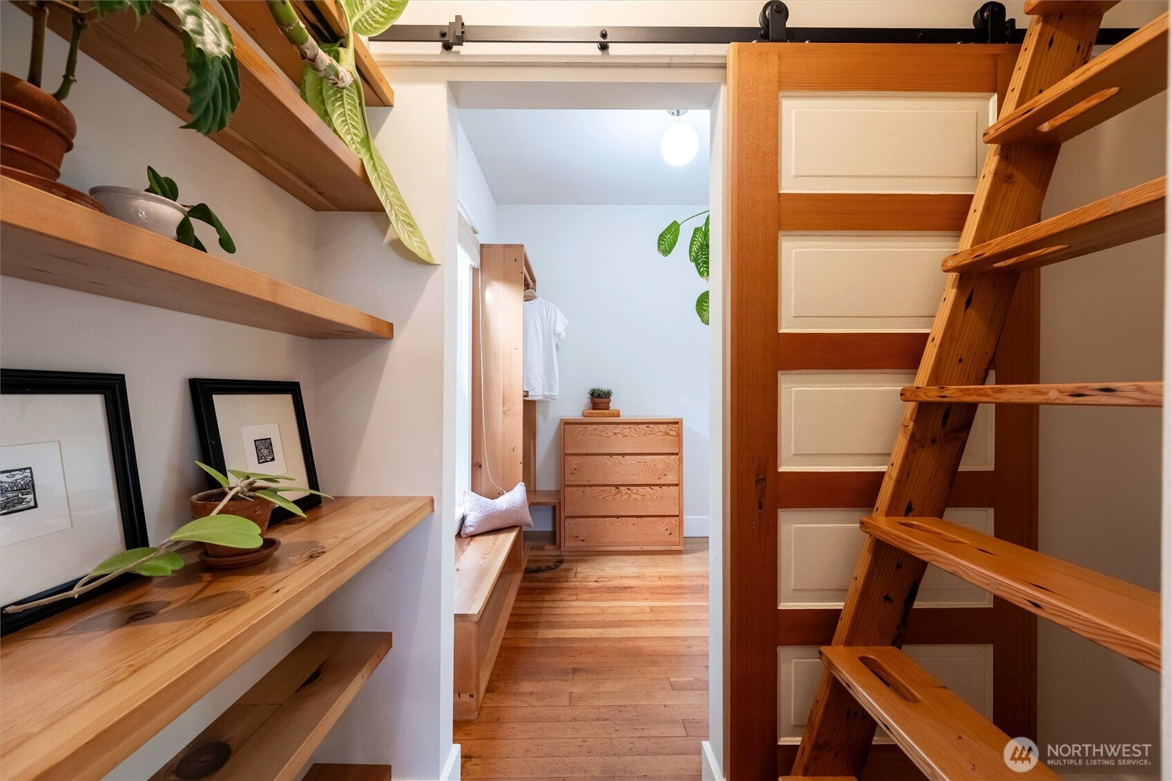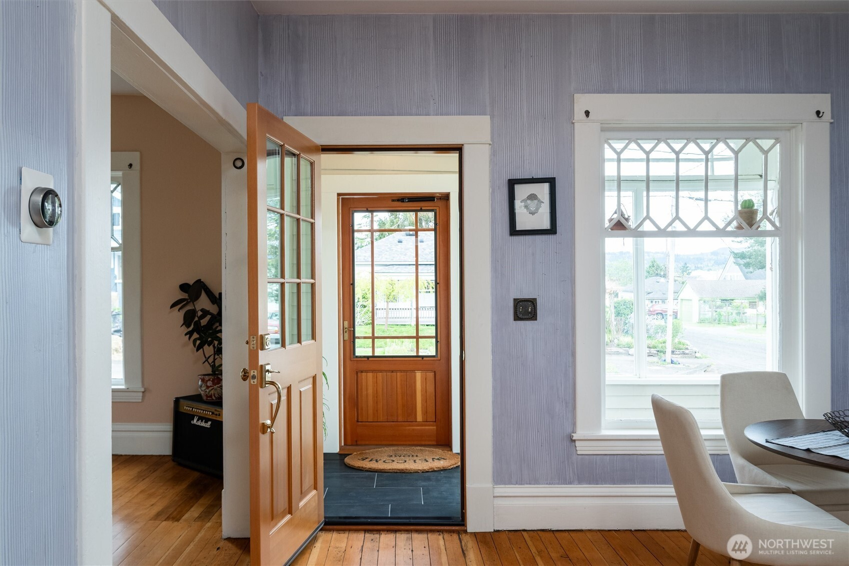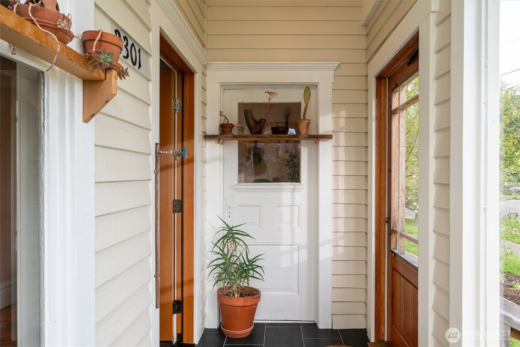 Tucked into the heart of Bellingham’s beloved Lettered Streets neighborhood, this 1906 bungalow instantly feels special from the moment you enter the front door. Thoughtfully updated, it strikes that perfect balance between historic charm and elevated, design-forward living. Showstopper kitchen anchored by gorgeous custom cabinetry crafted from reclaimed wood from a barn in Whatcom County. Paired with high-end Thermador appliances, it's as artful of a space as it is functional. The remodeled bathroom preserved some vintage fixtures while updating tile and adding heated floors. Refinished fir floors and a freestanding gas stove (which efficiently heats the home) make this home feel grounded, cozy and comfortable. Upstairs, a converted attic creates a sweet and private guest bedroom or creative retreat, while the rest of the home lives comfortably with an easy, intuitive flow. Corner lot with wonderful outdoor space featuring an apple tree, raised garden beds, fire pit area, and plenty of room to soak up all-day sun. A true gardener's paradise! A storage shed keeps tools and gear neatly tucked away, and for those thinking ahead, previously drawn plans for a future garage/ADU can be shared. A home that lives beautifully from day one—one you’ll want to experience in person!