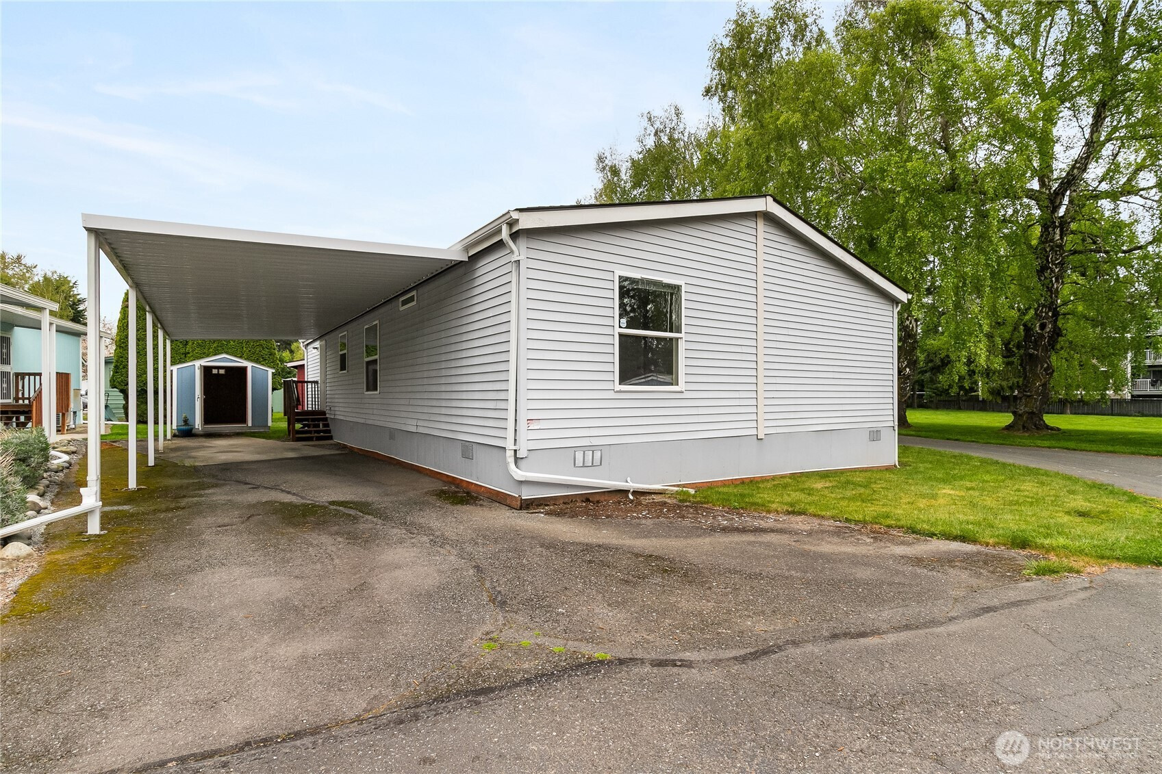 Move-In Ready Updated Manufactured Home! This beautifully updated home offers 3 bedrooms and 2 full bathrooms, with numerous recent upgrades throughout. Enjoy brand-new carpet and fresh interior paint that give the home a clean, modern feel. The spacious kitchen features ample cabinetry, new countertops, a separate dining area, and all-new appliances, perfect for both everyday living and entertaining. The primary bedroom includes a full adjoining bathroom with a new shower and a walk-in closet for added convenience and comfort. Space rent is $600 per month and includes water and sewer. The park is owner-occupied only (no rentals allowed), and pets under 20 lbs are welcome. Outside, you’ll appreciate the added storage of a brand-new TUFF shed and the ease of low-maintenance living. And a 2 car tandem carport. Homes this clean and updated don’t last, come see it before it’s gone! Don’t miss this opportunity!