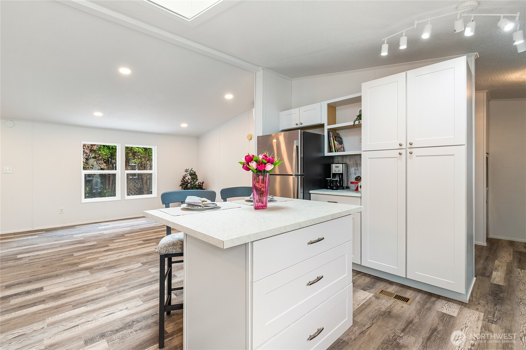 Beautifully Updated & Move-In Ready Manufactured Home. Step into this fully remodeled 3-bedroom, 2-bathroom home where everything has been thoughtfully updated from top to bottom. Featuring brand-new LVP flooring, fresh interior and exterior paint, and updated plumbing, this home truly feels better than new. The stunning kitchen has been completely redesigned with new cabinetry, a spacious island, modern countertops, and sleek stainless steel appliances, perfect for cooking and entertaining. New light fixtures throughout the home add a bright, contemporary touch. The primary suite offers a private retreat with a beautifully updated en-suite bathroom, featuring a large new shower, modern vanity, and a walk-in closet for added convenience. The second bathroom has also been fully renovated with a new tub and shower, vanity, and toilet. Enjoy year-round comfort with a new mini-split heating and A/C system. The home also includes a separate dining area, ample storage, and a utility shed for your extra belongings. Community Details: Space rent: $600/month (includes water & sewer) Owner-occupied only (no rentals) Pets welcome (under 20 lbs) This turnkey home combines modern upgrades with everyday comfort—don’t miss your chance to make it yours!