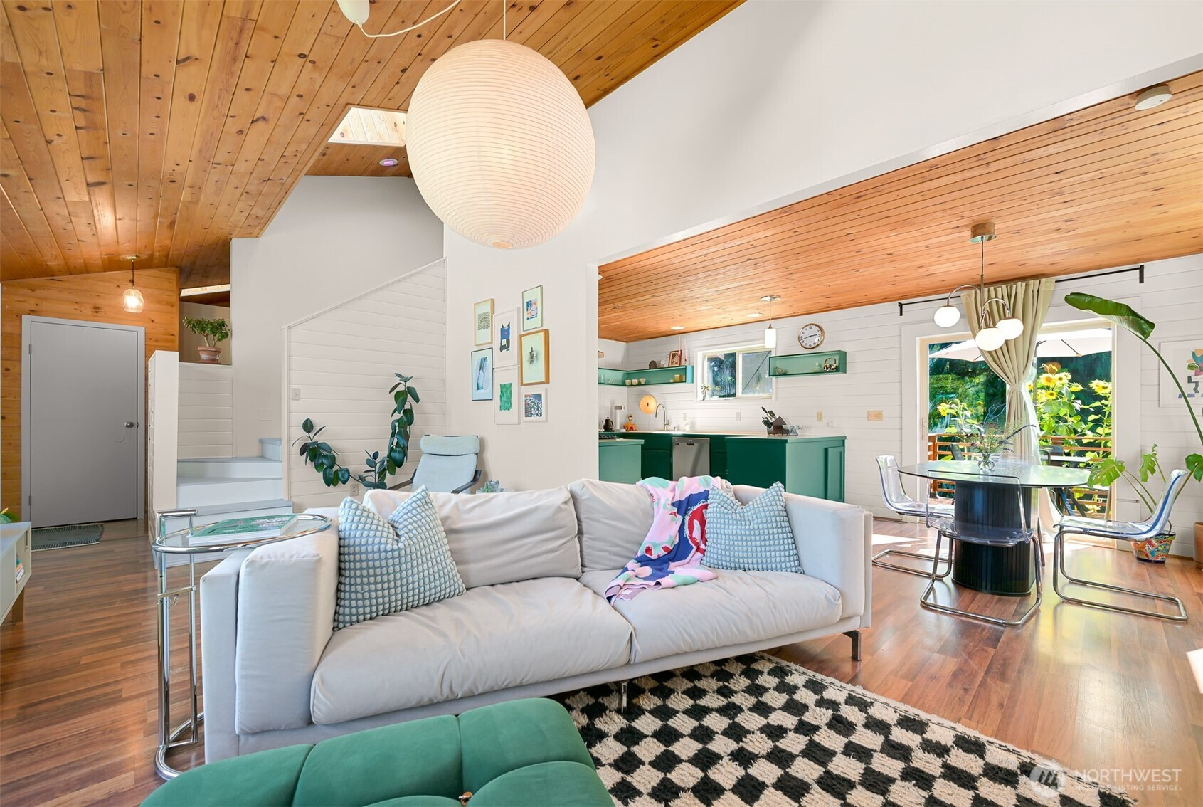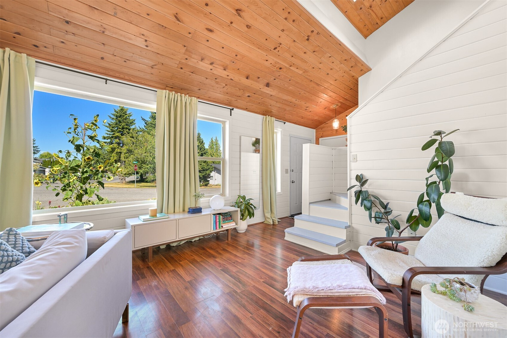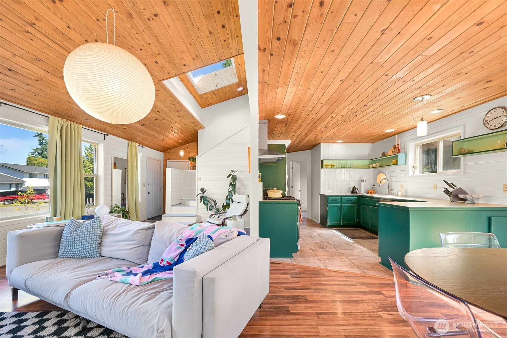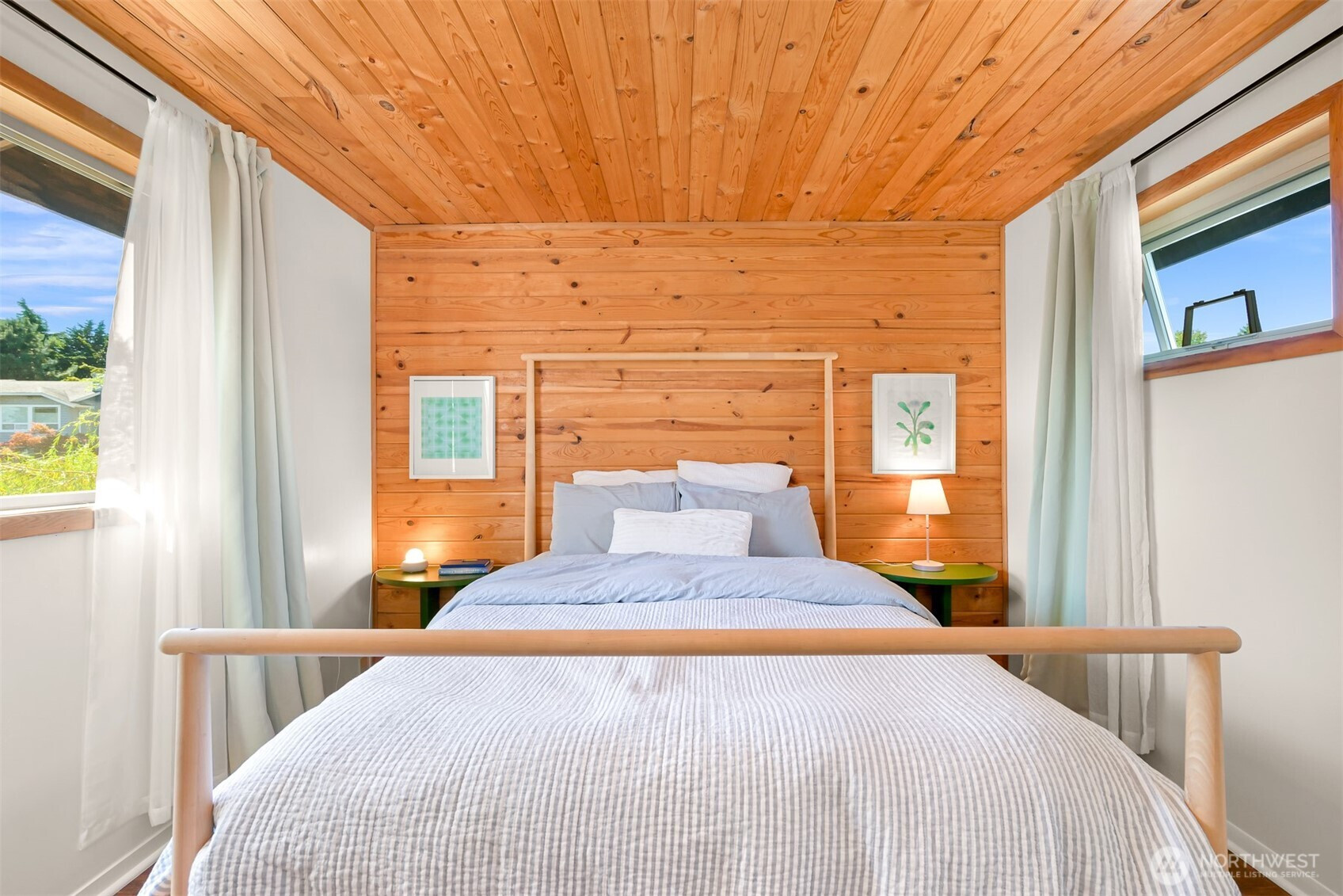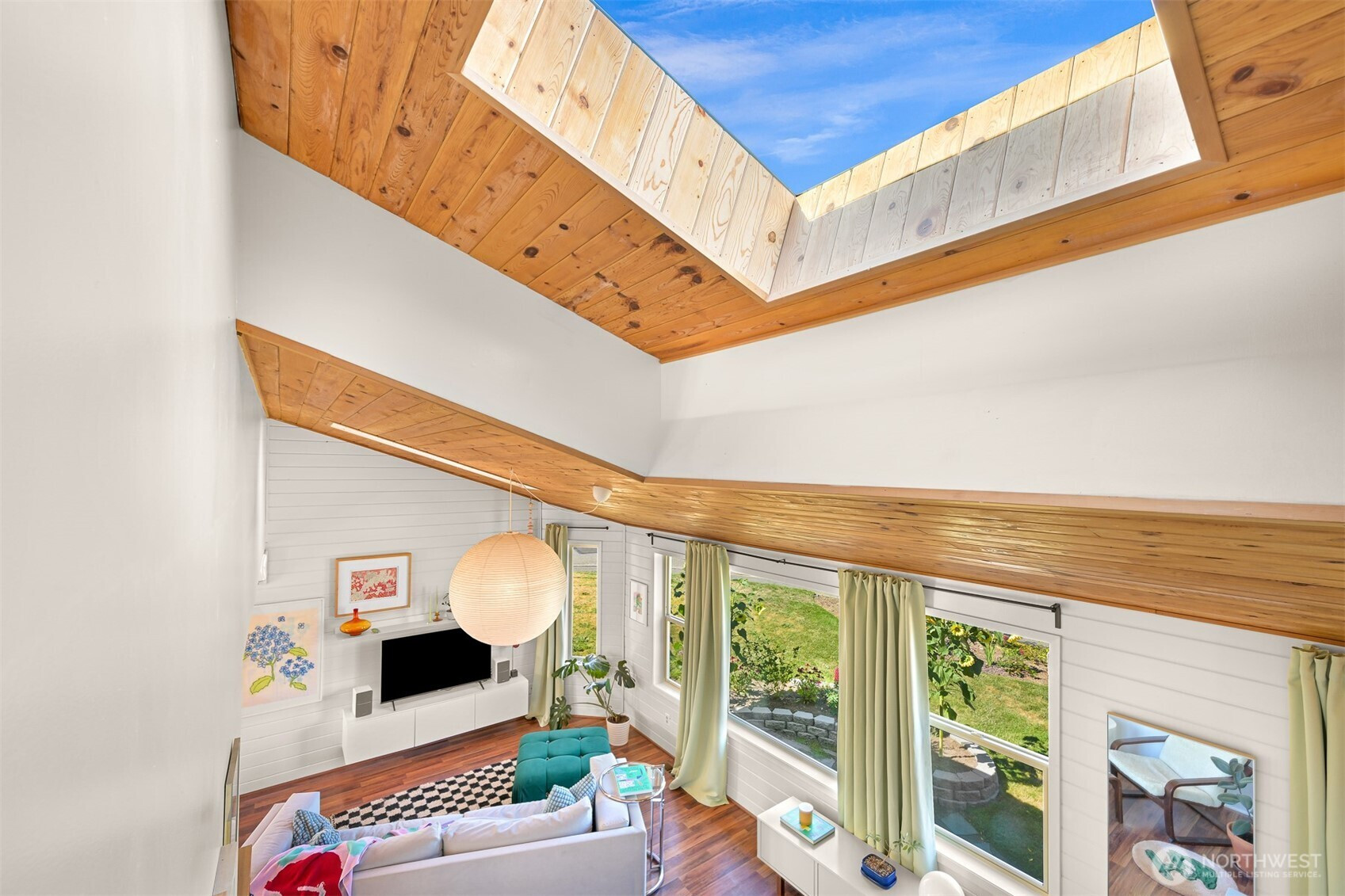 Not your average Ferndale 3-bedroom! This beautiful cedar home has been touched with pointed modernity while retaining every ounce of its warmth and charm. The brightened interior comes alongside the skylights and large windows to fill rooms with natural light. The layout is flexible with two bedrooms up, one down, and extra space in the garage if you need it. Updates galore! High-efficiency furnace, fresh paint, lighting, kitchen and bath improvements, and refinished decks. Outside, the fully fenced yard offers fruit, garden beds, patios, and a greenbelt backdrop for privacy. Set in a gorgeous neighborhood location that weaves around with easily navigable sidewalks. Excellent proximity to schools and parks. It's a must-see!