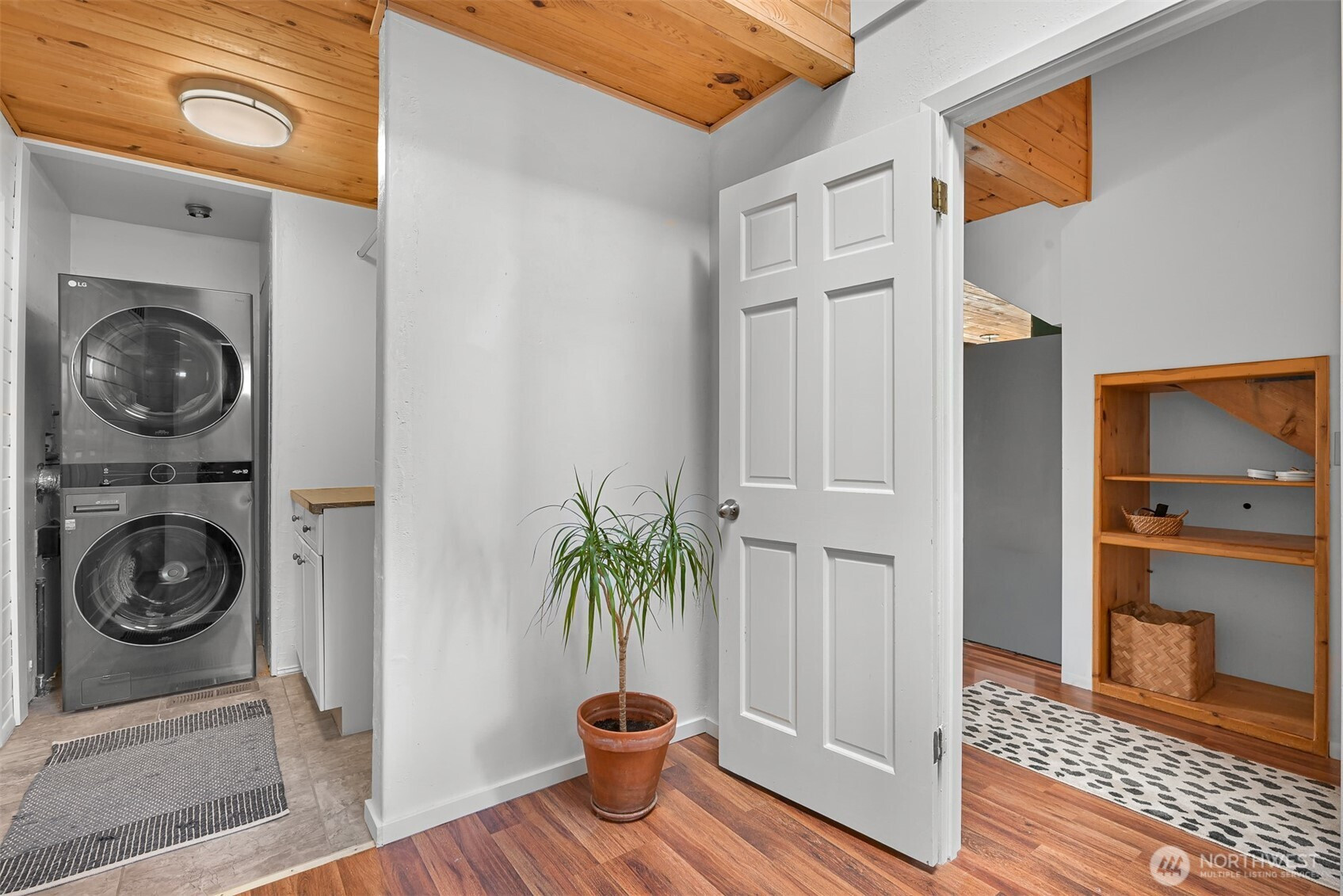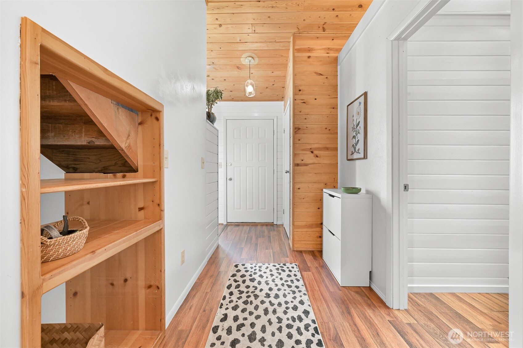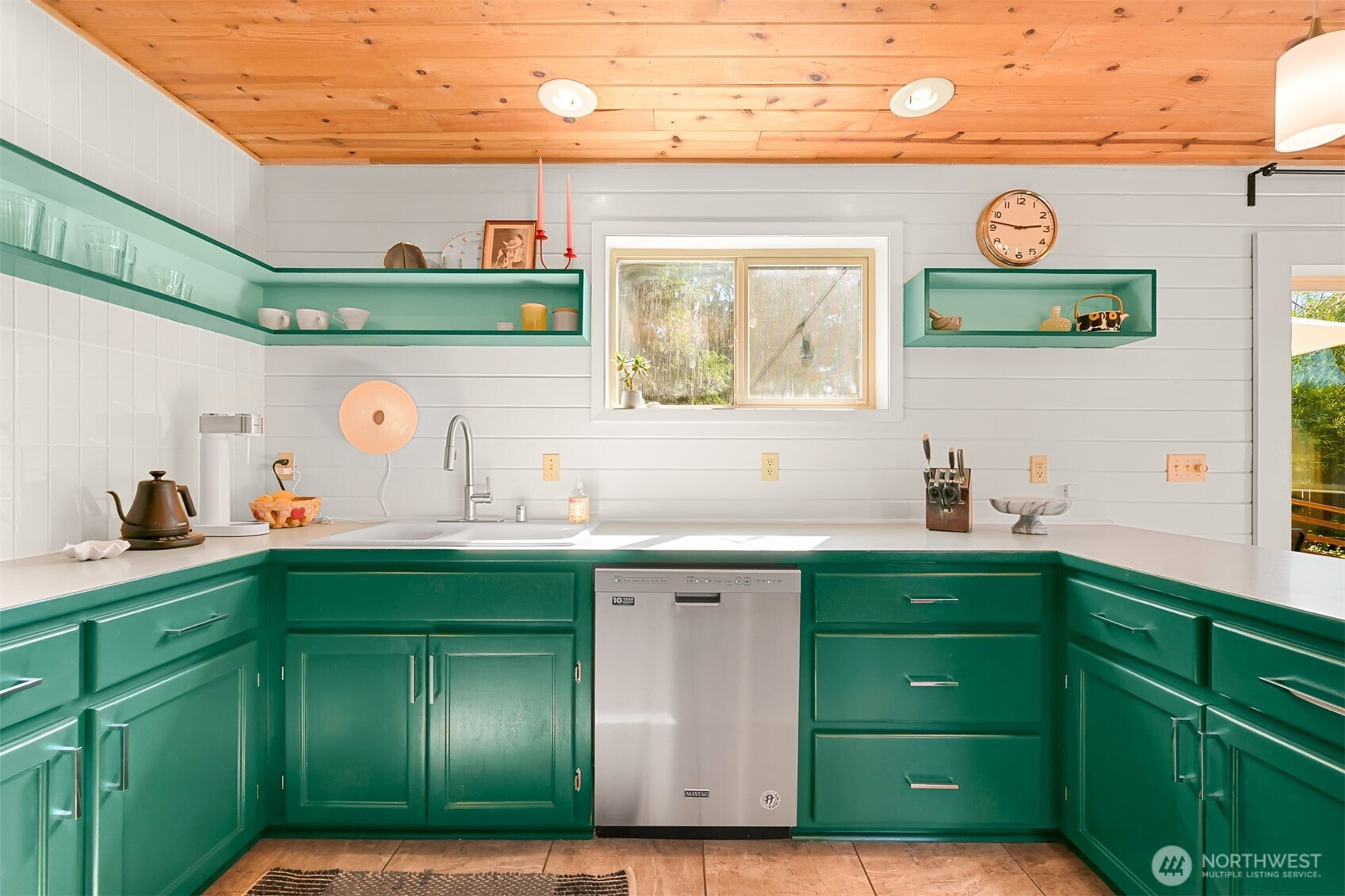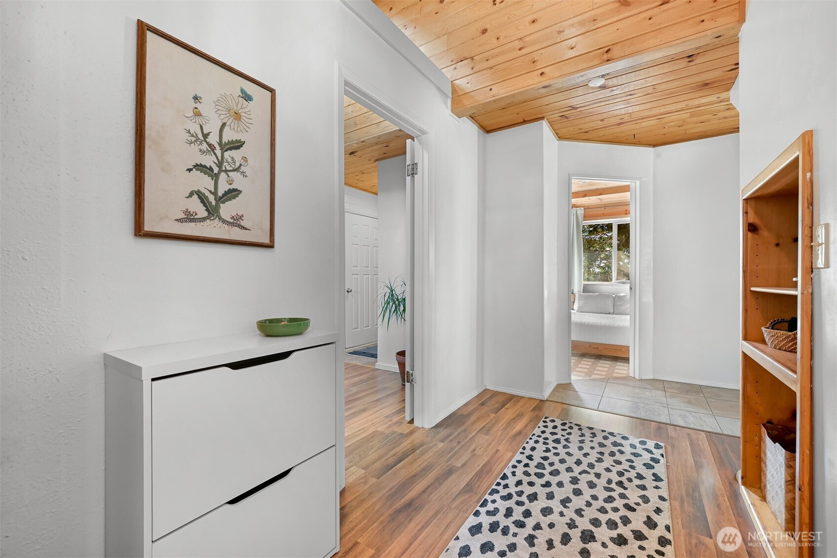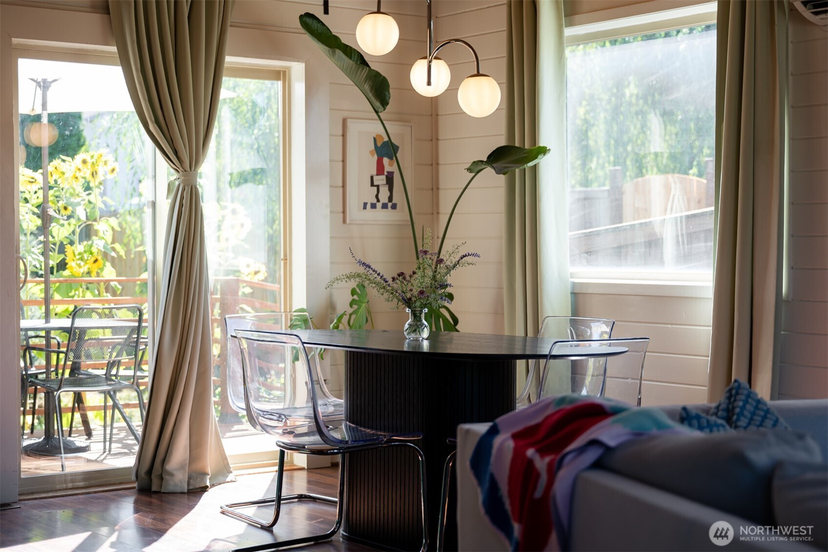 Not your average Ferndale 3-bedroom! This beautiful cedar home has been touched with pointed modernity while retaining every ounce of its warmth and charm. The brightened interior comes alongside the skylights and large windows to fill rooms with natural light. The layout is flexible with two bedrooms up, one down, and extra space in the garage if you need it. Updates galore! High-efficiency furnace, fresh paint, lighting, kitchen and bath improvements, and refinished decks. Outside, the fully fenced yard offers fruit, garden beds, patios, and a greenbelt backdrop for privacy. Set in a gorgeous neighborhood location that weaves around with easily navigable sidewalks. Excellent proximity to schools and parks. It's a must-see!