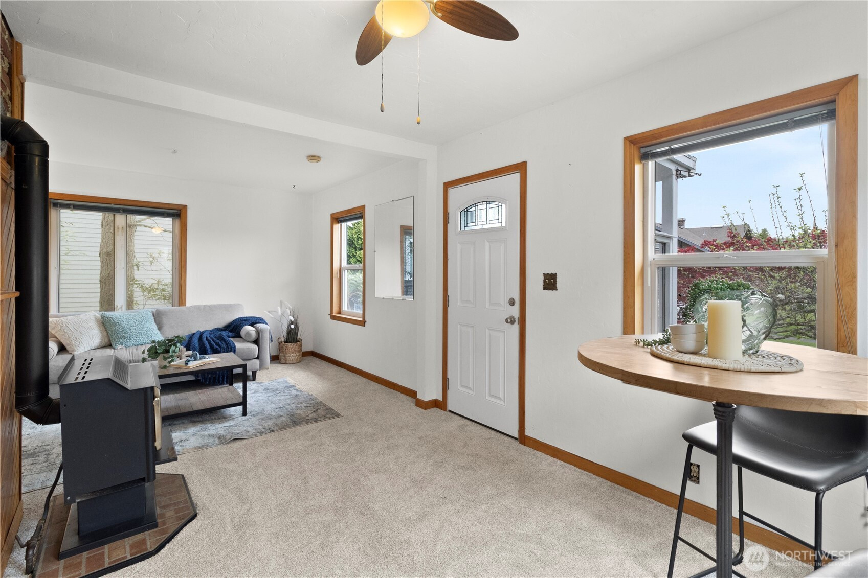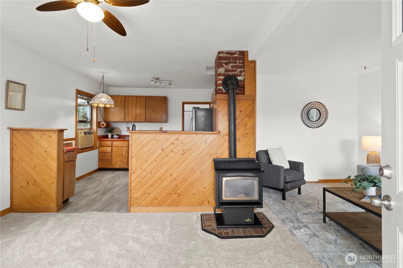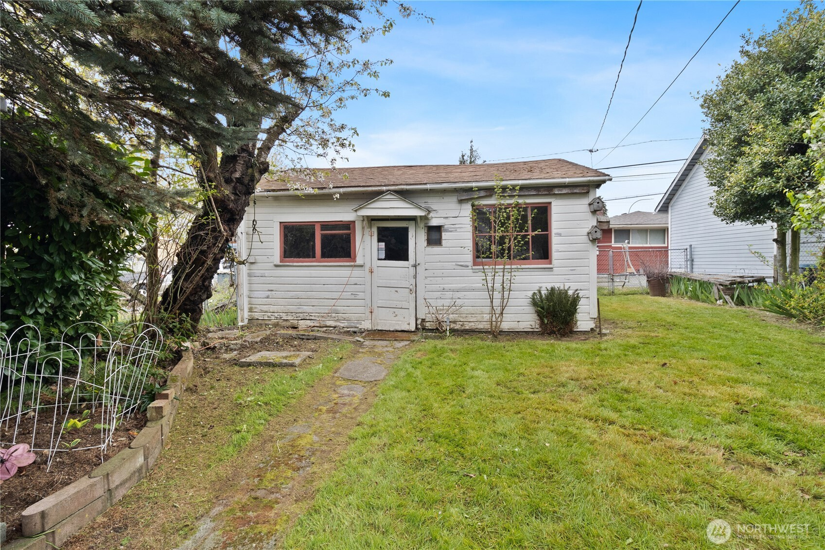 Adorable Sunnyland cottage full of charm, character, and future potential. This well-maintained home features fresh interior paint and new carpet, creating a bright, move-in-ready space. Cozy up in the living room with a warm gas fireplace, while the semi-open concept kitchen adds both charm and functionality. The spacious bedroom includes a walk-in closet, and the updated bathroom features a low-curb shower for easy entry and everyday convenience. An oversized utility room offers excellent additional storage with a large pantry and an exterior door leading to the side yard. Outside, you'll find a nearly new storage shed plus a detached garage offering flexibility to improve, or explore the potential for a DADU (buyer to verify). Alley access adds even more convenience and opportunity. Enjoy an unbeatable location-just a short walk to Trader Joe's, local breweries, restaurants, and nearby parks. This charming cottage has it all!