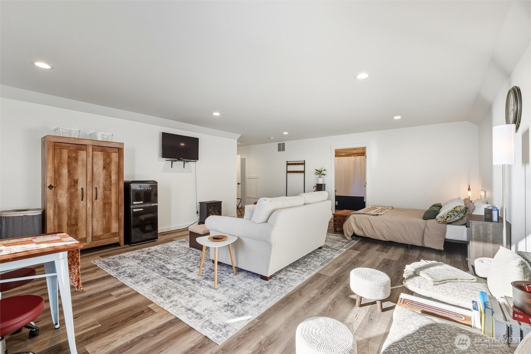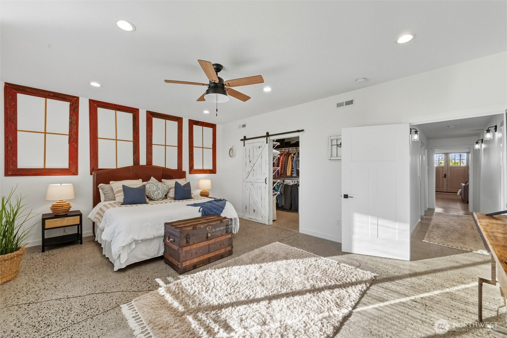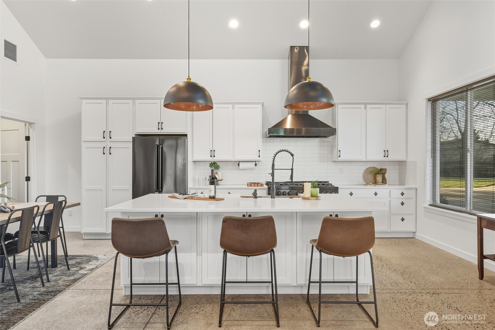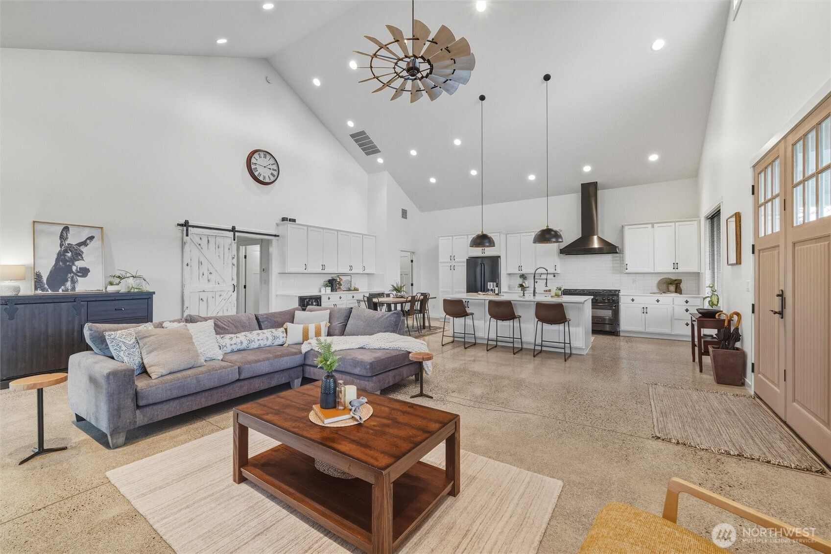 Immaculate, custom built home located on a private, gated 1.19 acres at the end of a small lane of high end homes. You'll love the single level living of high quality craftmanship with attention to detail inside & out! Includes an amazing ADU offering a private entrance & self-contained living, full bathroom with a sauna —perfect for multi-generational living, long-term guests, and is currently income generating as a successful short term vacation rental. One of the best features is the pristine 2004sf heated garage with tall ceilings, drive-thru RV doors, plenty of workshop area, lots of parking, & space for all the toys and hobbies. This home was designed for effortless living, with a sprawling open floorplan, polished concrete floors throughout, generous living spaces, vaulted ceilings, & abundant natural light. A chef's kitchen with high end appliances, walk in pantry, eating bar, dining space, & more. Private primary bedroom with a dreamy spa-like en-suite, walk-in steam shower, dual vanities with copper sinks. The seamless indoor-outdoor flow creates multiple spaces for entertaining guests and everyday enjoyment. The covered wrap around patio has a hot tub, plus a fireplace & tv area, and faces east looking over the big level yard and the stunning mountain views. An exceptional opportunity for many lifestyles, including those looking for a special home to downsize without compromise, create flexible living arrangements, or secure a one-of-a-kind Whatcom County estate.