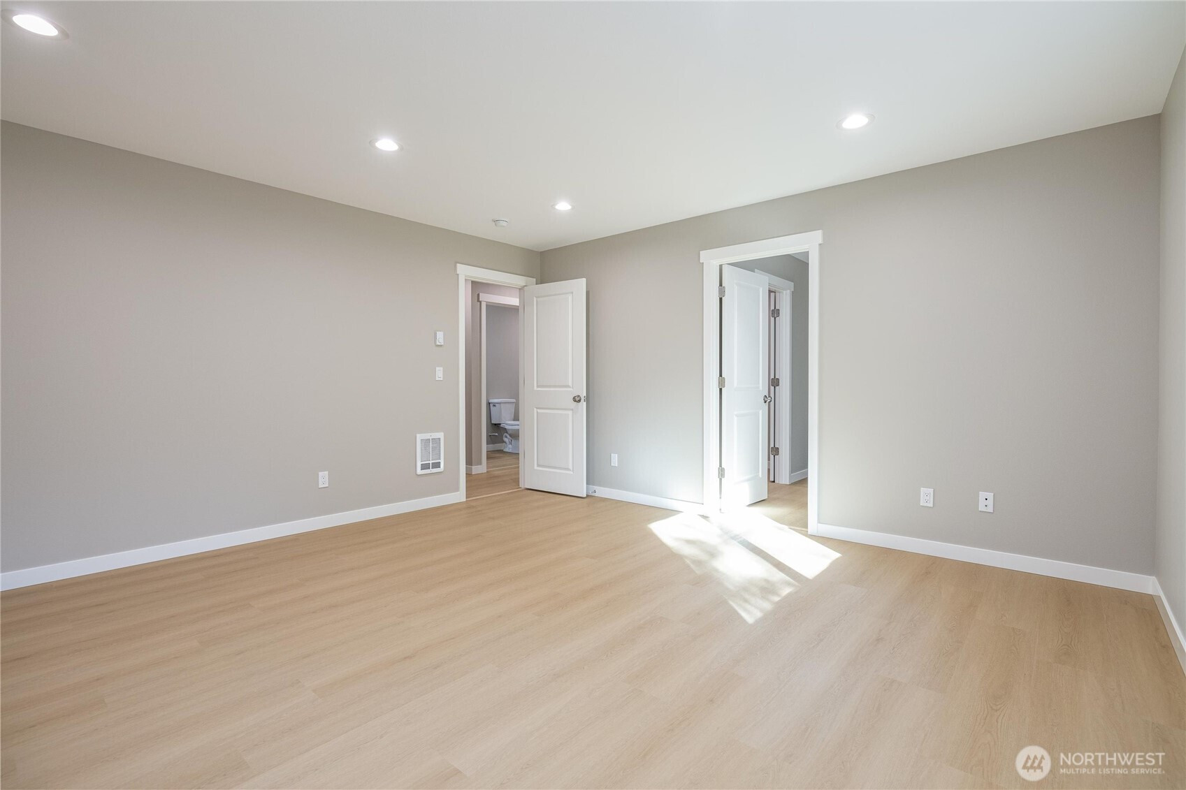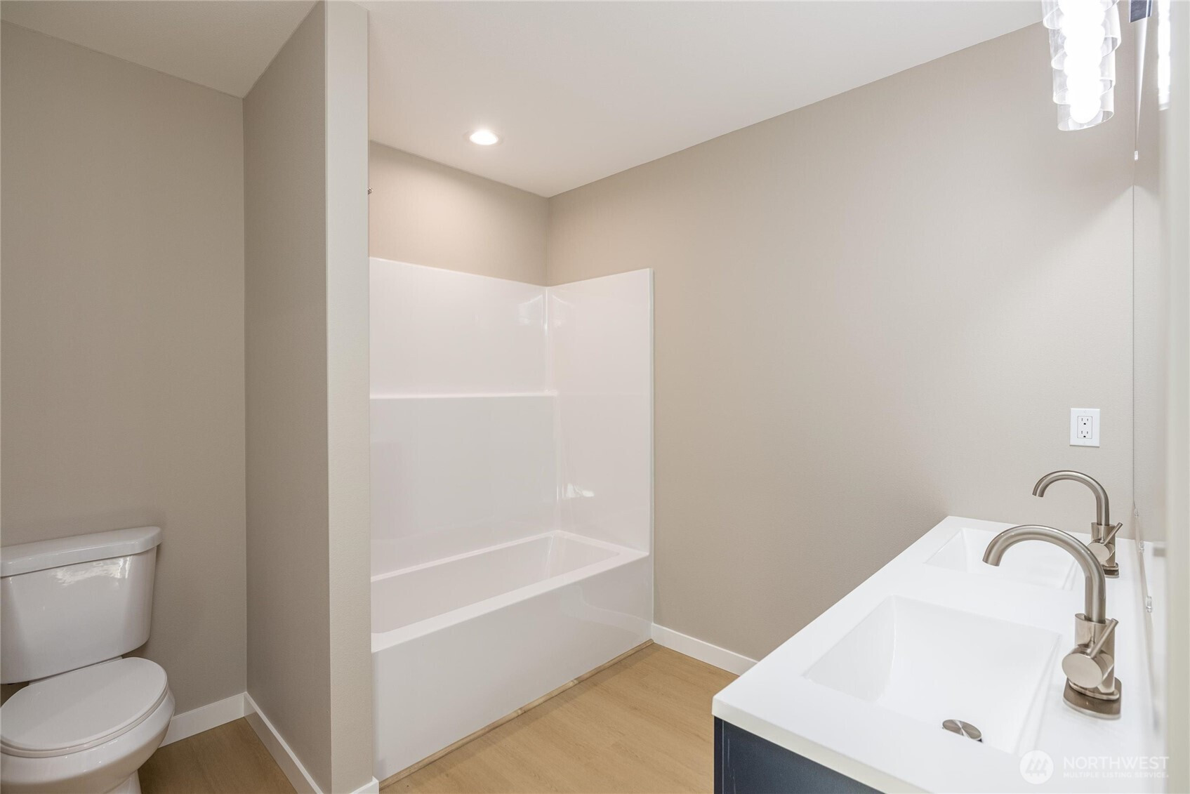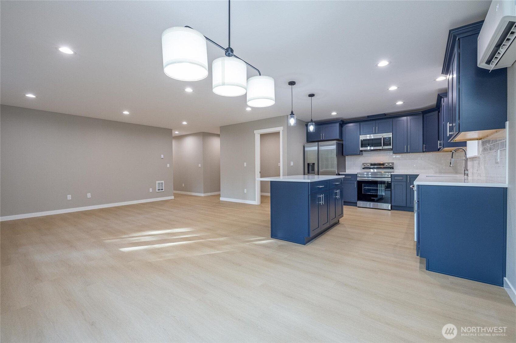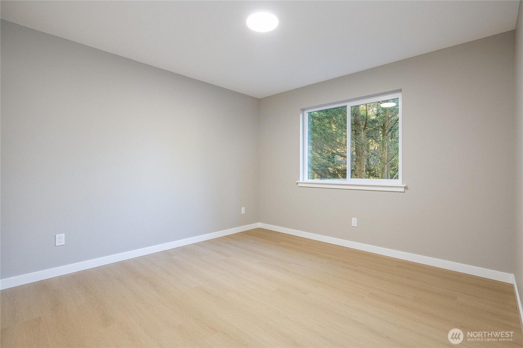 Beautiful, BRAND NEW, 3 bedroom, 2 bathroom quality home. Located at the end of a dead end cul-de-sac, this home sits on a 10,454 square foot lot with stunning trees and backs to a greenbelt. Home boasts luxury vinyl plank flooring throughout, stainless appliances package, quartz counters, dual sinks in primary bathroom and a one head mini-split unit that provides low-cost heating and A/C! Spacious kitchen complete with island, shaker style quality soft close cabinets (in navy blue) & a great covered patio off the dining area. Utility room with W/D hookups right off the double car garage. Only 30-minute drive from Bellingham. One year builder warranty included & garage has plug for electric car charging & home also is wired for generator!