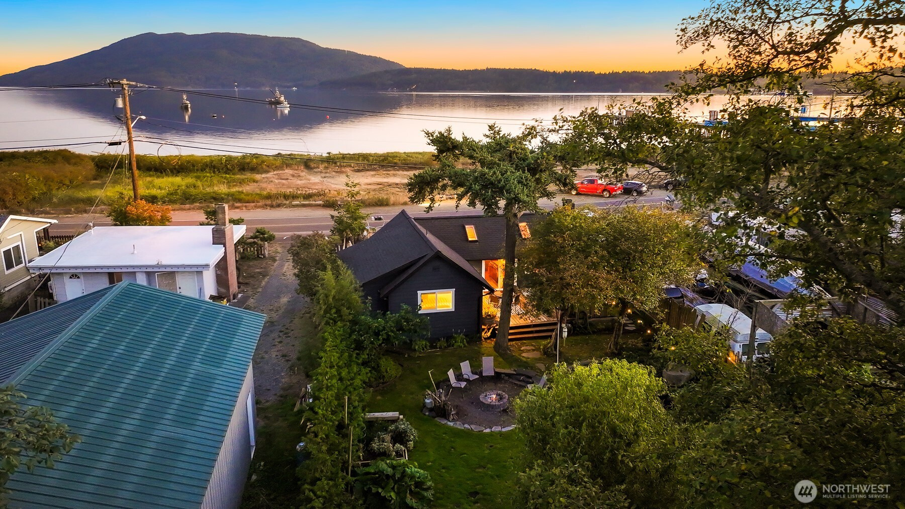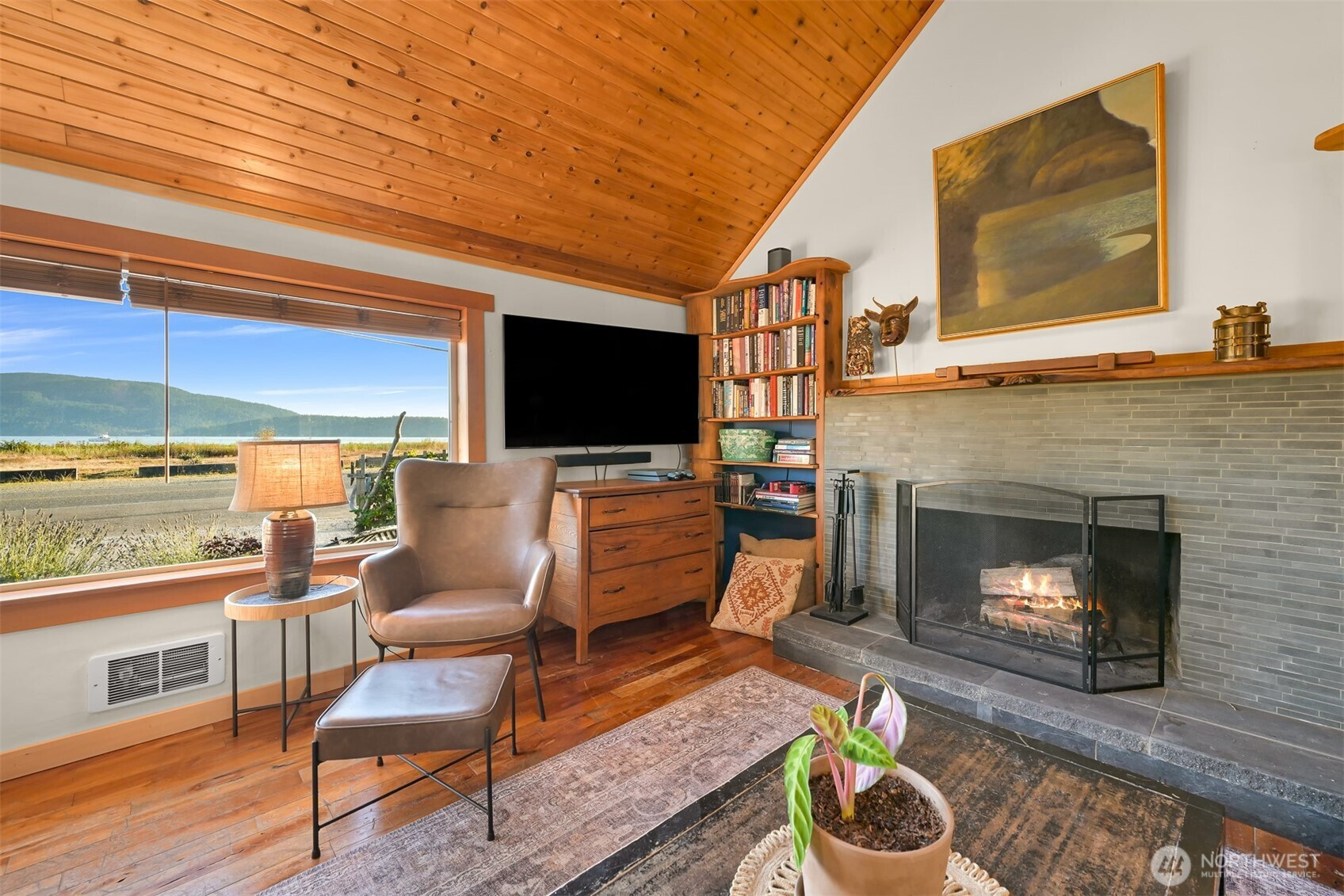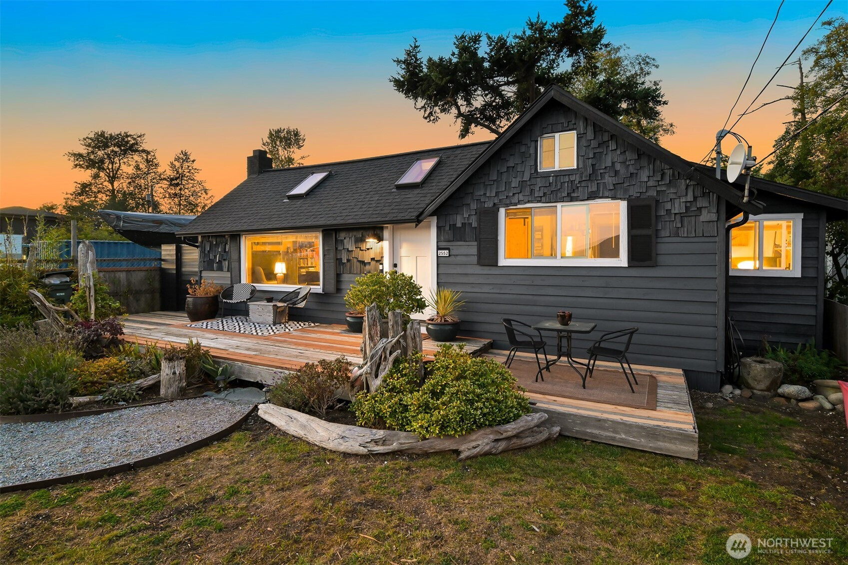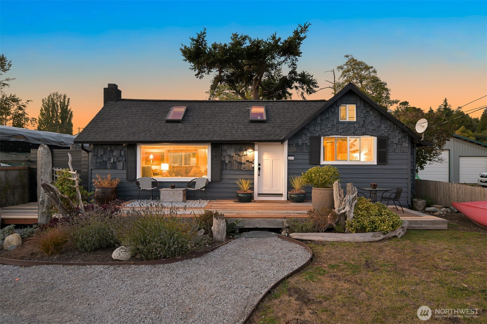 (503) 893-8874Mid-Century beach bungalow on Gooseberry Point showcasing an unobstructed view of Hale Passage and Lummi Island! Fee simple ownership with deeded community beach access near the Lummi ferry dock. The one bedroom + office (or bunk room) home lives larger than stated sqft with its vaulted ceilings and skylights, thoughtful layout, and efficient storage spaces. Timeless character details such as rustic hardwood floors, tongue & groove pine ceiling, exposed trusses, wood-burning fireplace with tile surround, and classic clawfoot tub. Newer roof and paint. The beautifully-landscaped backyard with pond and fire pit provides a private and tranquil oasis.