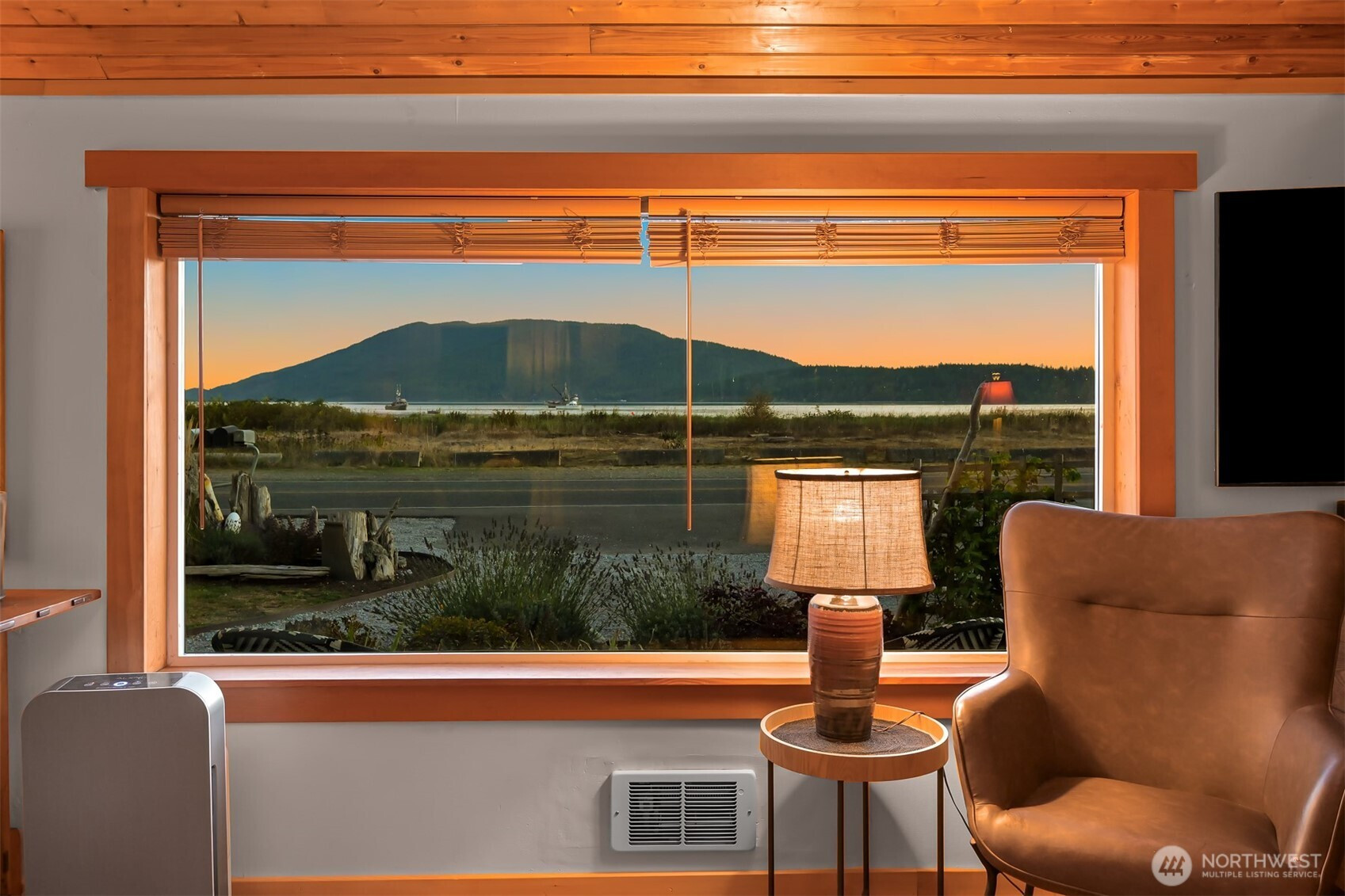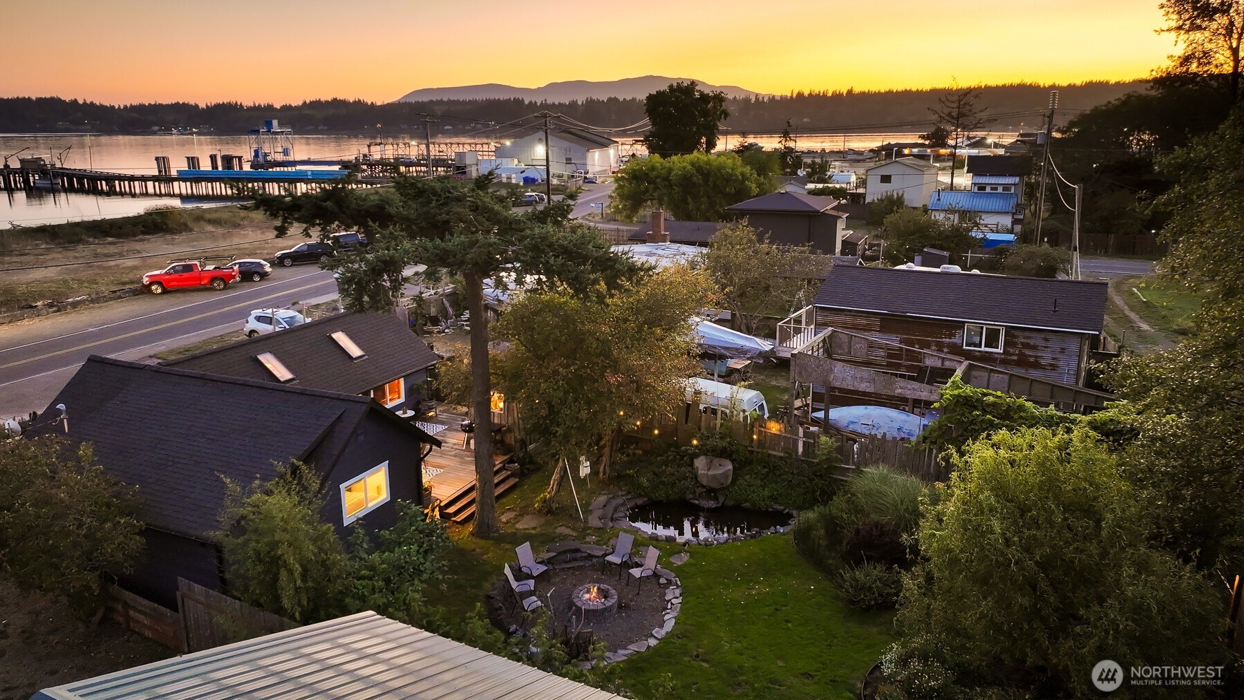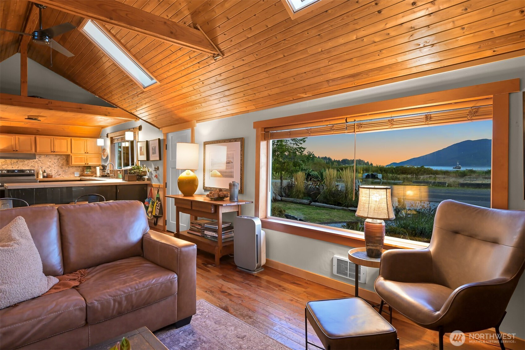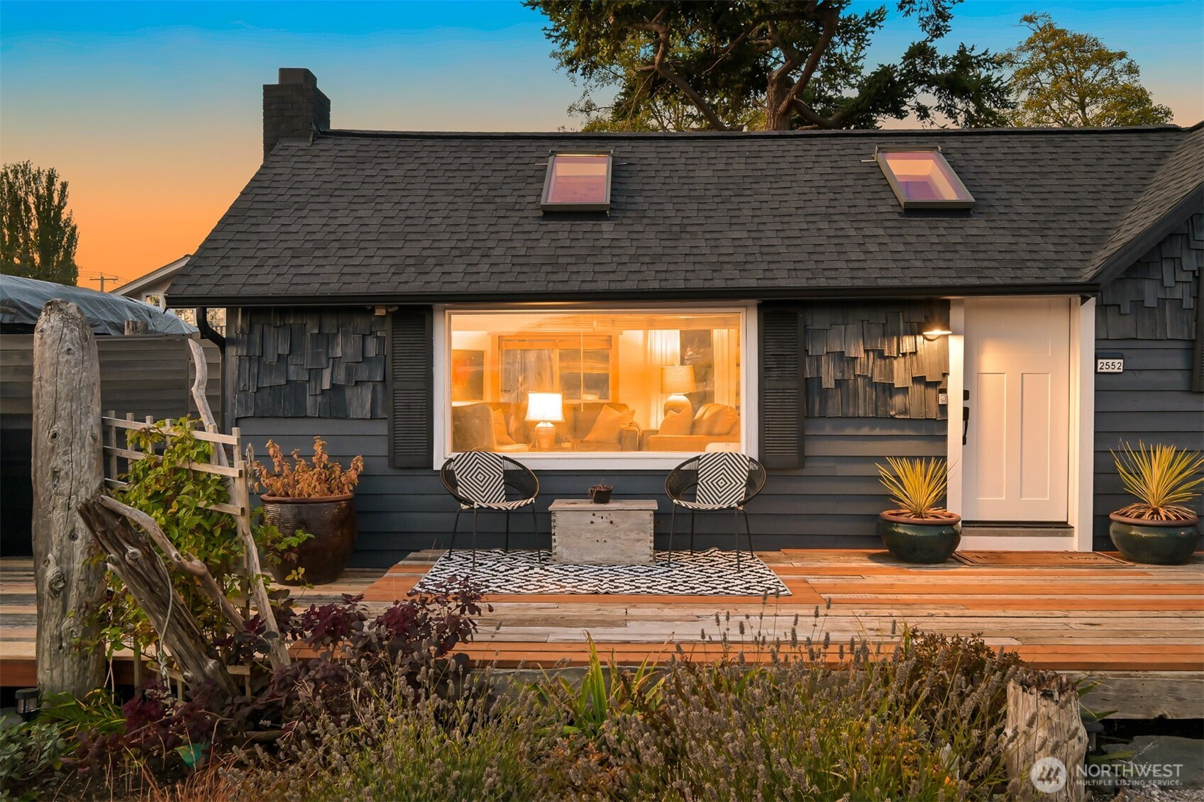 (503) 893-8874Mid-Century beach bungalow on Gooseberry Point showcasing an unobstructed view of Hale Passage and Lummi Island! Fee simple ownership with deeded community beach access near the Lummi ferry dock. The one bedroom + office (or bunk room) home lives larger than stated sqft with its vaulted ceilings and skylights, thoughtful layout, and efficient storage spaces. Timeless character details such as rustic hardwood floors, tongue & groove pine ceiling, exposed trusses, wood-burning fireplace with tile surround, and classic clawfoot tub. Newer roof and paint. The beautifully-landscaped backyard with pond and fire pit provides a private and tranquil oasis.