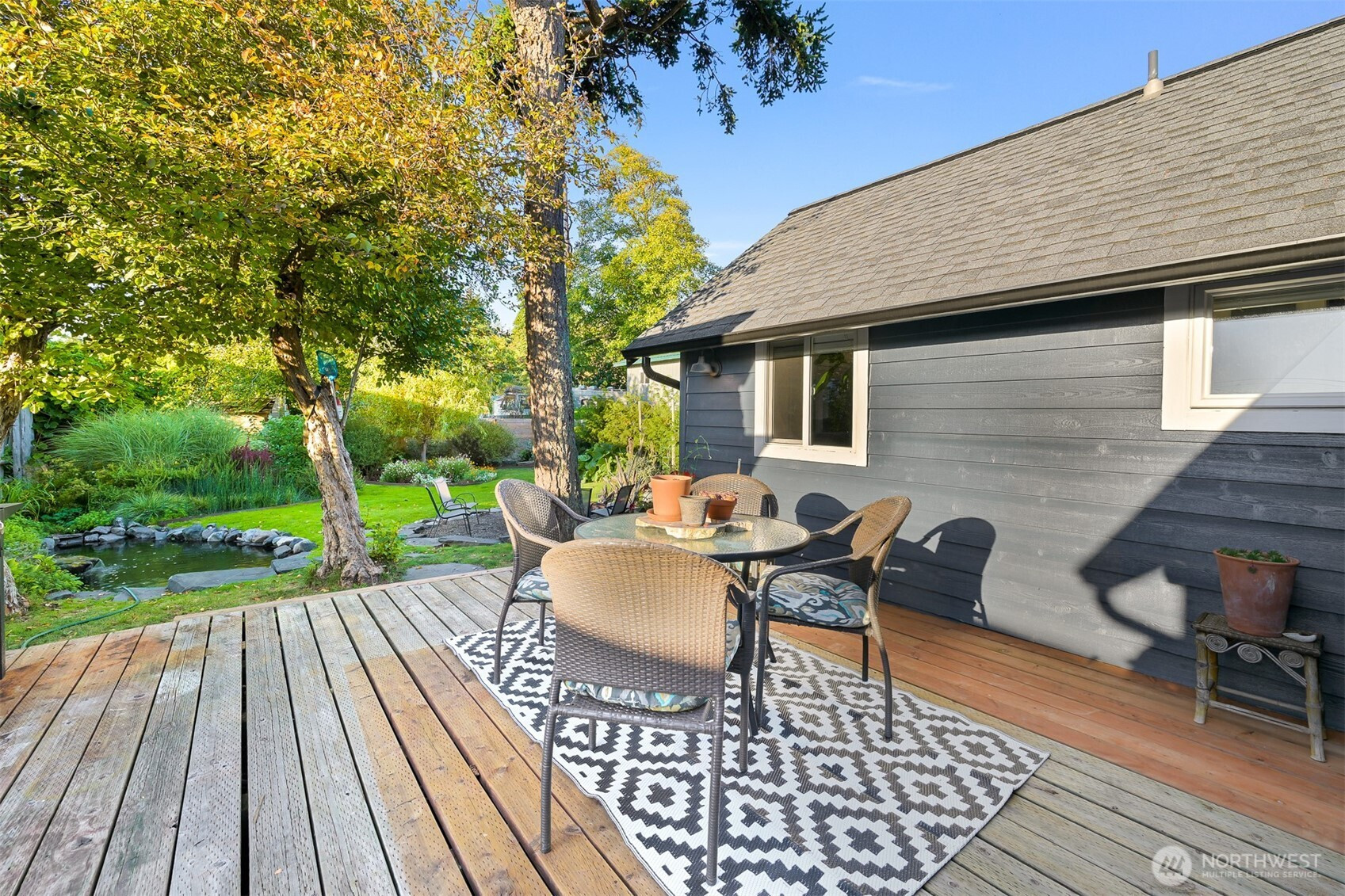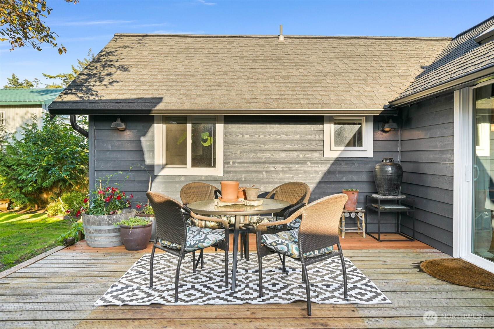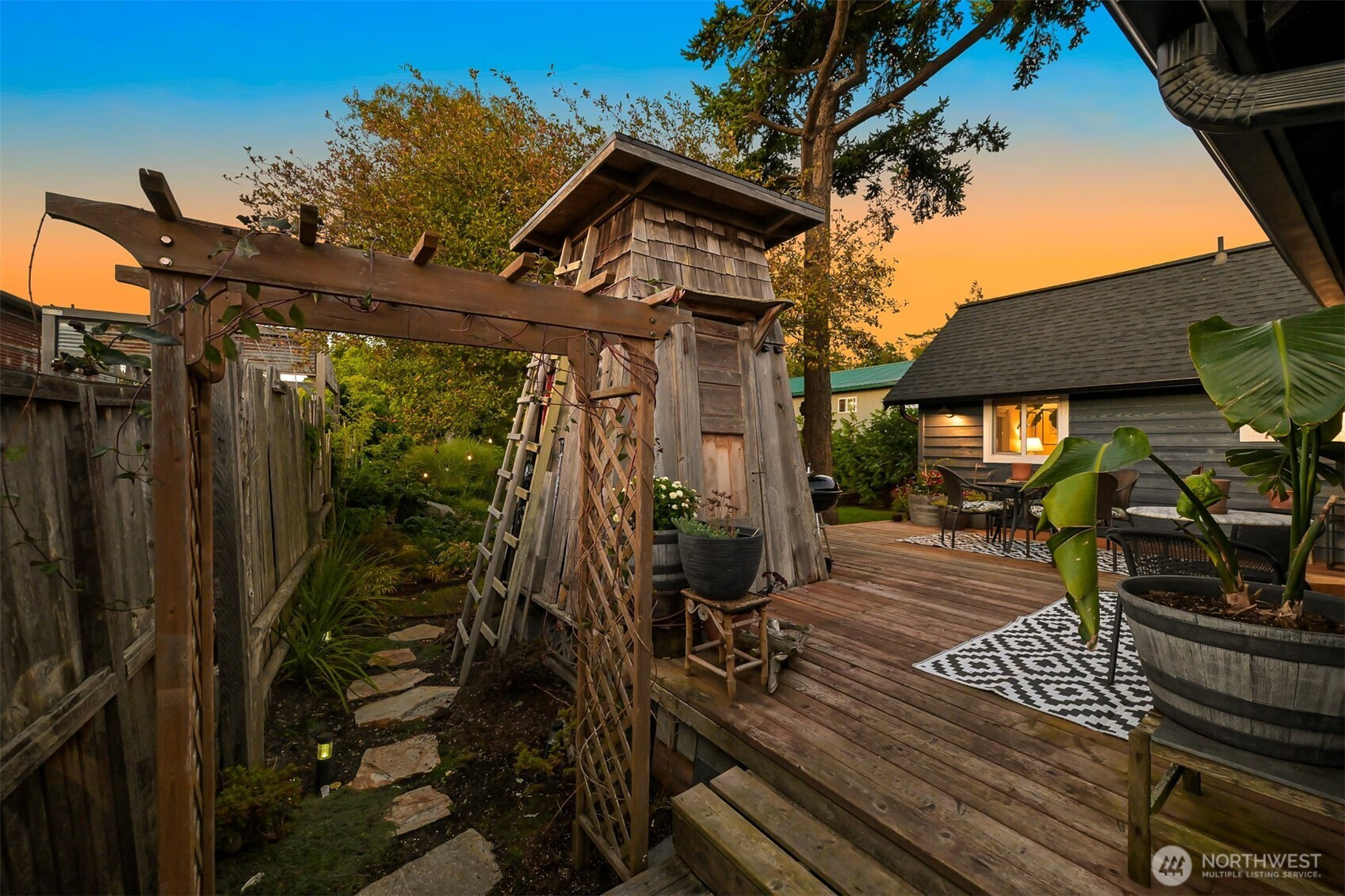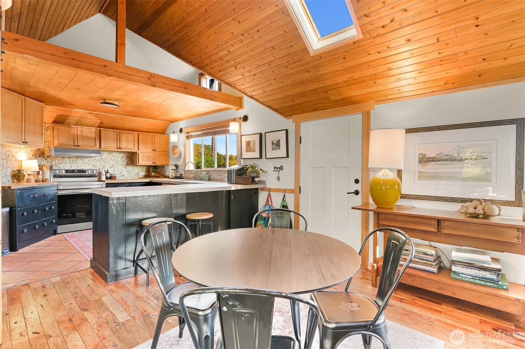 (503) 893-8874Mid-Century beach bungalow on Gooseberry Point showcasing an unobstructed view of Hale Passage and Lummi Island! Fee simple ownership with deeded community beach access near the Lummi ferry dock. The one bedroom + office (or bunk room) home lives larger than stated sqft with its vaulted ceilings and skylights, thoughtful layout, and efficient storage spaces. Timeless character details such as rustic hardwood floors, tongue & groove pine ceiling, exposed trusses, wood-burning fireplace with tile surround, and classic clawfoot tub. Newer roof and paint. The beautifully-landscaped backyard with pond and fire pit provides a private and tranquil oasis.