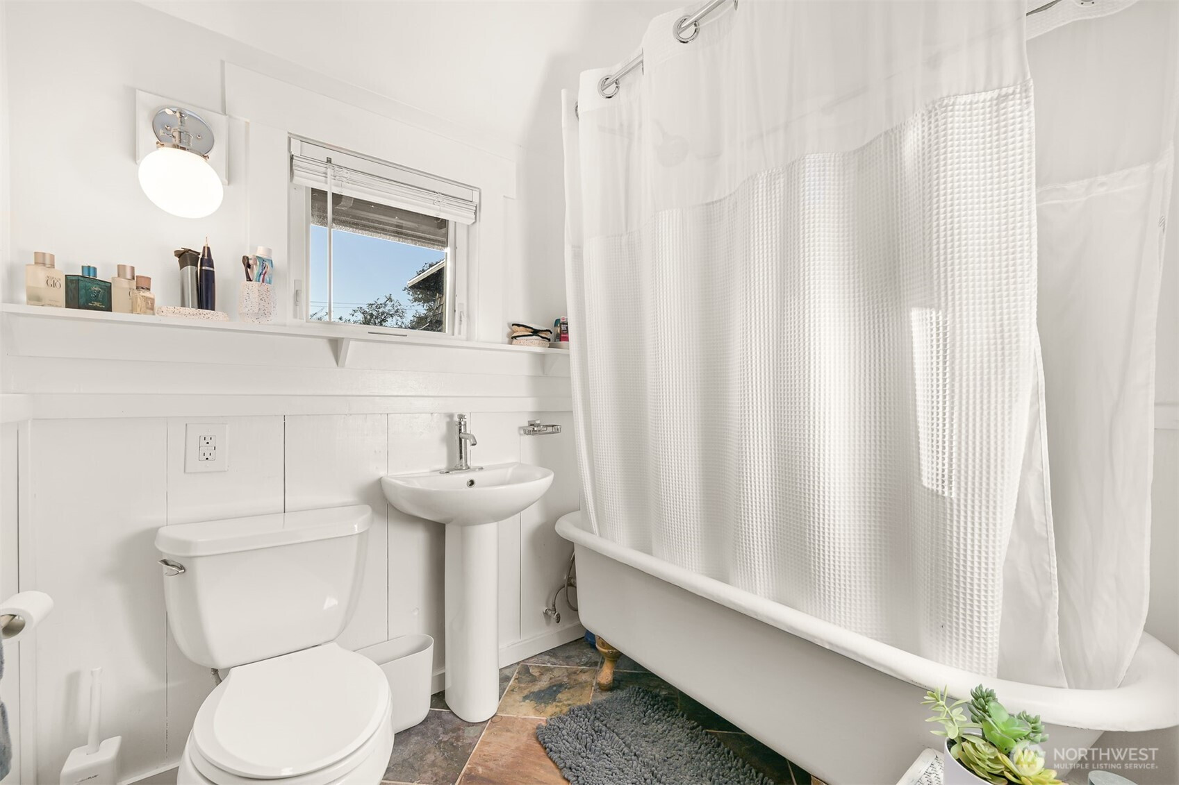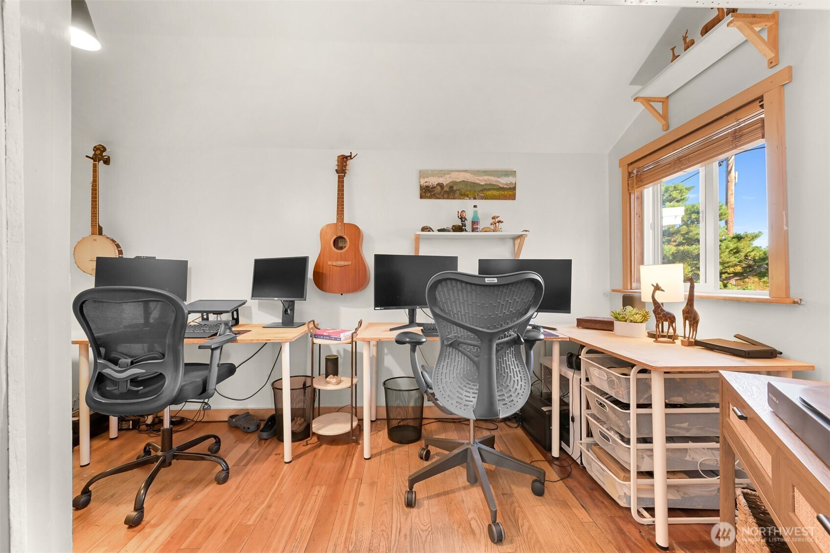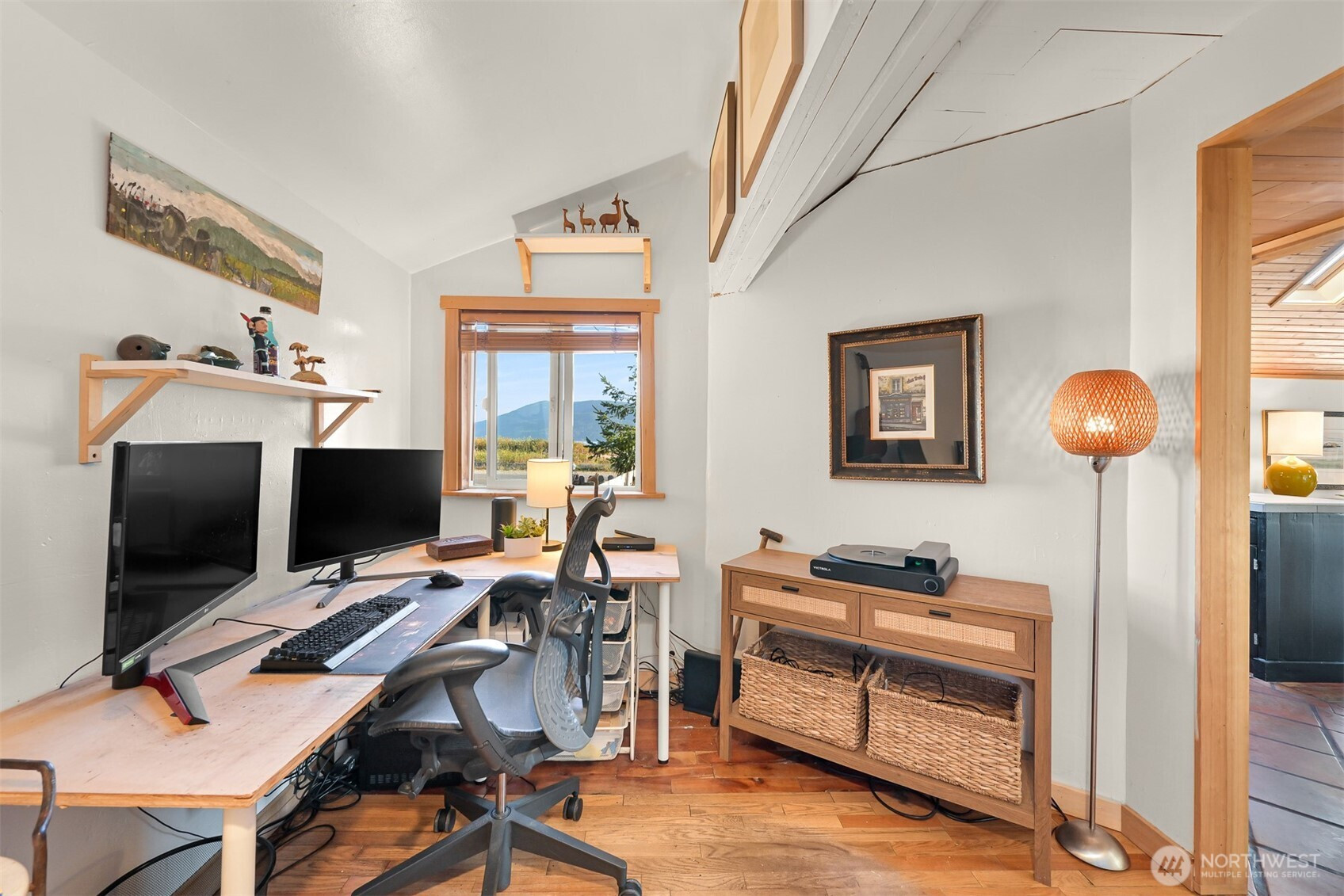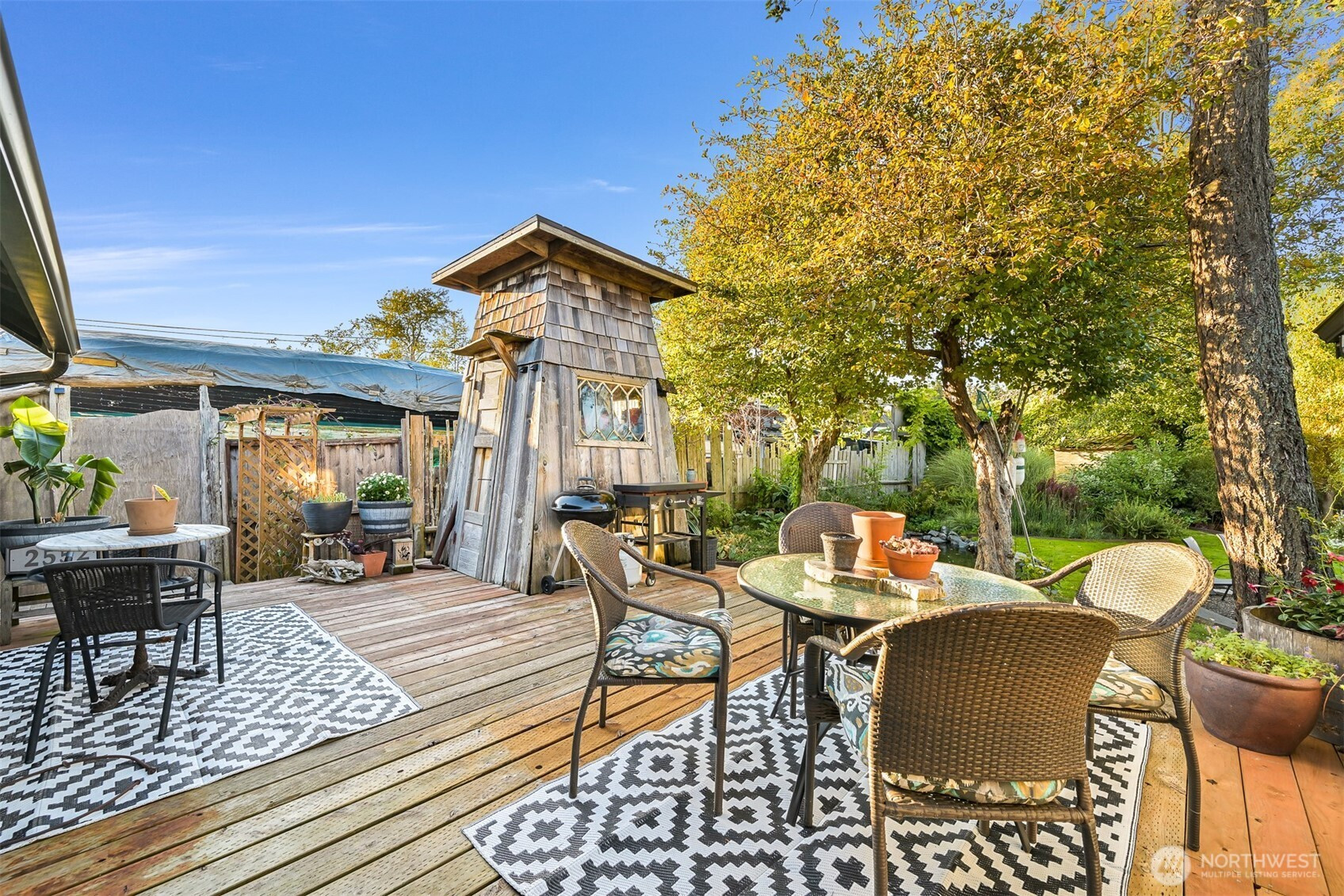 (503) 893-8874Mid-Century beach bungalow on Gooseberry Point showcasing an unobstructed view of Hale Passage and Lummi Island! Fee simple ownership with deeded community beach access near the Lummi ferry dock. The one bedroom + office (or bunk room) home lives larger than stated sqft with its vaulted ceilings and skylights, thoughtful layout, and efficient storage spaces. Timeless character details such as rustic hardwood floors, tongue & groove pine ceiling, exposed trusses, wood-burning fireplace with tile surround, and classic clawfoot tub. Newer roof and paint. The beautifully-landscaped backyard with pond and fire pit provides a private and tranquil oasis.