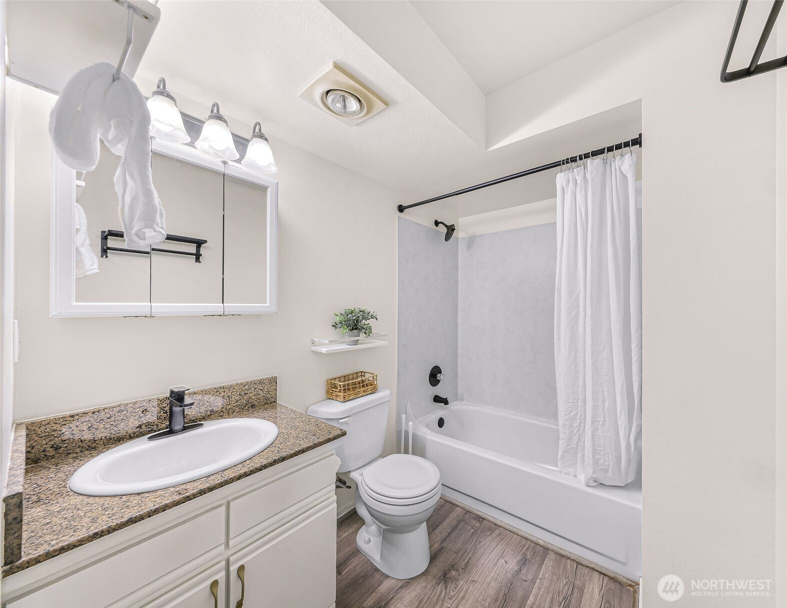 Welcome to this bright 2-bedroom, 1.5-bath top-floor condo in Bellingham’s desirable Birchwood neighborhood! With an open floor plan and a cozy natural gas fireplace, this condo is perfect for entertaining. The primary bedroom features its own half bath, while a spacious second bedroom and full bathroom are just down the hall. HOA dues cover water, sewer, garbage, common area maintenance, and natural gas. Enjoy the outdoors on your private balcony, or explore the many nearby parks and trails. Ideally located within minutes of restaurants, grocery stores, schools, downtown Bellingham, the airport, Bellis Fair Mall, and entertainment.