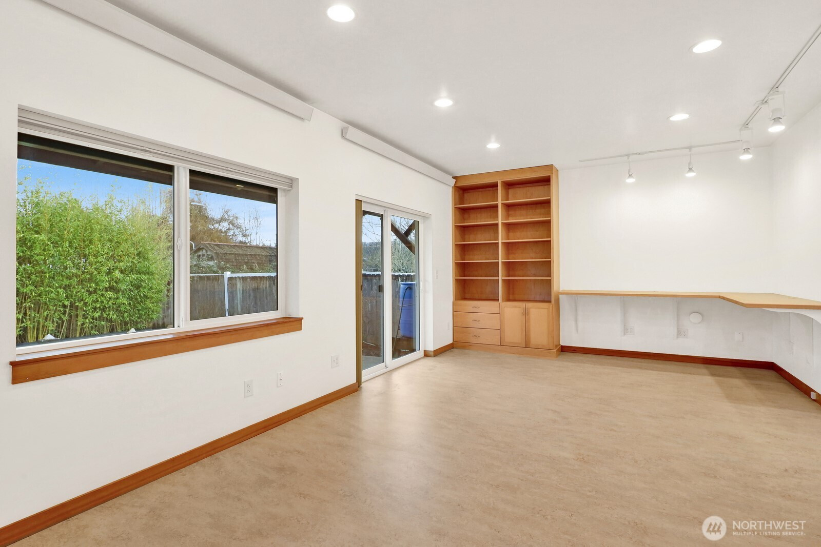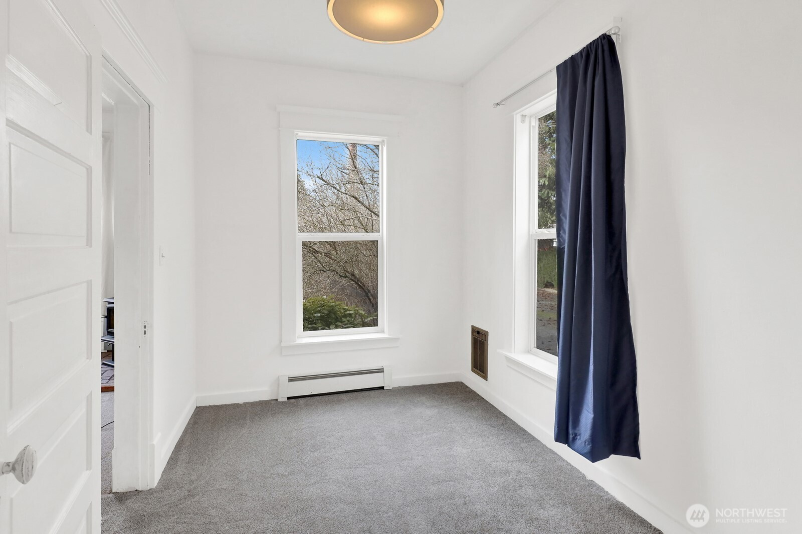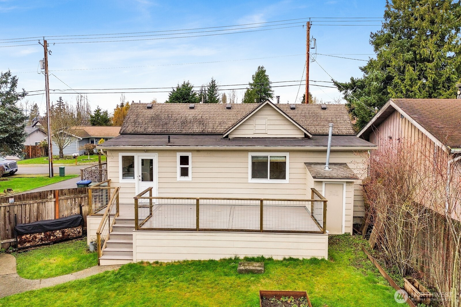 Rare Bellingham property on two legal city lots totaling approximately 10,018 sq ft offering flexibility, privacy, and future potential. The main home features classic charm with updates including a new 290 sq ft Timbertek deck completed in 2024 with eastern views toward Alabama Hill, updated siding, kitchen garden window, blown insulation, and a wood stove. The detached 800 sq ft two-door garage located on the second lot includes approximately 360 sq ft of fully permitted finished studio space with full bath completed in 2012, ideal for a home office, guest area, or creative studio and with potential for future ADU conversion subject to city approval. A 24-panel solar array installed in 2015 is mounted on the garage roof and serves the home to help improve energy efficiency. Major infrastructure improvements include a new sewer line installed in 2024 connecting both the house and garage to the city main. The property offers paved driveway parking for multiple vehicles plus street frontage parking and mature landscaping with apple trees, blueberry bushes, grape vines, greenhouse space, rainwater collection system, and garden areas creating a peaceful setting. Located one block from Roosevelt Elementary and the Railroad Trail with easy access to Sunnyland, Whatcom Falls Park, shopping, restaurants, and Haggen Market. Buyer to verify zoning, development options, and potential ADU conversion with the City of Bellingham.