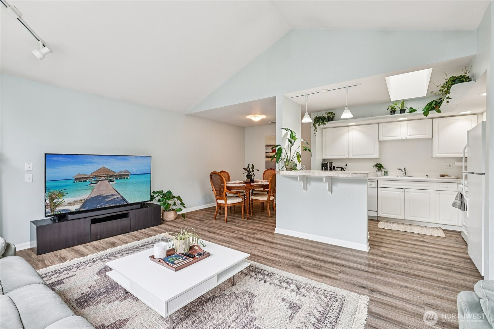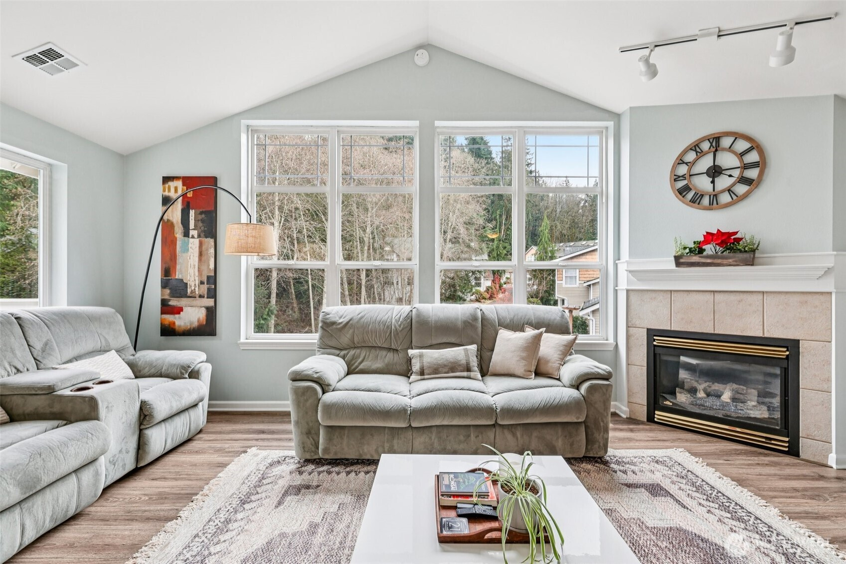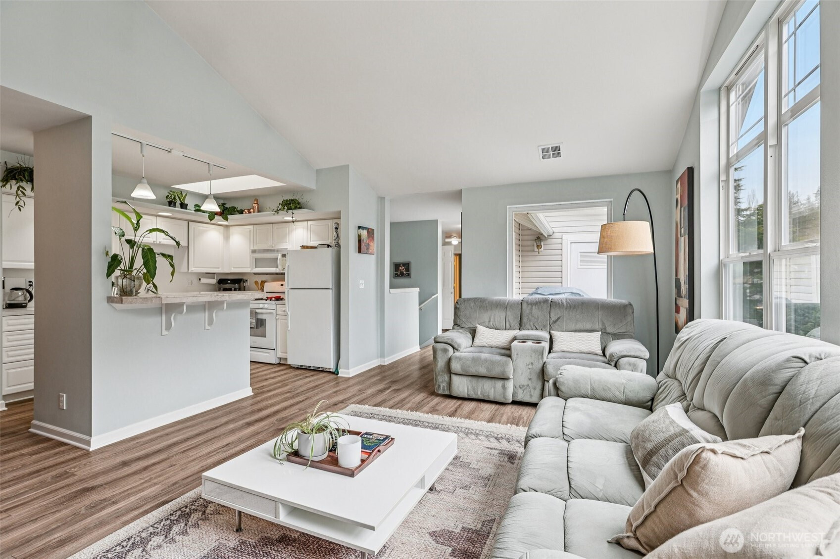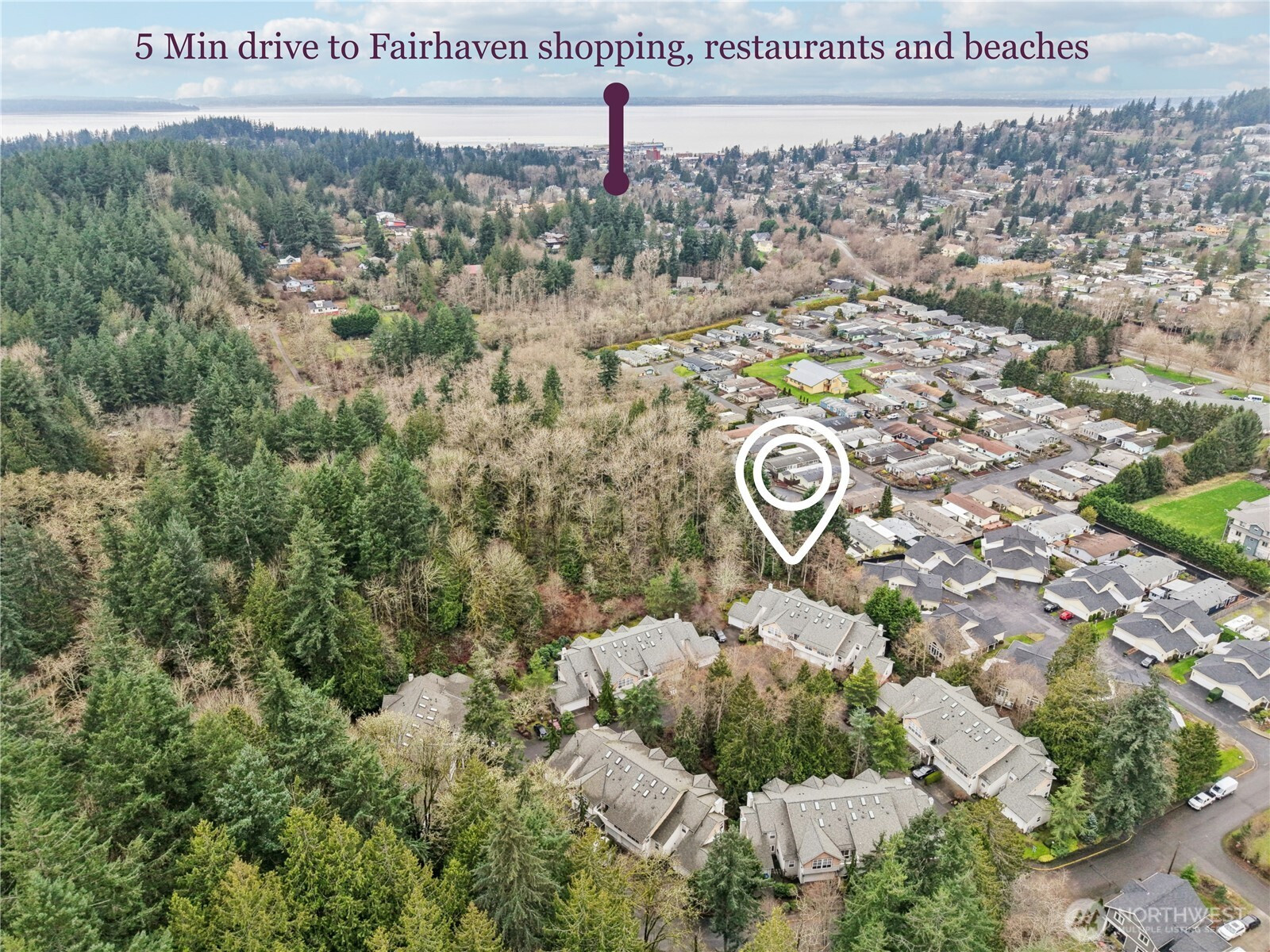 Tucked quietly into the trees yet minutes from the heart of Bellingham, this condo offers a mix of privacy, light, and lifestyle. Surrounded by forest on three sides, it feels peaceful and secluded while remaining close to Fairhaven, coffee shops, and everyday amenities. Private trail access leads to a serene pond which connects directly to the Interurban Trail that stretches toward Chuckanut Mountain—perfect for walking, biking, or hiking. This setting is ideal for anyone who values outdoor access without giving up convenience. Inside, the unit is bright and welcoming. The kitchen, living room, and primary bedroom are filled with natural light and capture winter morning sun. The luxury vinyl plank flooring adds a modern touch and easy maintenance; while no longer allowed by the HOA, these floors are fully grandfathered in, making them a standout feature within the community. Peace of mind is built in as the sale includes a complimentary one-year full home warranty covering all appliances and systems. The well-managed HOA covers water and sewer utilities, and the building’s roof has been recently replaced, reflecting proactive maintenance and care. Private, light-filled, and ideally located, this condo offers a balanced lifestyle close to trails, town, and nature—an exceptional opportunity in one of Bellingham’s most desirable areas.