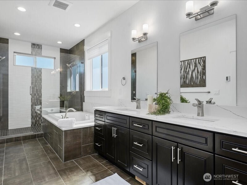 The nicest home in The Meadows, sited on the southwest outcropping of the neighborhood, with magnificent views to Lummi Island, the Olympics and Puget Sound's Salish Sea. Better than new 2018 Rubicon construction with significant upgrades, for an enhanced lifestyle of health, economy, convenience and beauty. With 3 bedrooms and 2 bathrooms, the home has been gently used only on a part-time basis. No pets, no smoking, no binkies nor crayons yet – home is pristine. Designer selections with no expense spared. Bayview birch hand-scraped engineered hardwoods; Bedrosian Chevron backsplash; Venetian metallic brushed porcelain tiles; pebble shower waterfall; imported pendant lights; two full-size, side-by-side refrigerator freezers; top-of-the-line J&K cabinetry package; and more! Forced air heating and cooling with the most complete and effective water filtration system you'll ever drink from! A floor plan for everyone: Rambler with only one step. Walls of south, southwest facing window. Natural light abounds. Hunter Douglas window treatments; 10-foot ceilings; walk-in closet with biometric locking system; Cali closets; walk-in pantry; oversized laundry room. Outside, enjoy a established garden infrastructure of raised beds, edible gardens and vertical growing systems; gas firepit. Ferndale is hot, and this sunny property is an example of why. Nestled into a high-quality community just 10 minutes from Bellingham. Strong Ferndale schools.
