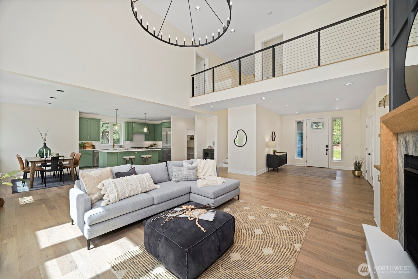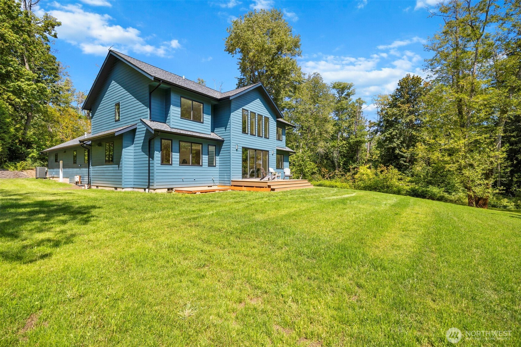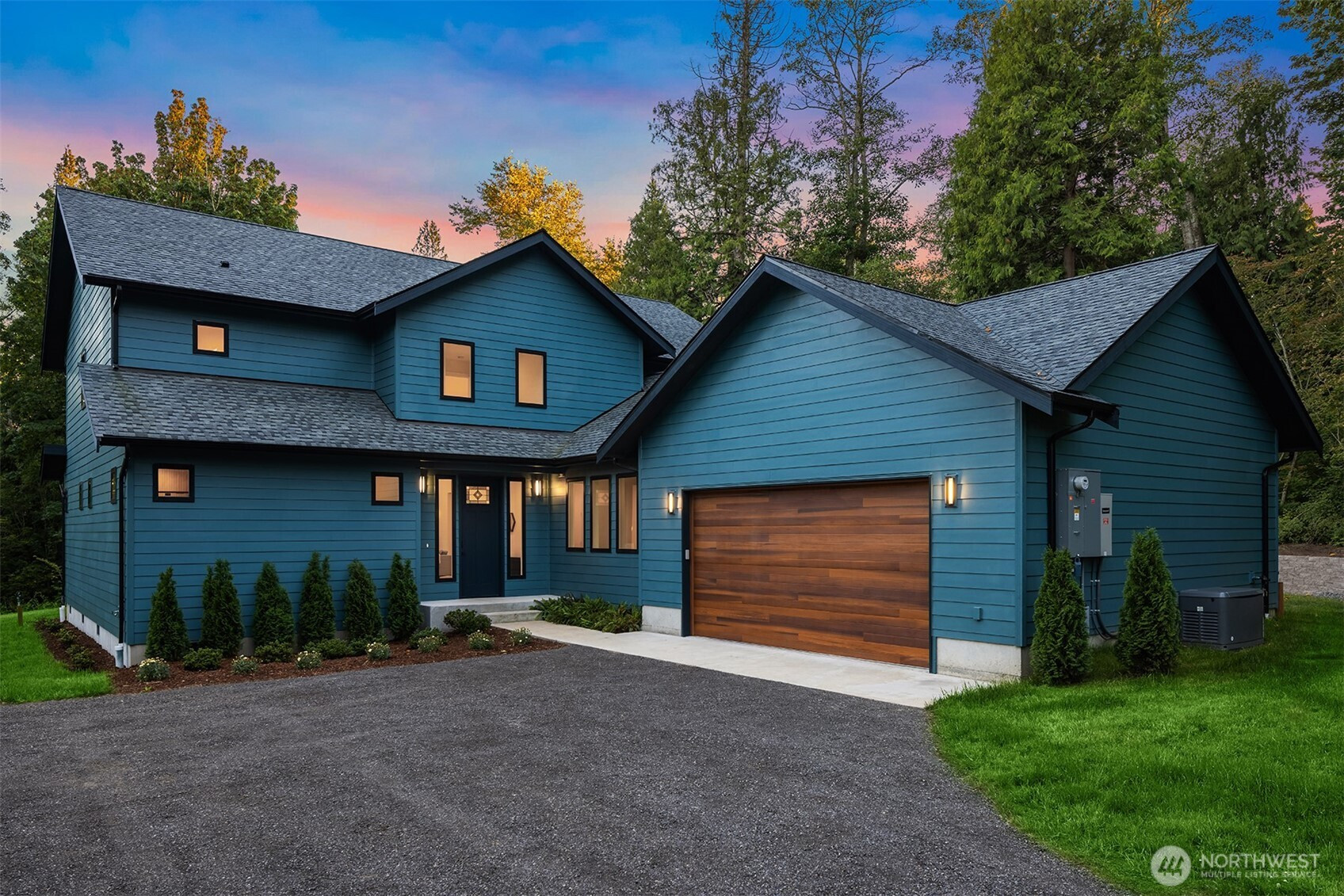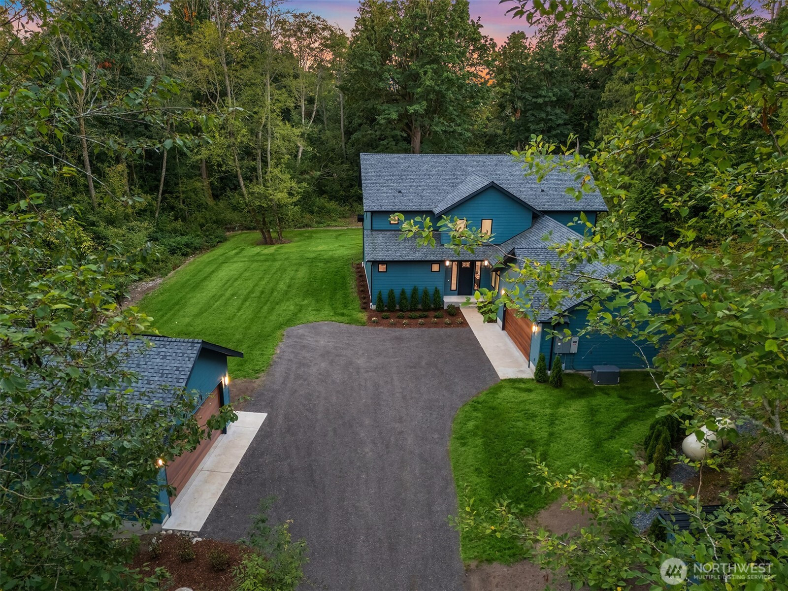 Tucked away on 5.33 private acres, this artisan-crafted custom home offers a rare blend of luxury, functionality, and rural tranquility. Designed for comfort and longevity, it lives like a true forever home. The chef’s kitchen is beautifully appointed with Thermador appliances, walk-in pantry, and wine fridge, while the dramatic great room showcases soaring ceilings and a beautifully handcrafted statement piece fireplace. Versatile layout includes 2 primary suite options with spa-like baths on both the main and upper levels, plus 2 additional guest bedrooms and a dedicated home office. Expansive windows create a true retreat where you’ll enjoy watching nature on peaceful mornings and relaxing into a quiet evening from the back deck. Attached 2-car garage plus detached 2-car garage/shop add flexibility for hobbies, storage, or projects. Thoughtfully equipped with solar panels, auto-on generator, central A/C, EV charging, and PUD water available. A rare offering where timeless design, modern comfort, and elevated living converge.