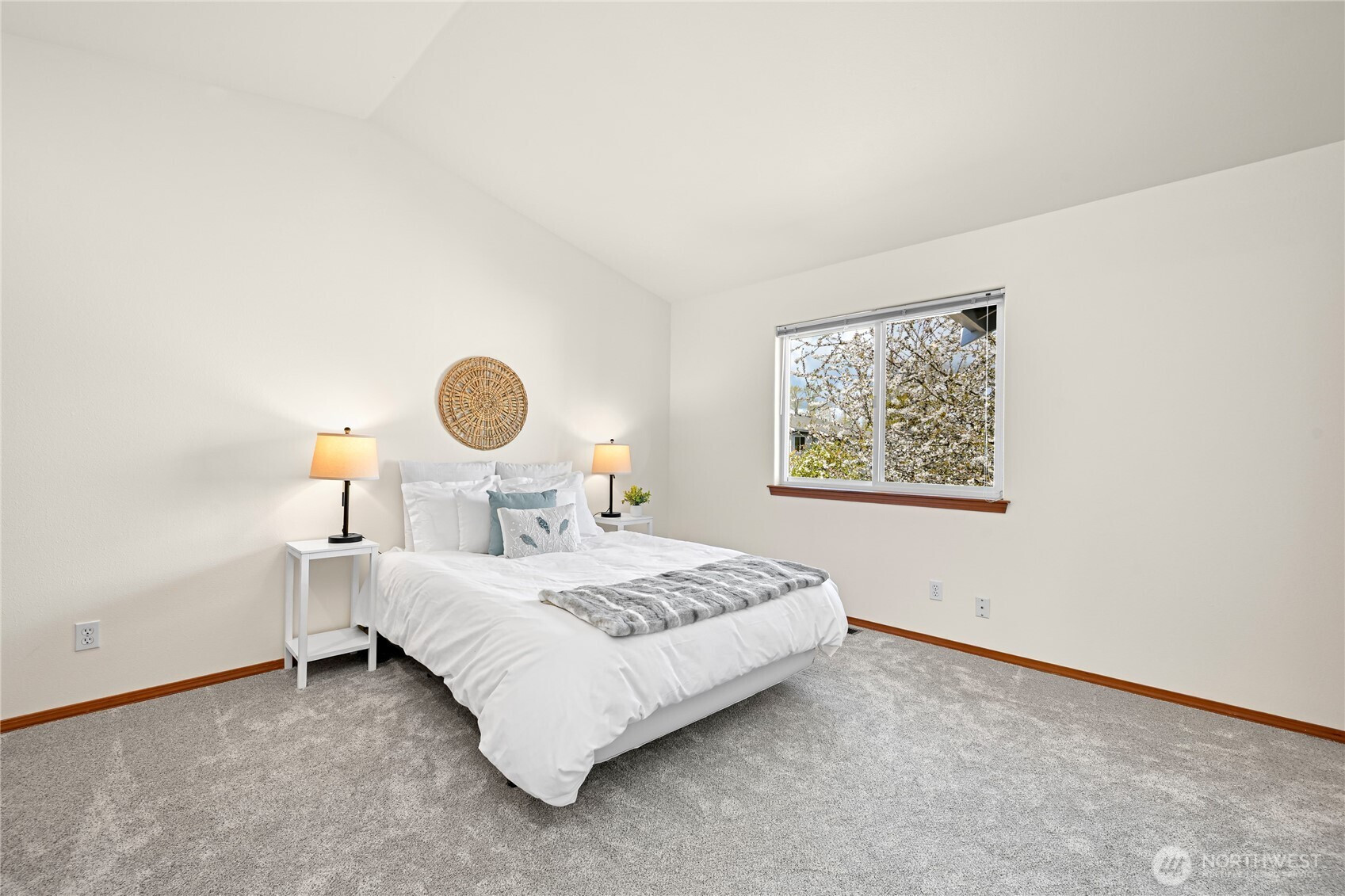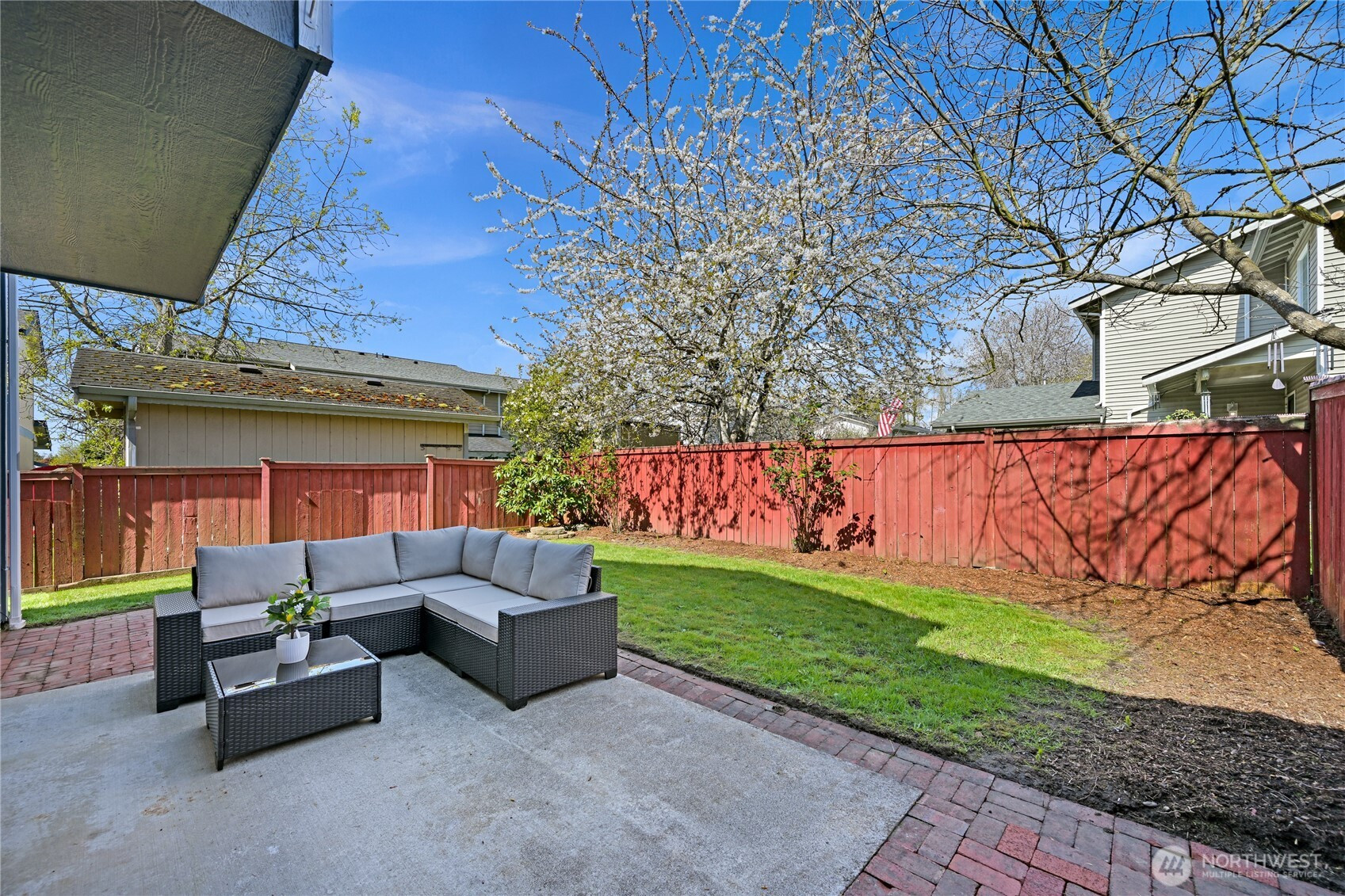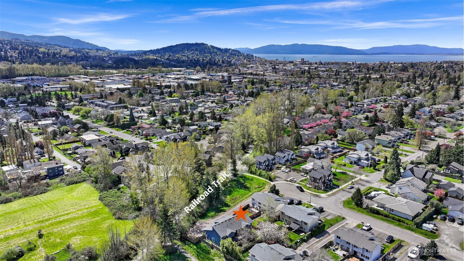 Tucked back from the street and set by the tree-lined railroad trail, this beautifully maintained 3-bedroom, 2.5-bath home offers both privacy and connection to nature. Thoughtful updates throughout include fresh interior and exterior paint, new carpet, and newer appliances. Inside, the vaulted ceilings and skylight bring in an abundance of natural light, enhancing the home’s open feel. Out back, the private setting with a concrete patio and a fully fenced backyard creates a low-maintenance outdoor space that’s usable year-round. Just steps from your front door, the trailhead connects you to an expansive trail system leading to Whatcom Falls, downtown Bellingham, and beyond. Located in the highly sought-after Barkley neighborhood, known for its walkability and convenient access to shopping, dining, and daily amenities. A rare blend of seclusion and accessibility.