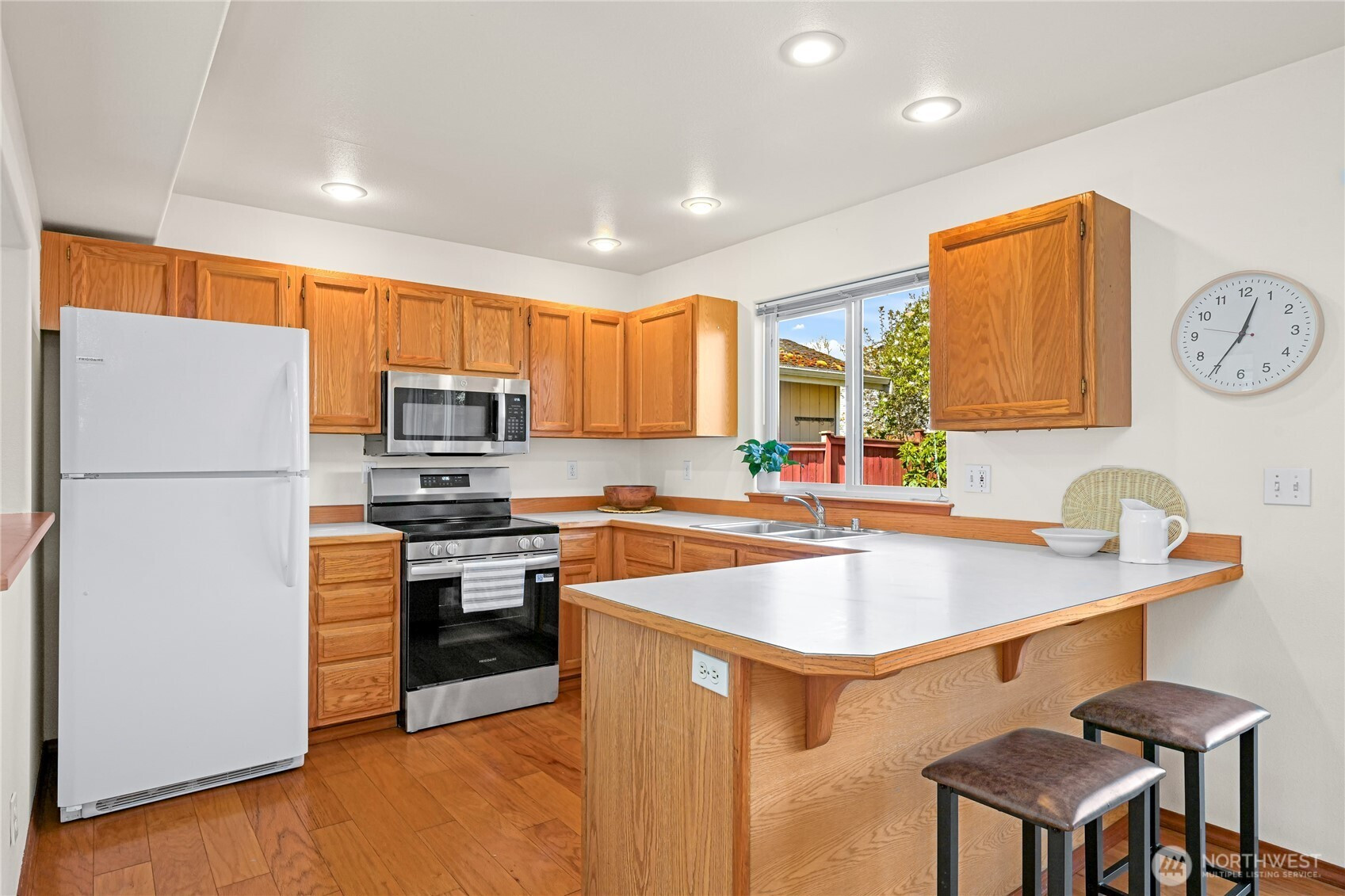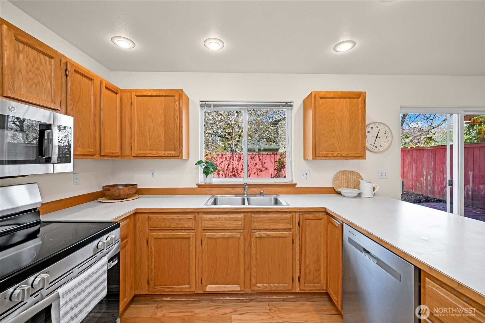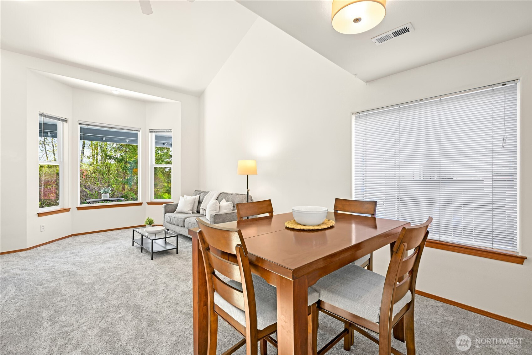 Tucked back from the street and set by the tree-lined railroad trail, this beautifully maintained 3-bedroom, 2.5-bath home offers both privacy and connection to nature. Thoughtful updates throughout include fresh interior and exterior paint, new carpet, and newer appliances. Inside, the vaulted ceilings and skylight bring in an abundance of natural light, enhancing the home’s open feel. Out back, the private setting with a concrete patio and a fully fenced backyard creates a low-maintenance outdoor space that’s usable year-round. Just steps from your front door, the trailhead connects you to an expansive trail system leading to Whatcom Falls, downtown Bellingham, and beyond. Located in the highly sought-after Barkley neighborhood, known for its walkability and convenient access to shopping, dining, and daily amenities. A rare blend of seclusion and accessibility.