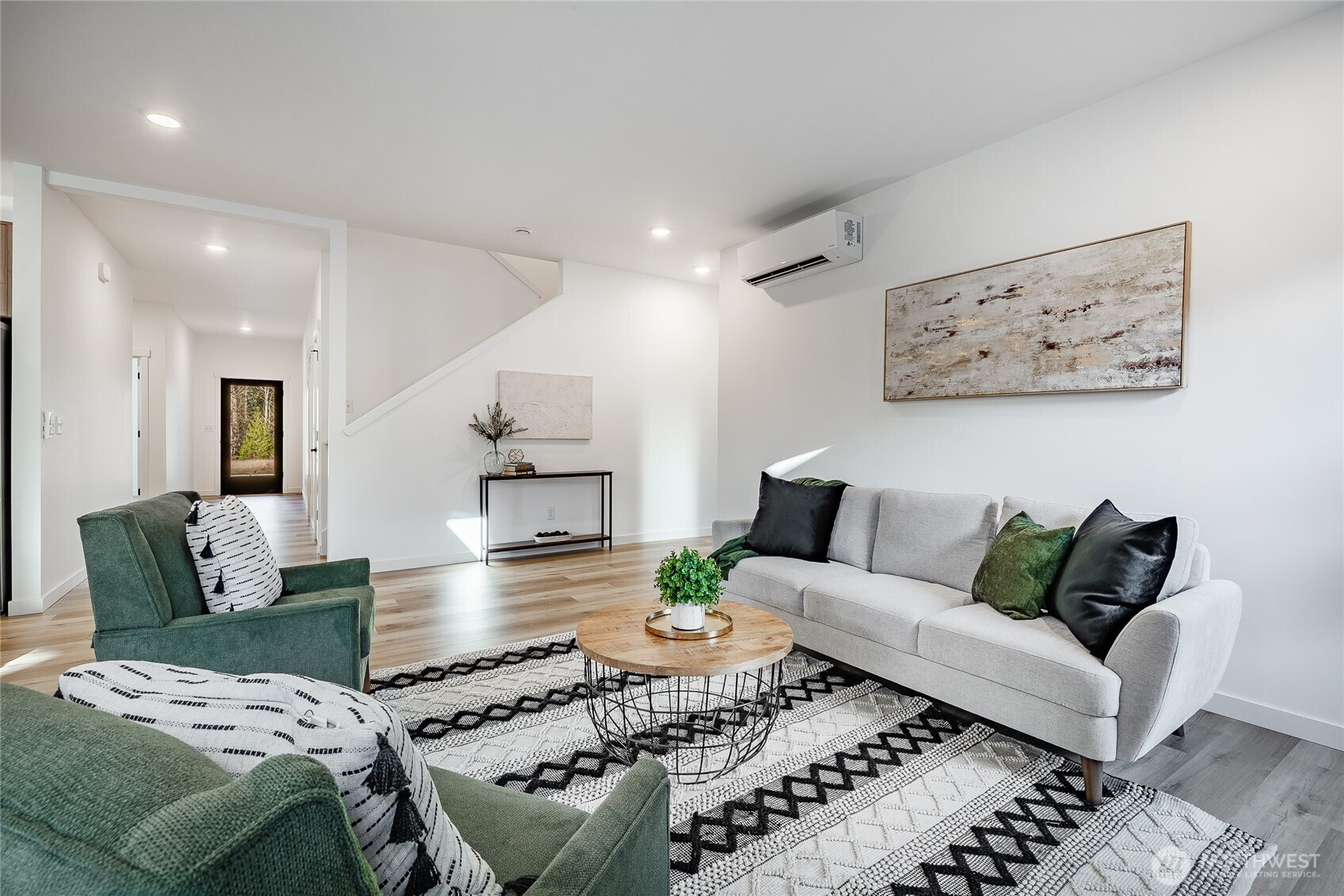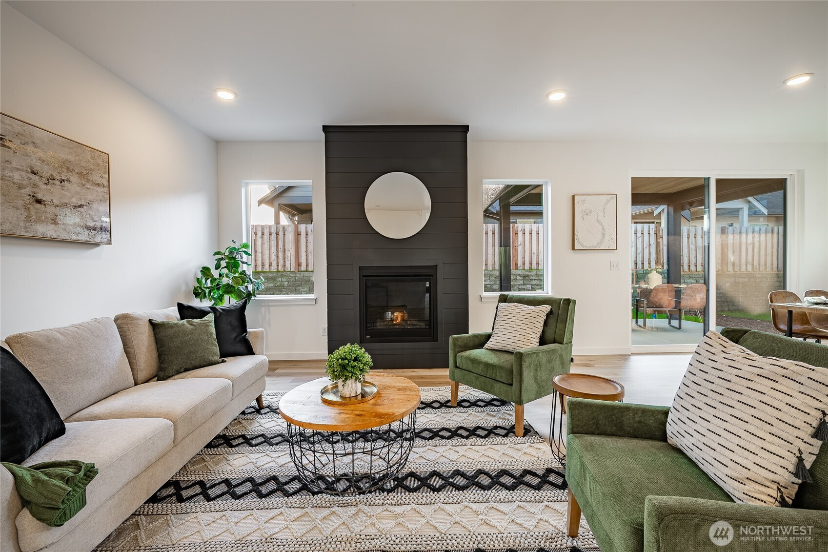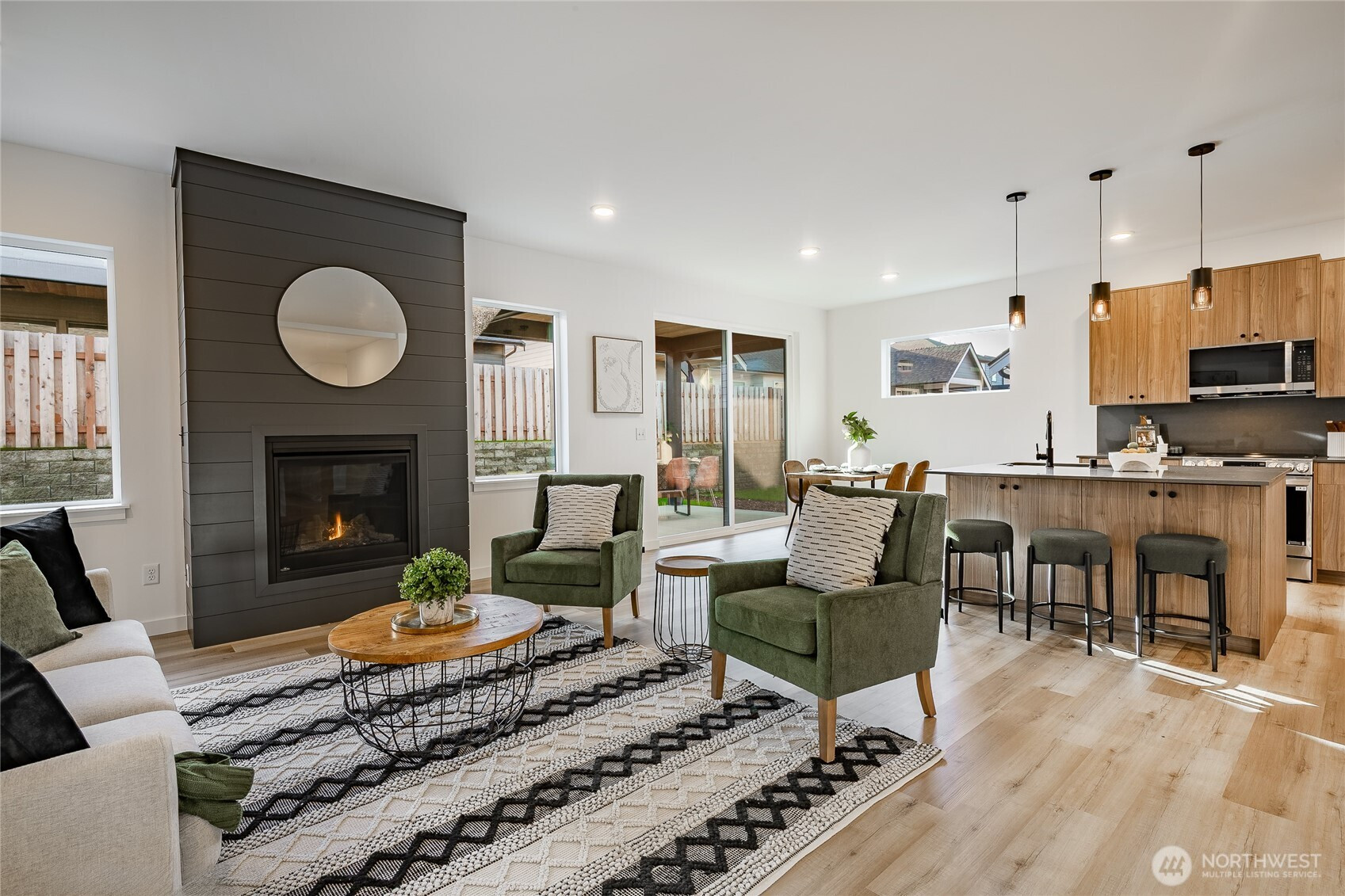 Thoughtfully designed for modern living, this 4-bedroom home blends style, function, and low-maintenance ease. The open main level features LVP flooring and a cozy propane fireplace. The kitchen is finished with sleek flat-panel cabinetry, charcoal quartz countertops, and upgraded appliances. Upstairs, bedrooms and a spacious bonus room offer flexibility for work, guests, or entertainment. Enjoy indoor-outdoor living with a covered back patio. EV charger in the garage. Built on a slab-on-grade foundation with quality finishes throughout, this conveniently located home is situated minutes from downtown Blaine, I-5, and the Canadian border. Preferred Lender Savings include a 1% lender credit plus a $5,000 seller credit.