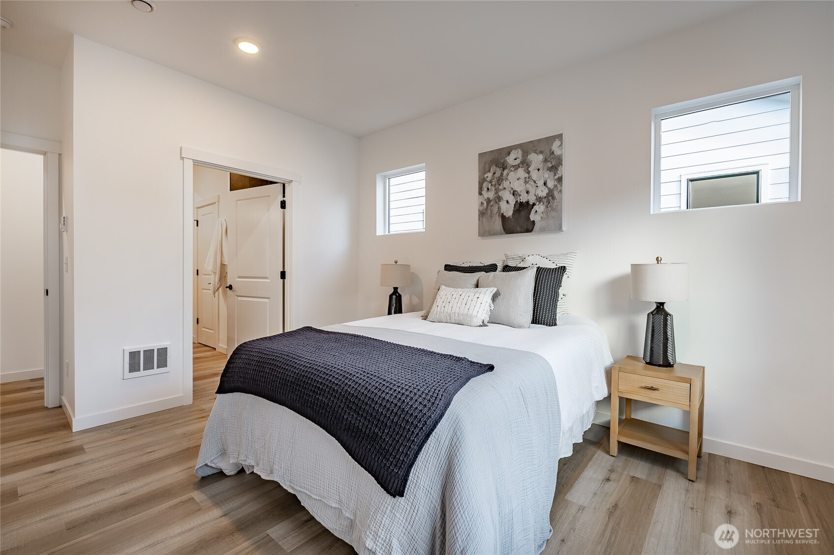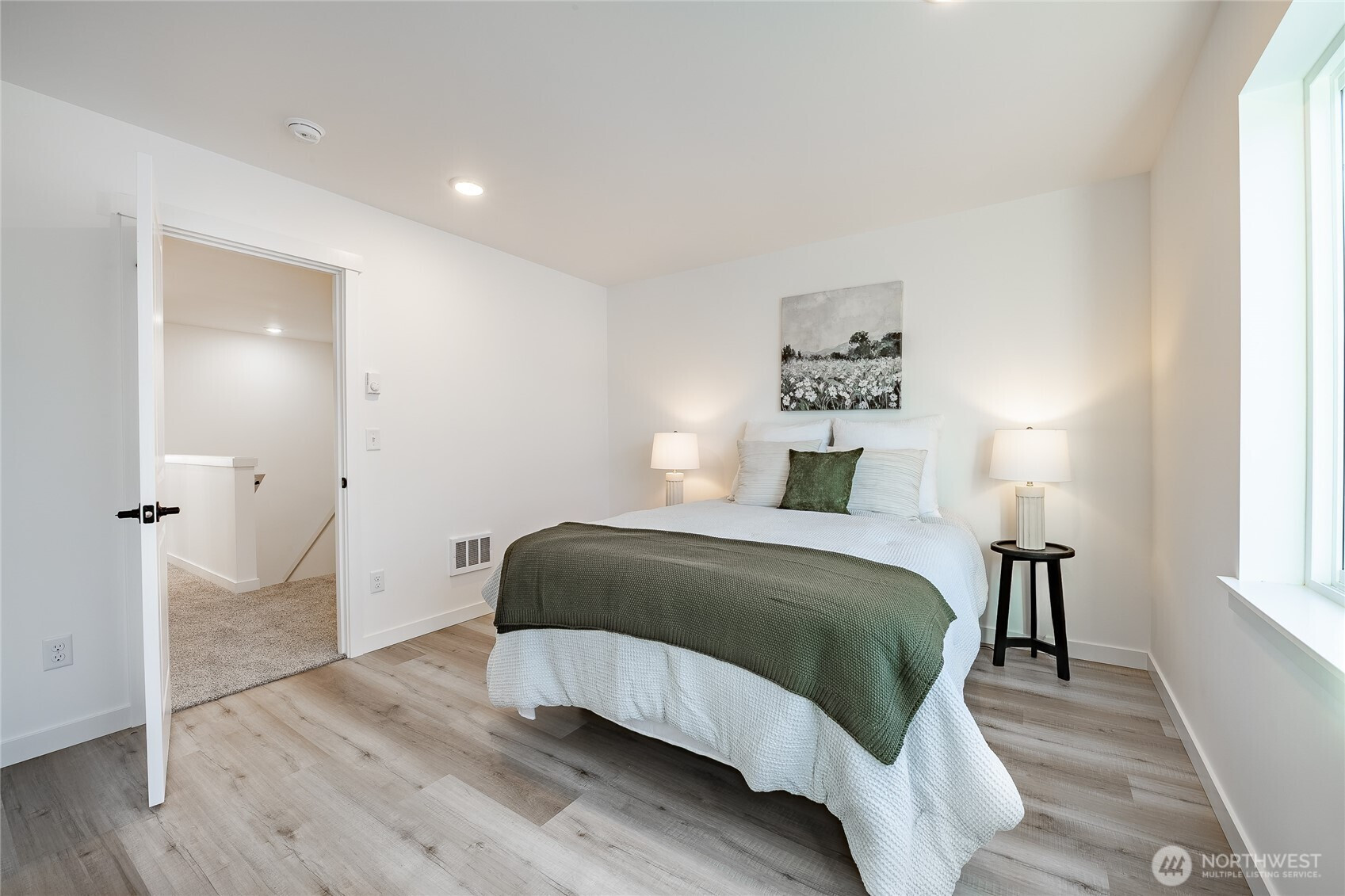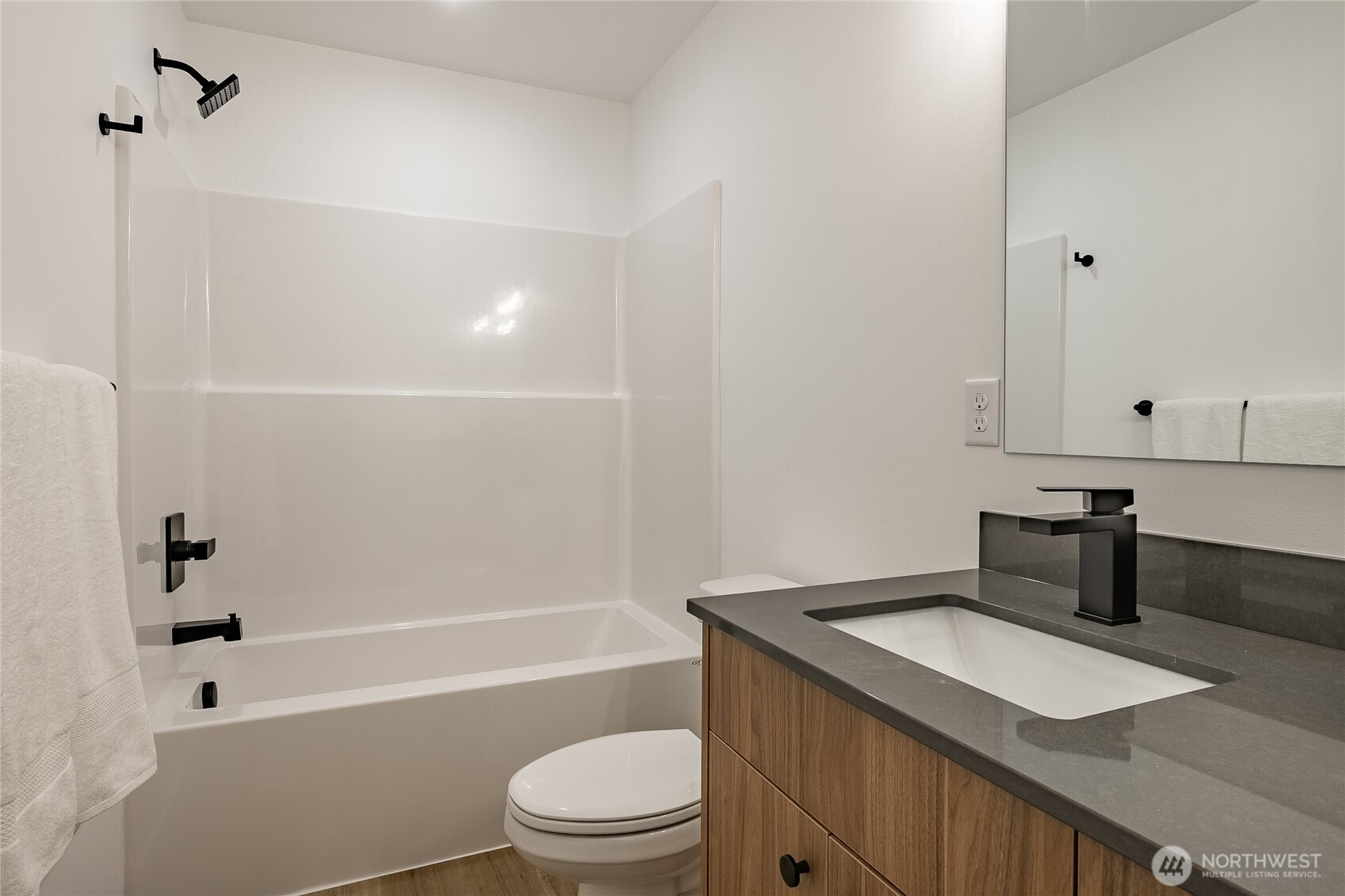 Thoughtfully designed for modern living, this 4-bedroom home blends style, function, and low-maintenance ease. The open main level features LVP flooring and a cozy propane fireplace. The kitchen is finished with sleek flat-panel cabinetry, charcoal quartz countertops, and upgraded appliances. Upstairs, bedrooms and a spacious bonus room offer flexibility for work, guests, or entertainment. Enjoy indoor-outdoor living with a covered back patio. EV charger in the garage. Built on a slab-on-grade foundation with quality finishes throughout, this conveniently located home is situated minutes from downtown Blaine, I-5, and the Canadian border. Preferred Lender Savings include a 1% lender credit plus a $5,000 seller credit.