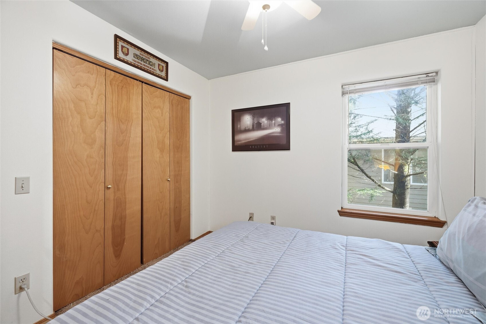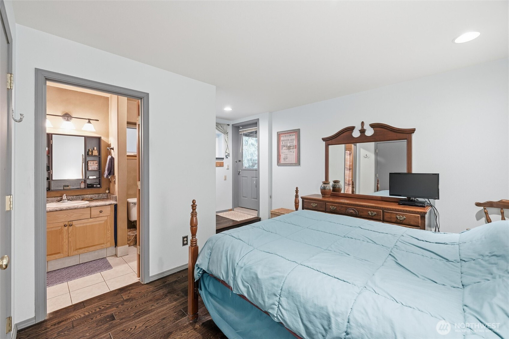 Well-kept 4-bed 2-bath Sudden Valley home with all rooms on one level. Open kitchen leads into spacious living room all with beautiful bamboo floors & flooded with natural light. With vaulted ceiling and stone hearth-fireplace it is cozy & welcoming. Generous sized covered deck off living room great for enjoying the natural setting amongst the trees. Primary bedroom with en-suite closet and private back deck. Additional 3 bedrooms perfect for space that can be used for bonus rooms, office etc. 2 car garage with built-ins for storage & work space. Low maintenance yard. All situated in a beautiful area with amenities including trails, pool, golf course, marina & more!