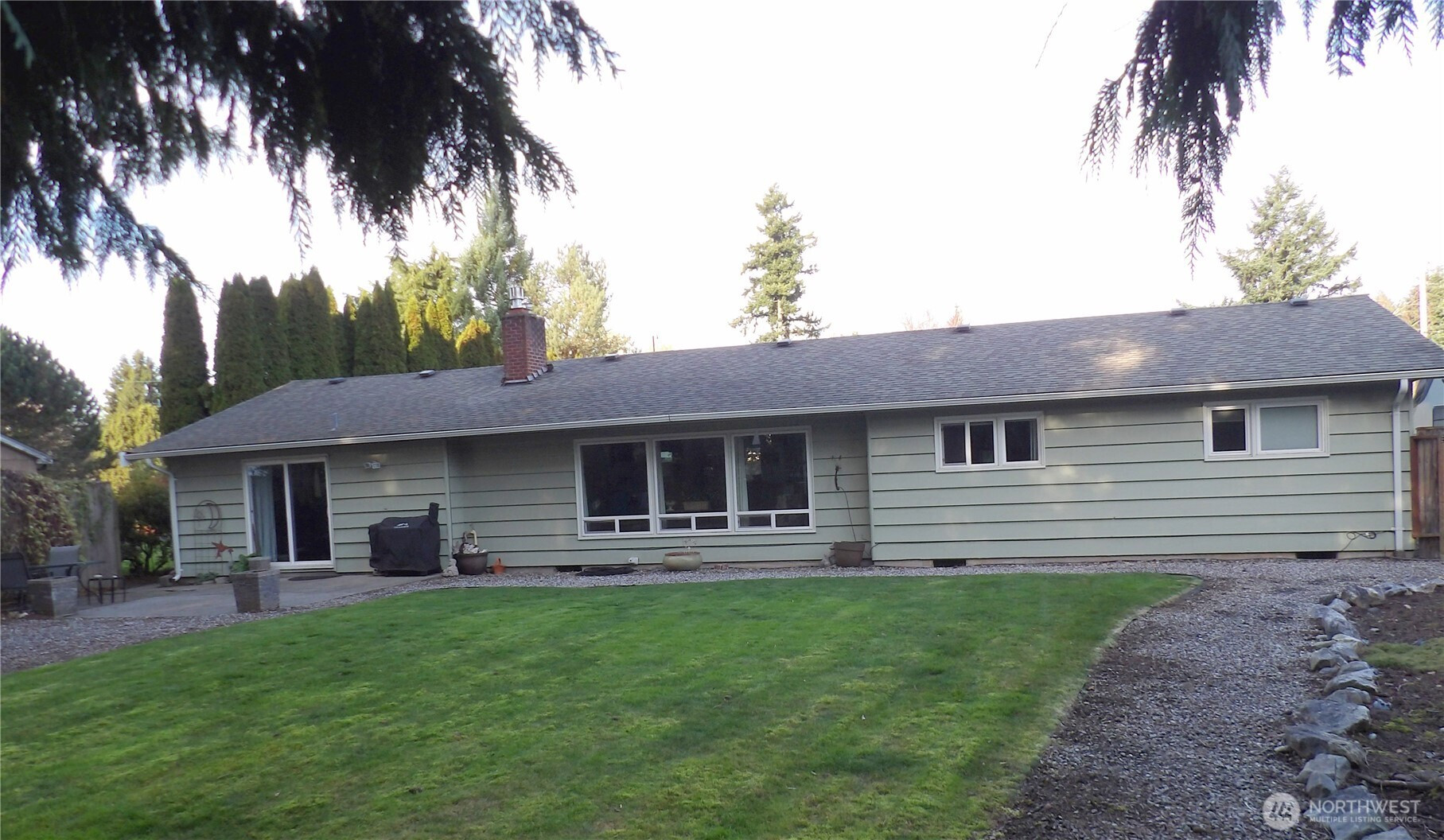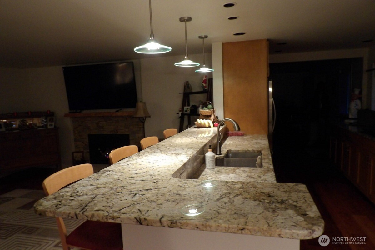 Here it is! Remodeled one level 3 bed 2 bath home on a full one acre lot. Enjoy your Chefs' kitchen with a 5 burner gas range, pot filler and a recycled glass backsplash. Slab granite countertops, wall oven/range combo and a warming drawer. The kitchen is open to the living area, with views into the back yard and towering pine trees. Engineered wide plank floors, remodeled bathrooms and fresh interior paint. The lot is zoned R10 and divisible into 4 lots (B2V). Leave home as is and enjoy your own private estate, or develop. The majority of all furnishings, beds, flat screens etc are also for sale. Property can be sold fully "turn key". Owner is a licensed WA real estate broker.