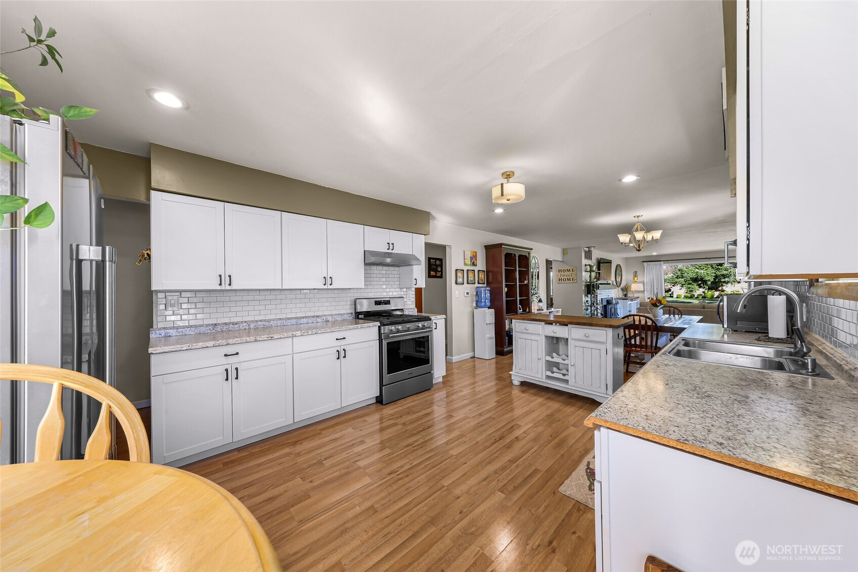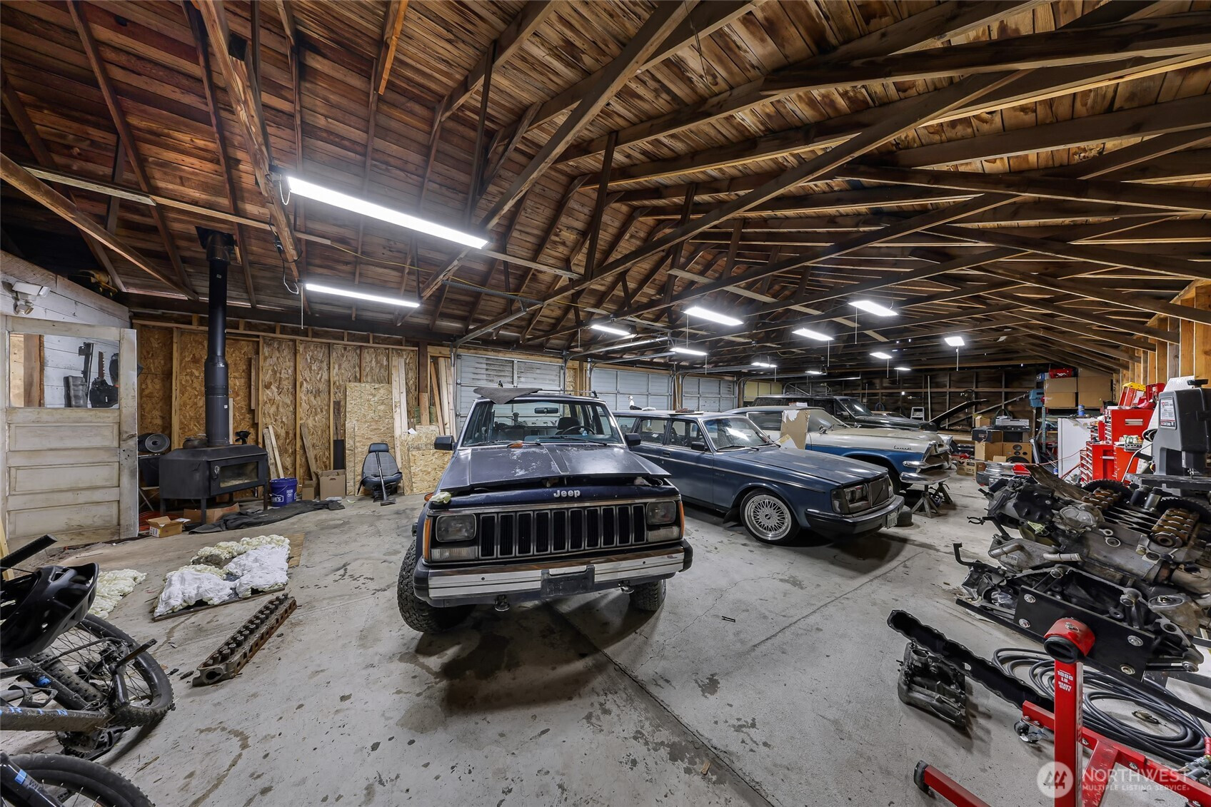 We are pleased to announce a new property available in North Bellingham. This renovated mid-century, one-level home is situated on nearly one acre and includes an expansive four-bay shop.The open floor plan residence has undergone significant updates, including a modest kitchen and bathroom renovation, a new high-efficiency fireplace insert with a chimney liner, and new carpeting in the bedrooms. Additionally, the mudroom has been updated with new cabinetry, and the garage has been converted into a finished space with drywall and flooring, adding over 500 square feet of living area.The property also features a remarkable four-bay shop with a new roof, gutters, siding, flooring, lighting and fireplace/heat, perfect for your hobbies, cars, toys and more. The grounds include a magical fenced garden area with Rainier cherry, Honey crisp, and Cosmic crisp apple trees, asparagus, artichoke, blueberries, raspberries, a greenhouse, and a chicken coop. Ample parking is available, including a designated RV spot with a 30-amp outlet.Located centrally between Bellingham, Ferndale, and Lynden, this property offers a rural atmosphere with convenient access to nearby amenities.