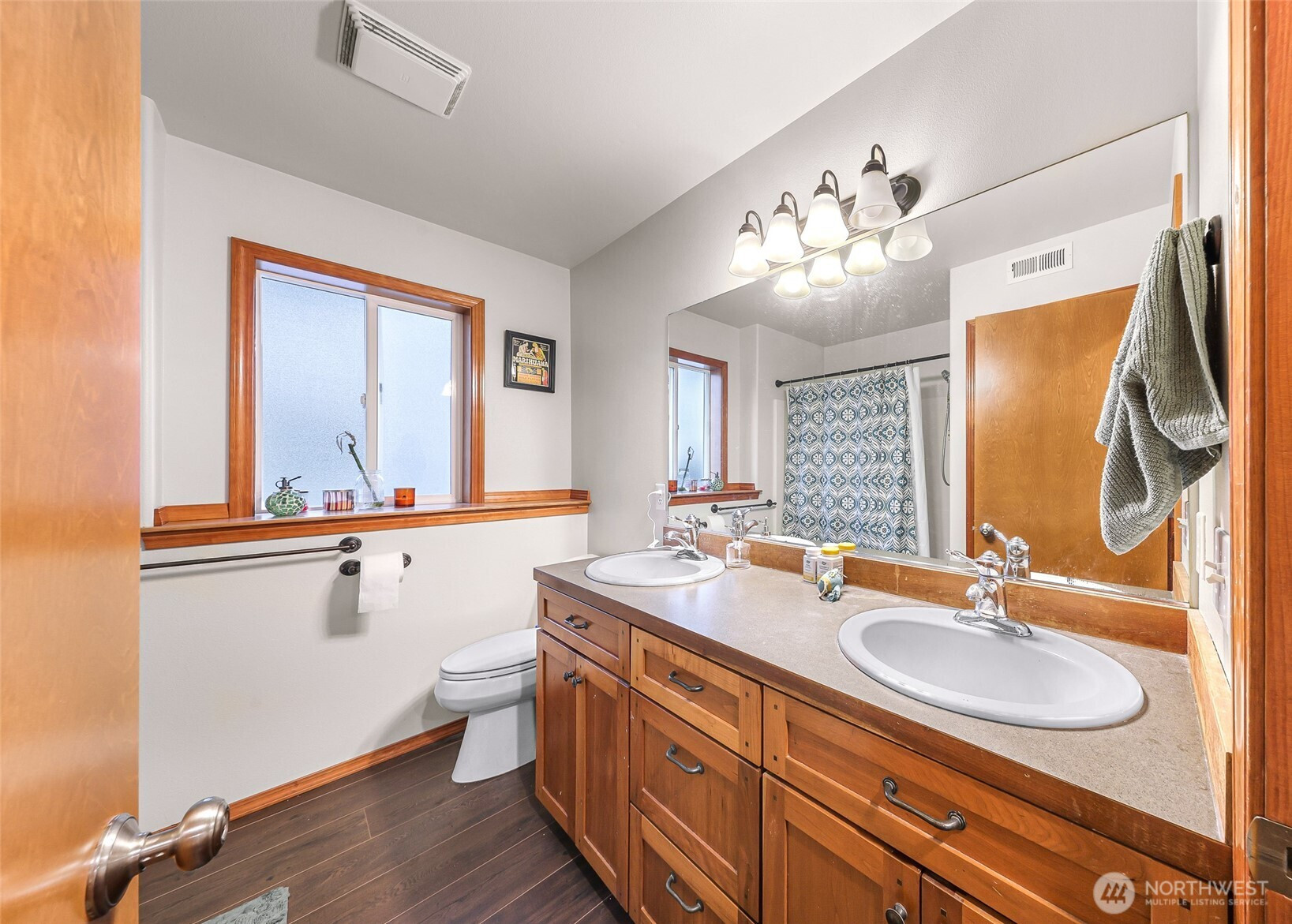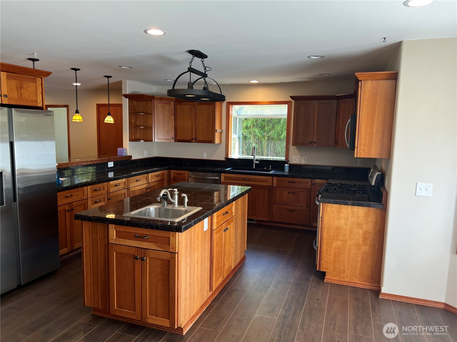 Located in Bellingham’s highly desirable Happy Valley neighborhood, this well-built custom home built in 2005 offers space, flexibility, and an exceptional Pacific Northwest lifestyle. With 2,760 sq ft, 5 bedrooms, and 3 bathrooms, the layout is ideal for everyday living, hosting guests, or multi-generational needs. Quality craftsmanship and finishes are evident throughout, anchored by a spacious kitchen featuring an island with prep sink, a large walk-in pantry, a dining area just off the kitchen, and a pass-through bar opening to the living room—perfect for entertaining and daily life alike. The main level includes three bedrooms and a well-appointed main bath with dual sinks, a shower, and a jetted tub, while gas fireplaces and abundant natural light add warmth throughout the home. The daylight lower level offers two additional bedrooms, a separate bathroom, a wet bar, and its own entrance, creating excellent flexibility for extended living, guest quarters, or a potential in-law setup. Outside, enjoy a low-maintenance yard ideal for entertaining or relaxing by the fire in a private setting. The separated 3-car garage—a 2-car garage plus a dedicated 1-car garage—offers flexibility for hobbies, storage, or toys. With alley access and a quiet setting, the location balances privacy with convenience, just minutes from Fairhaven, Chuckanut Drive, I-5, bus lines, and trail systems. A rare opportunity in one of Bellingham’s most sought-after neighborhoods.