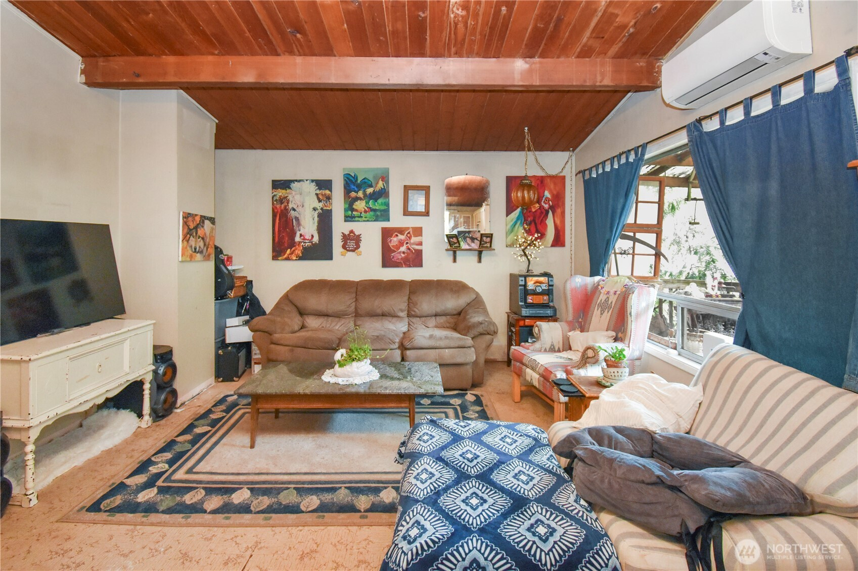 Welcome to a truly unique opportunity in the desirable Glenhaven community—perfect for those looking to build sweat equity while enjoying an incredible lifestyle. This inviting home features vaulted open beam ceilings w/ stunning car decking, creating a warm & open feel throughout the main living space. Enjoy a partial view of the lake & relax on the spacious 30x10 deck—ideal for entertaining or soaking in the peaceful surroundings. Stay comfortable year-round w/ efficient mini split air conditioning, while the durable metal roof adds long-term value. The private yard offers space to garden, play, or create your own outdoor retreat. Supplies for projects will stay w/ the home, making it even easier to add value & make it your own. Located in Glenhaven, residents enjoy access to a community clubhouse, pool, tennis courts, playground, & private lake access for fishing, kayaking & paddleboarding. Surrounded by the beauty of the Pacific Northwest, you’re close to hiking trails, mountain biking, rivers, & endless outdoor recreation near the North Cascades. Whether you're looking for a full-time home or weekend getaway, this is a rare chance to create equity in a sought-after recreational setting!