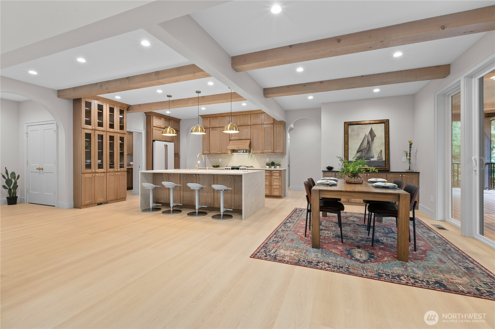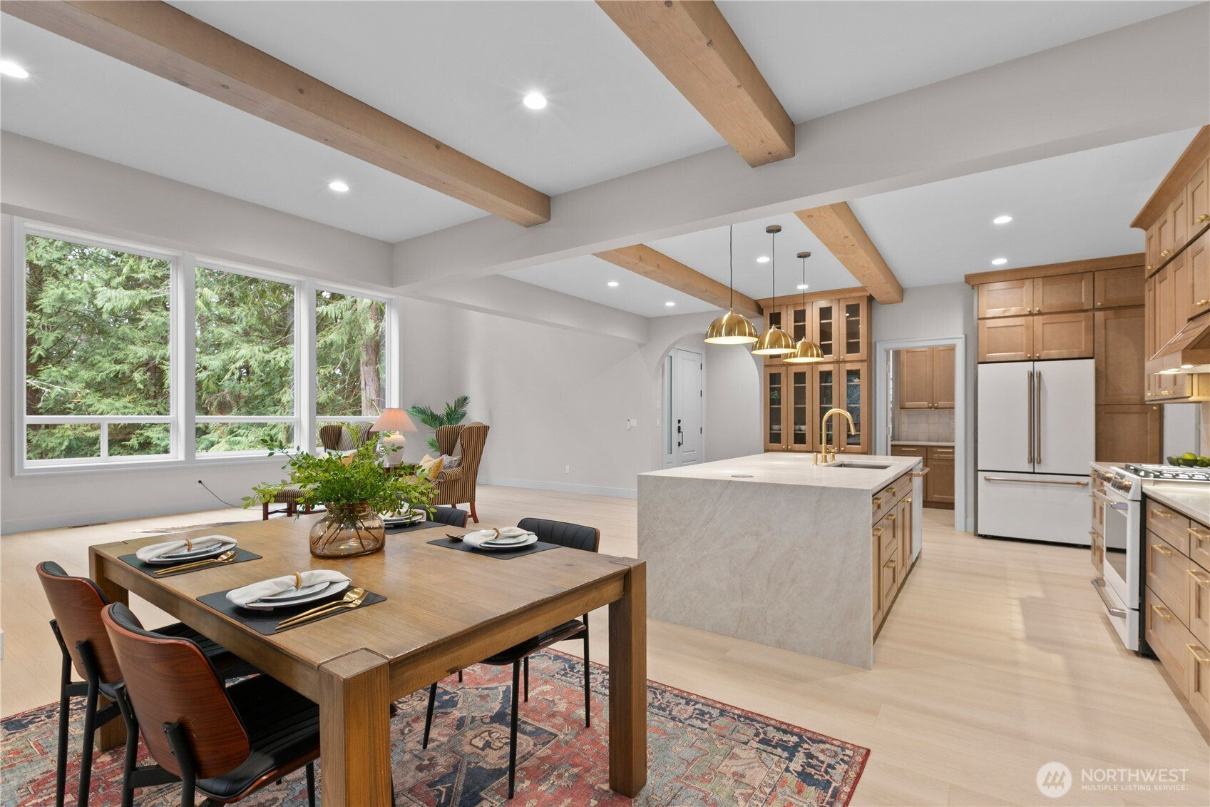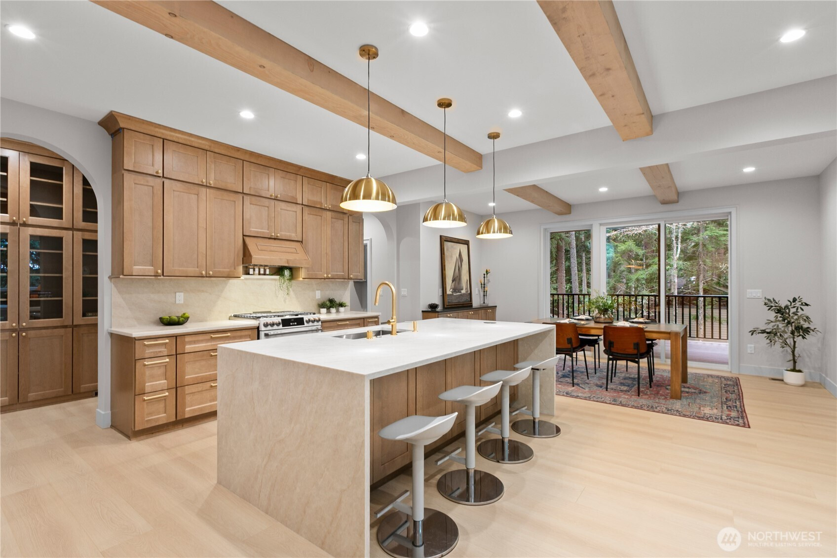 Experience luxury living in this stunning 5 bed, 3 bath custom home with a 2-car garage, surrounded by peaceful greenbelt views . The home features soaring 16-ft ceilings in the living room, exposed natural fir beams, and a striking natural stone fireplace. The chef’s kitchen offers quartz countertops, premium Café appliances, and a gorgeous luxury walk-in pantry with its own sink. Enjoy high-end finishes throughout including LVP flooring, custom built-in cabinetry, a spa-style custom tile walk-in shower, and a relaxing soaker tub. From Douglas fir framing to solid core interior doors and fully wrapped windows throughout, this home is built with quality materials and true craftsmanship. Additional highlights include a metal roof, natural stone exterior, T&G pine soffits, wiring for a generator, glass garage doors, and an EV charger . A dual-sided gas fireplace connects the living room to the covered wrap-around deck, creating seamless indoor-outdoor living. Located in the highly desirable Sudden Valley community, you’re just minutes from town yet next to the lake in your own private paradise. Sudden Valley offers incredible amenities including community parks, private beaches, scenic trails, lake access, a community pool, playgrounds, clubhouse, and restaurant—perfect for enjoying the best of the Pacific Northwest lifestyle.