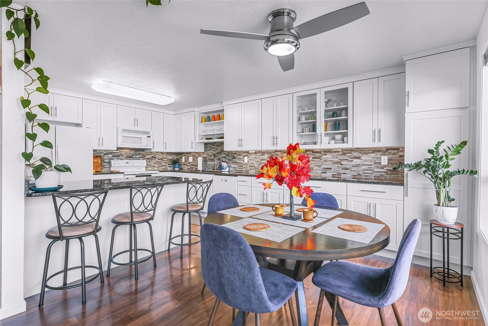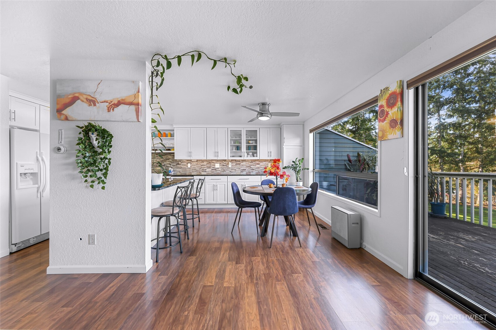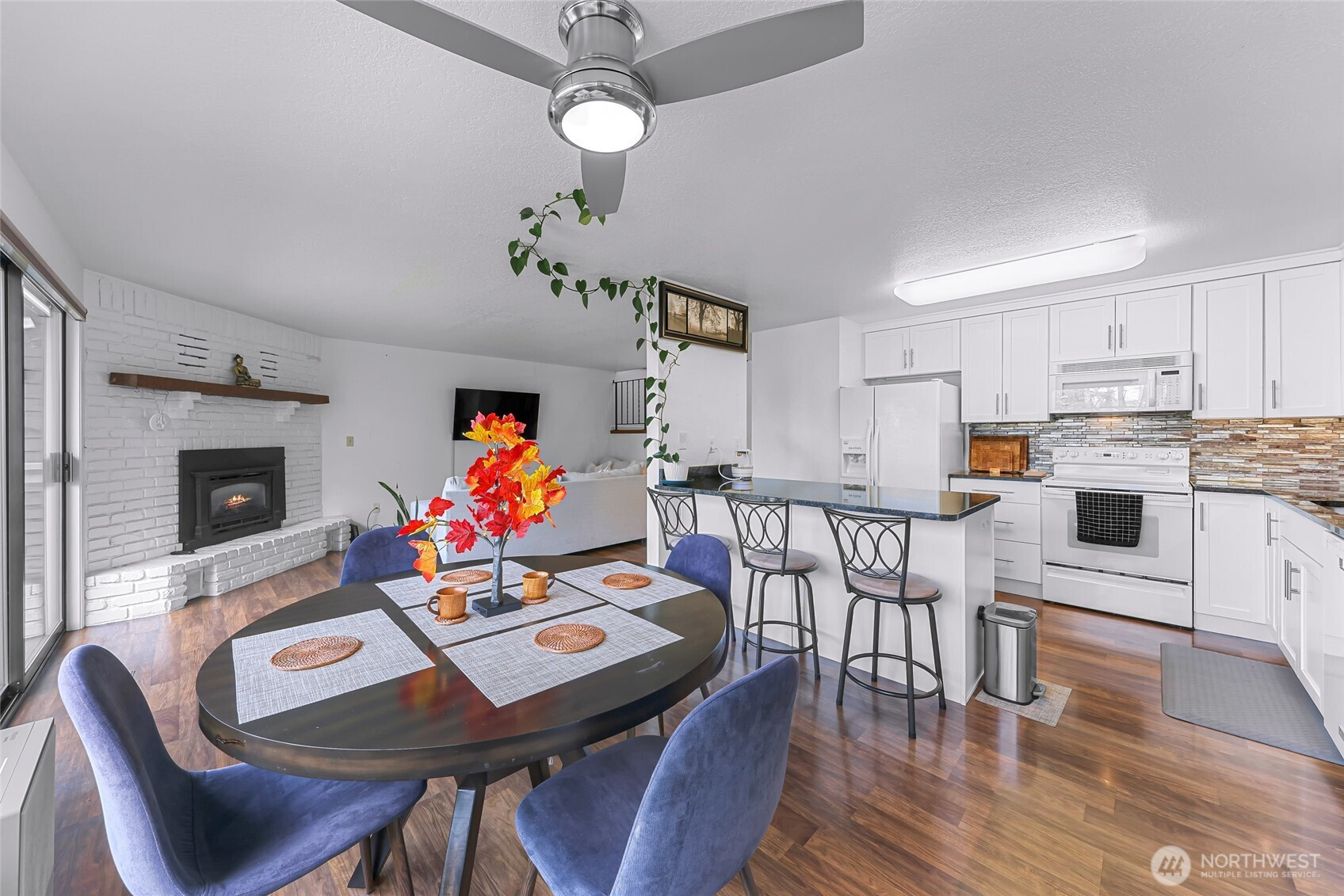 Rare end-unit townhome-style condo in Ridgemont Village, a quiet 10-home community set on three secluded acres in the sought-after Samish neighborhood. This corner unit lives large with a park-like greenbelt just off the private rear deck, offering the feel of your own backyard retreat. The bright, open main level features a beautifully updated chef’s kitchen with granite countertops, an oversized island, and floor-to-ceiling cabinetry, flowing seamlessly into the inviting living area with a gas fireplace. Offering 3 bedrooms and 2.5 baths across three flexible levels, the layout includes a spacious daylight basement with a rec room and dedicated office or guest space—ideal for today’s lifestyle. Thoughtful updates provide peace of mind, including a newer roof (2022), furnace, A/C, water heater, windows, refreshed baths, and EV charger. Enjoy the convenience of an attached 2-car garage, additional parking, and an HOA that covers water, sewer, garbage, exterior maintenance, and master insurance for predictable monthly costs. Ideally located minutes from Western Washington University, Sehome Village, scenic trails at Galbraith Mountain, and quick access to Interstate 5. A rare opportunity to own a turnkey home that perfectly blends privacy, community, and convenience—units here seldom come to market.